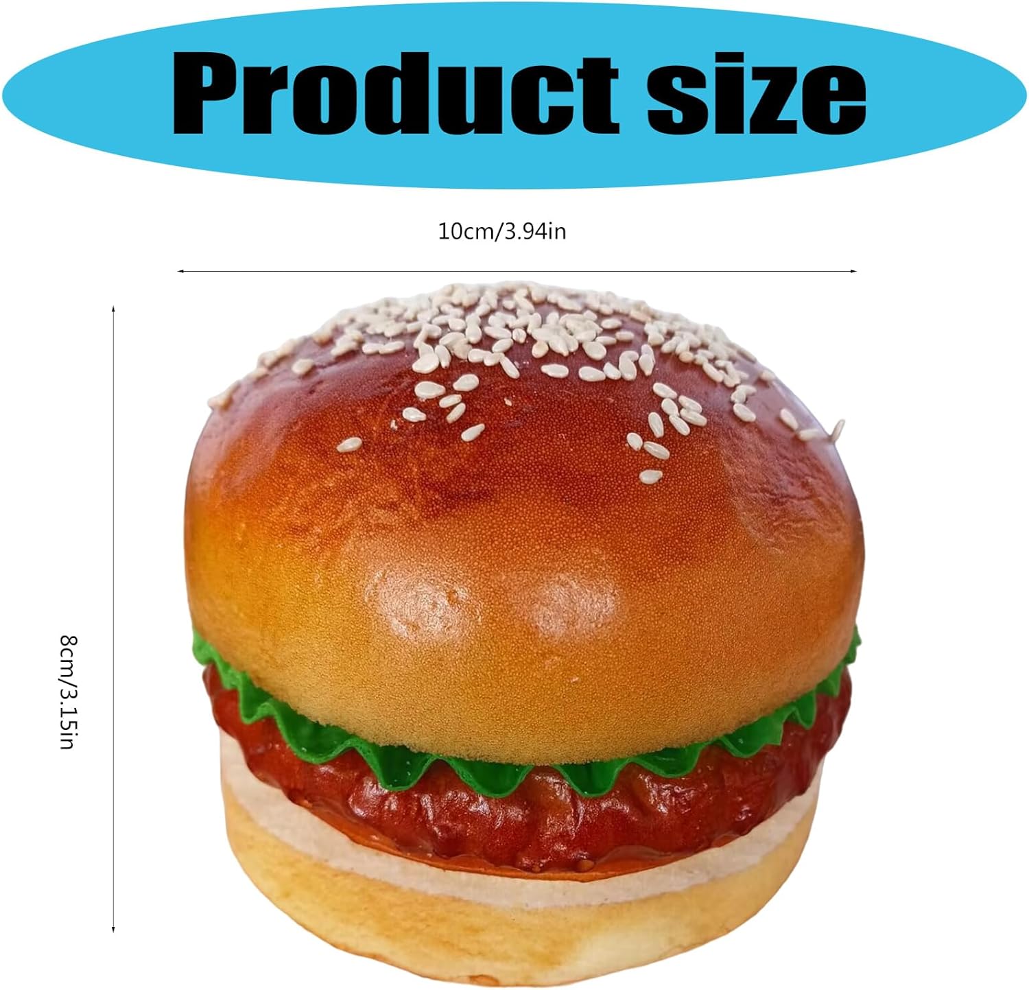 Molto adatto per gli appassionati di fotografia, proprietari di ristoranti e collezionisti di giocattoli, questo hamburger artificiale funge da eccellente decorazione alimentare da cucina Questo realistico hamburger artificiale presenta un tocco morbido e delicato della mano, rendendolo comodo da tenere e come giocattolo dimostrativo didattico, mentre il suo colore e i dettagli intricati garantiscono una durata Ampiamente usato per in cucina, esposizione del negozio di dessert, dimostrazione educativa, modello educativo del giocattolo alimentare, questo modello di cibo di simulazione aggiunge un tocco giocoso ma autentico a qualsiasi ambiente Che si tratti di decorare per feste in cucina o di allestire l'esposizione delle vacanze, questo panino artificiale è un'aggiunta essenziale che porta fascino alla tua decorazione l'aspetto realistico dei nostri hamburger artificiali, realizzati in PU, morbidi e resistenti allo sbiadimento, fornendo un aspetto realistico e squisito, ideali per migliorare qualsiasi esposizione o decorazione