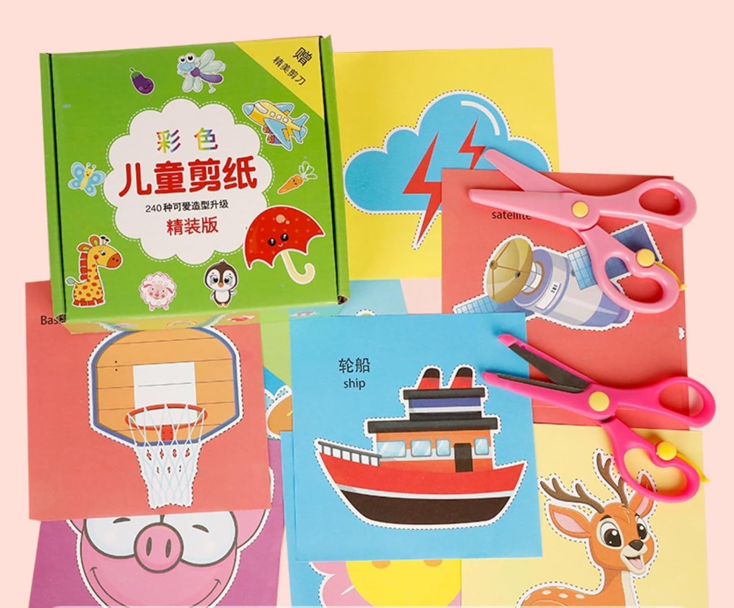 Nessuno. Carta spessa 80G, buona flessibilità e non facile da strappare. Leggero e portatile, puoi facilmente riporre il kit di forbici Craft Kids mentre sei in movimento. Forbici di plastica realizzate in plastica ABS, sicure e resistenti. Set per decoupage: questo divertente set per decoupage è progettato per i più piccoli. Può aiutare il tuo bambino a migliorare la coordinazione occhio-mano; Promuove le capacità motorie, le capacità cognitive e la pazienza. Happy Hour in famiglia: con questo set da taglio i genitori possono trascorrere ore a giocare con il loro bambino di tre anni. Con questo set puoi insegnare ai tuoi bambini in età prescolare a comprendere alcune forme di base e parole inglesi. Impara a giocare: con questo set puoi stimolare l'immaginazione dei bambini, la coordinazione occhio-mano, il riconoscimento durante il gioco. I bambini possono anche imparare parole inglesi, animali, frutta, ecc. Giocare. Riceverai: Riceverai forbici di sicurezza per bambini in due pezzi con 48 fogli di carta con diversi disegni.