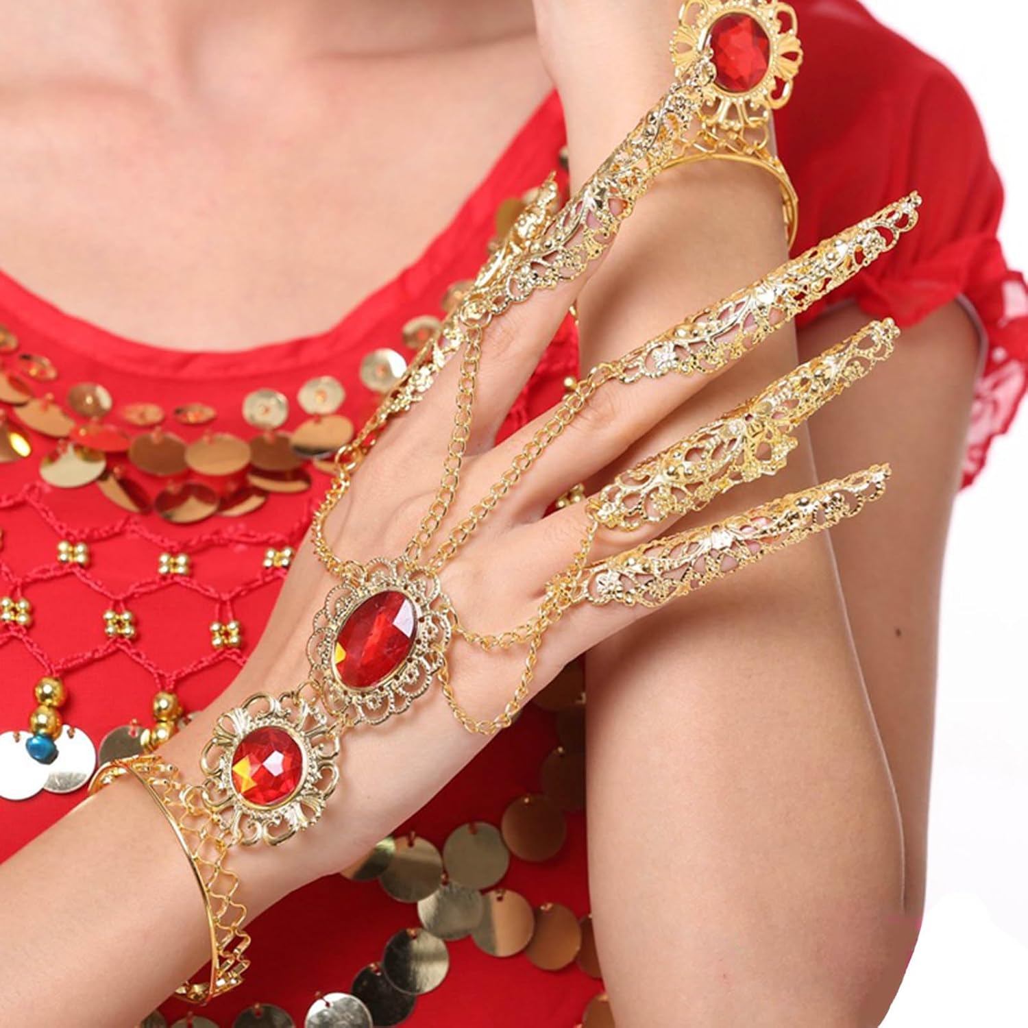 Migliora le tue esibizioni di danza con questi esclusivi anelli per le dita che aggiungono un tocco di fascino antico e mistero al tuo look. Per ballerini e artisti che apprezzano la bellezza della danza del ventre e della cultura antica, questi anelli per le dita sono un must. Realizzati con materiali in lega, questi anelli ad artiglio sono leggeri e garantiscono un comfort duraturo anche se indossati per lunghi periodi di tempo. Che tu ti stia esibindo sul palco o partecipi a una festa a tema, questi anelli ad artiglio miglioreranno immediatamente i tuoi outfit e creeranno un effetto visivo. Crea gioielli e oggetti di scena unici aggiungendo questi anelli con artigli per polpastrelli alla tua collezione e mostra la tua passione per la danza del ventre e l'estetica antica.