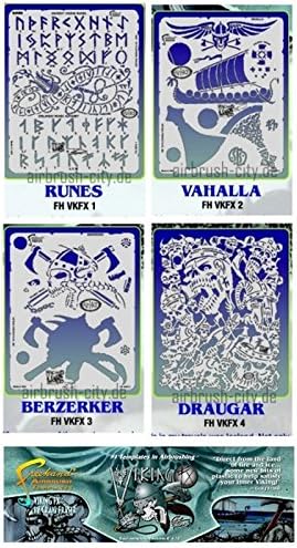 artool - Viking FX 200 503 - Set di mini stencil Tutti gli stencil iwata (Artool) sono resistenti ai solventi. Composto da 4 stencil. Dimensioni circa 5' x 7' (dimensione indicata in pollici, 1 pollice = 25,4 mm) The eye-popping, Ever-popolare Artool Freehand Airbrush Templates per il crowd of Kustom Automotive Painters è ora in una nuova dimensione! La nuova Artool Mini serie Freehand Airbrush Templates è perfetta per tutte le scale di 1/8°, 1/10° e 1/12° e sono especially Hot! HOT! HOT! Per auto radiocomandate, modelli di airplanes e allenamento, modellini auto e kits, modellini di modellismo, body art e applicazioni automotive di Kustom! 17,0 x 12,5 cm.