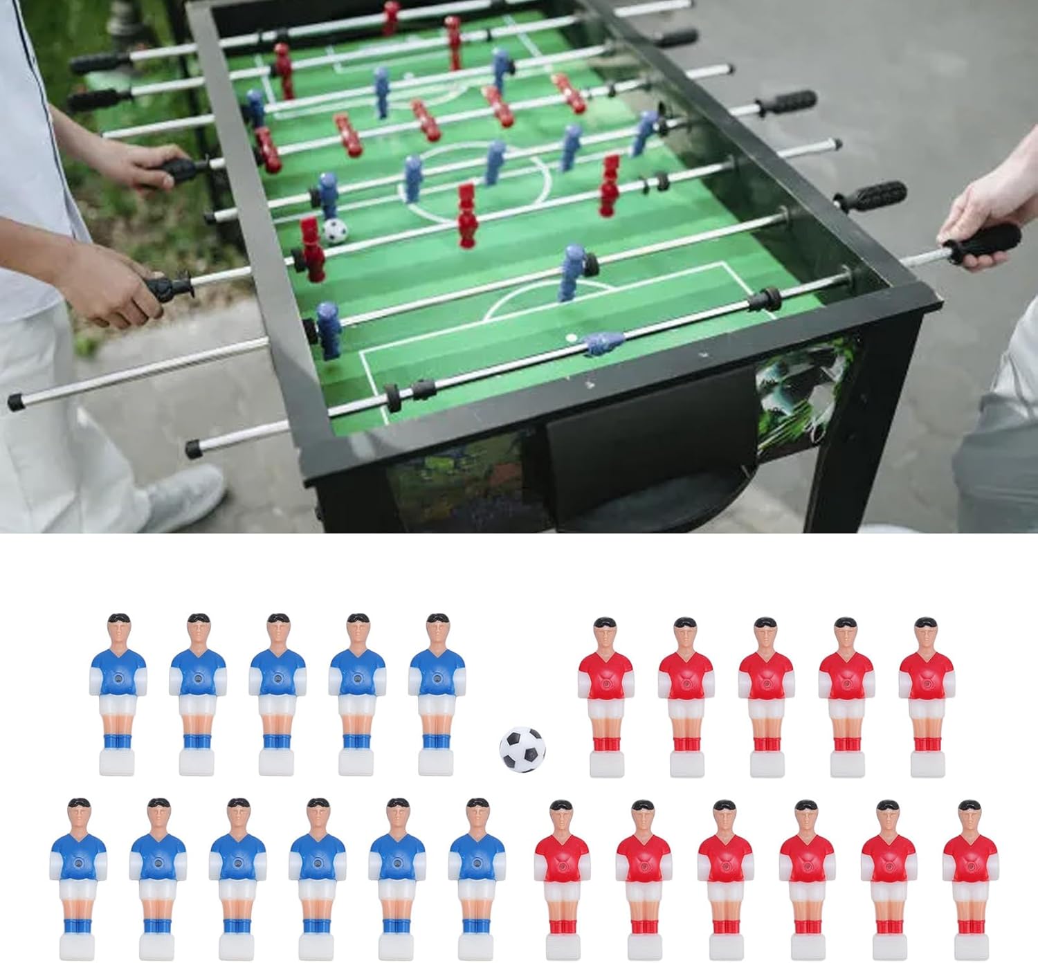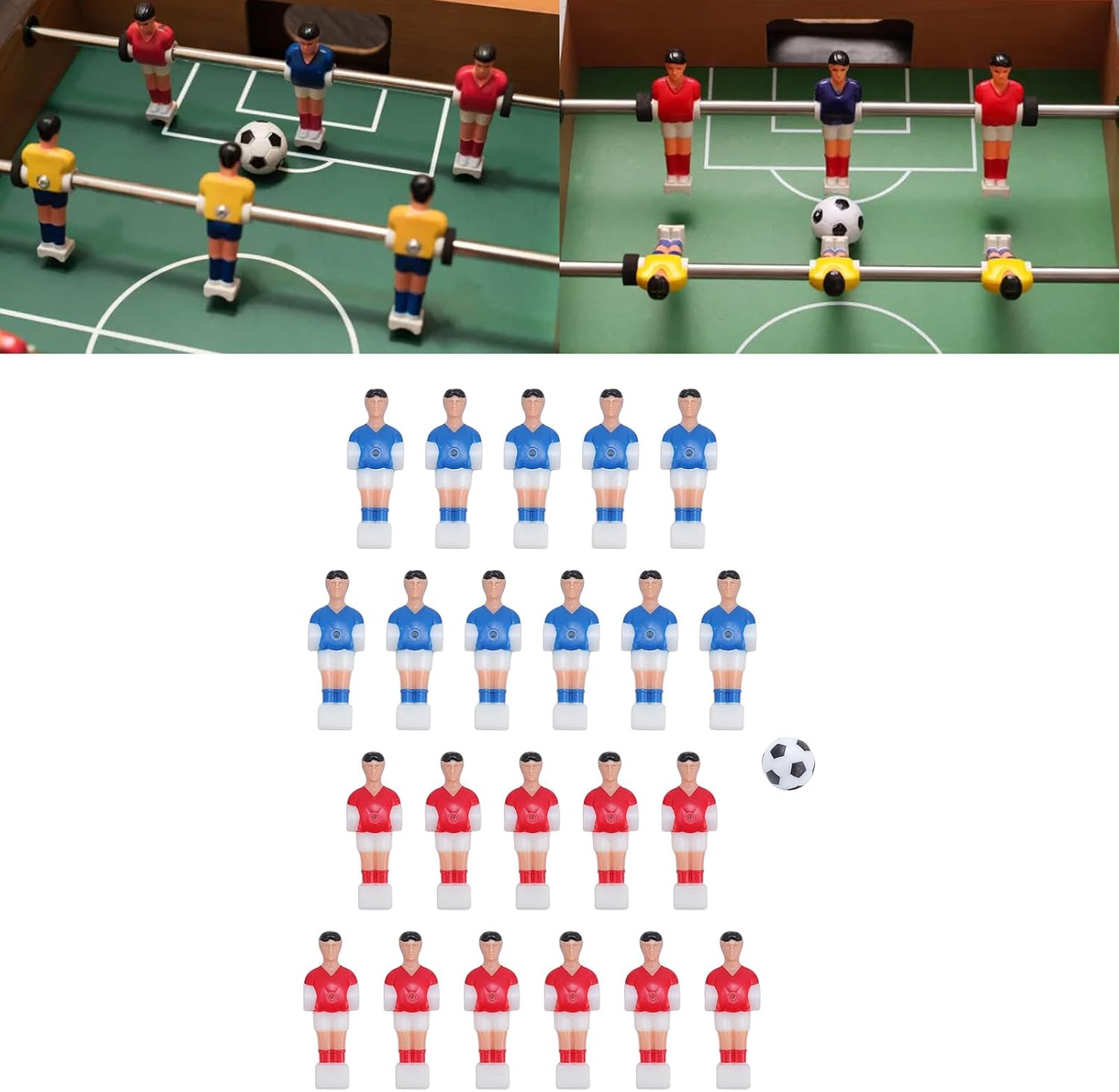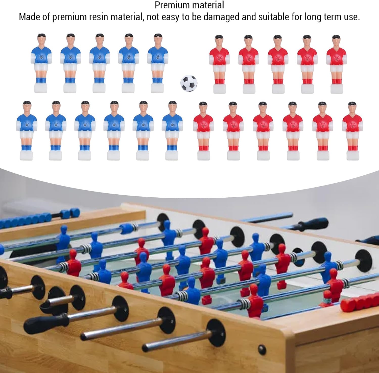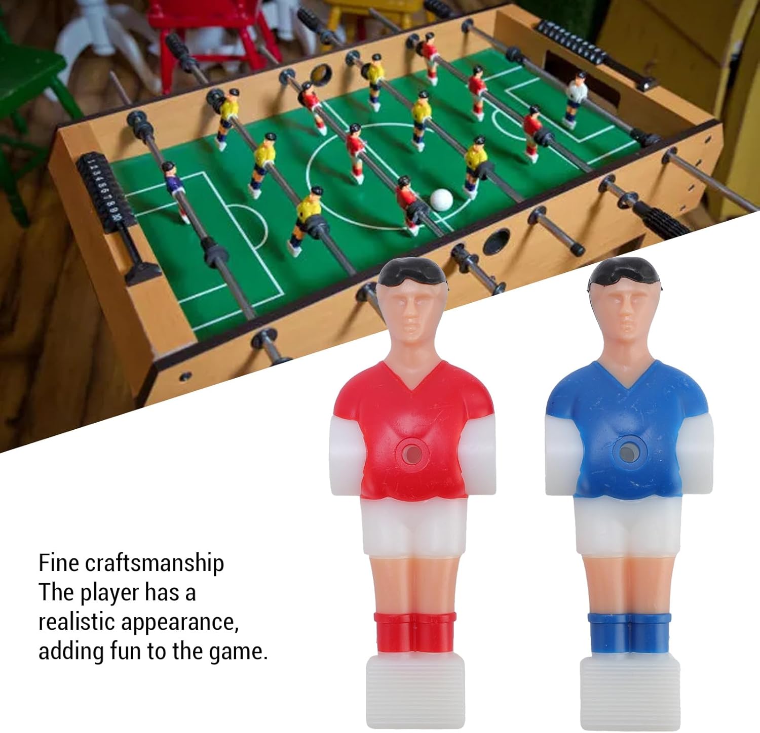 Set completo: il set include 11 figure di giocatori rossi e 11 blu insieme a una biliardo in bianco e nero da 32 mm, fornendo tutto il necessario per un gioco completo proprio fuori dalla scatola. Materiale in resina premium: realizzati in resina, questi accessori sono costruiti per resistere al gameplay intenso e non sono facili da danneggiare, assicurando che durino per lunghi periodi di utilizzo. Design realistico dei giocatori: le figure del giocatore vantano un artigianato finemente dettagliato, offrendo un aspetto realistico e coinvolgente che si aggiunge al divertimento e all'immersione del gioco. Ampia compatibilità: specificamente adatte per 4824 tabelle di biliardo, questi accessori offrono una forte compatibilità, rendendoli una scelta versatile per sostituire o aggiornare i componenti della tabella. Esperienza di gioco avanzata: con varie opzioni di gioco fornite dalle figure realistiche, questo set aumenta il fattore divertente, rendendolo ideale per l'uso in sale giochi, case.