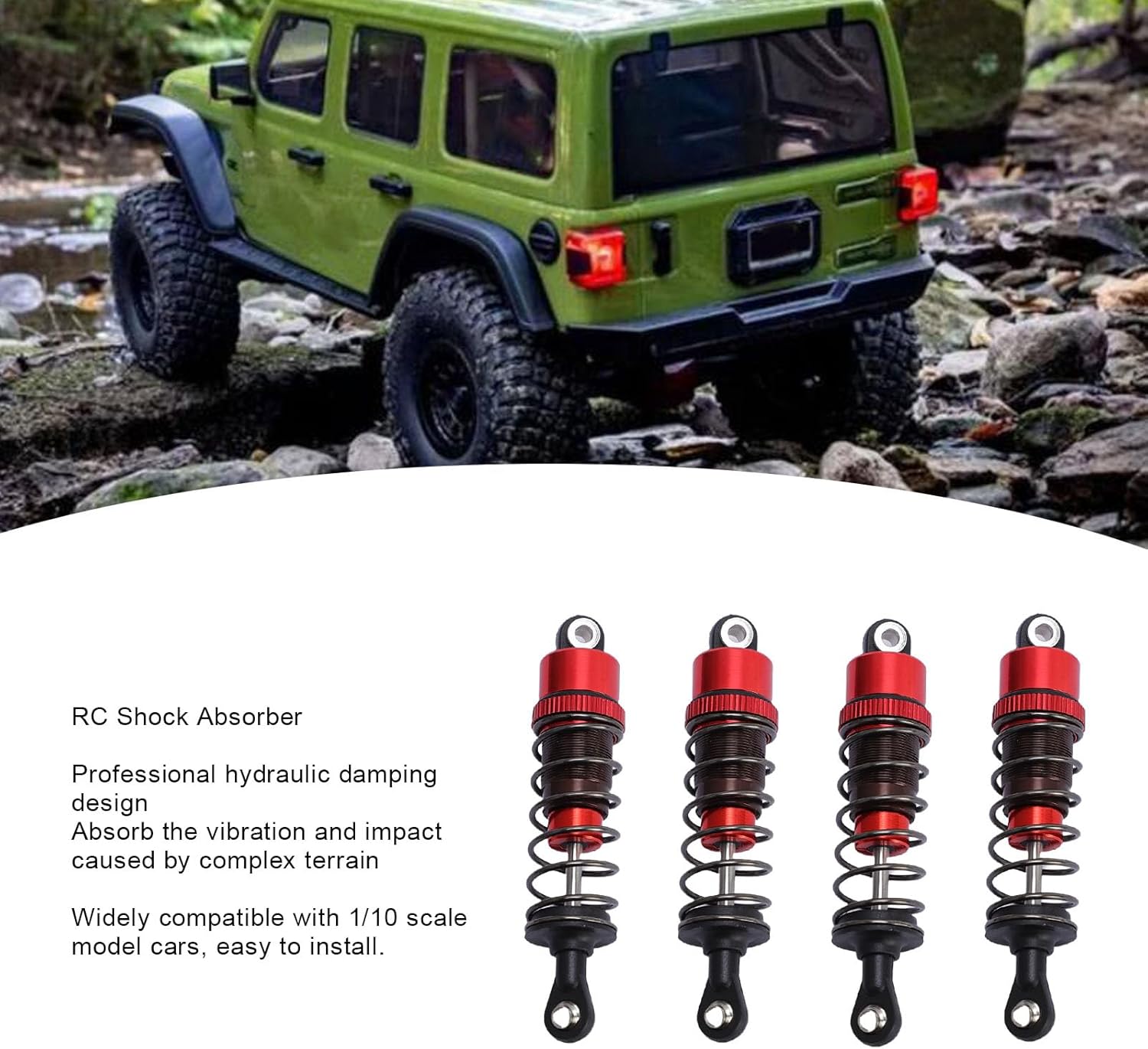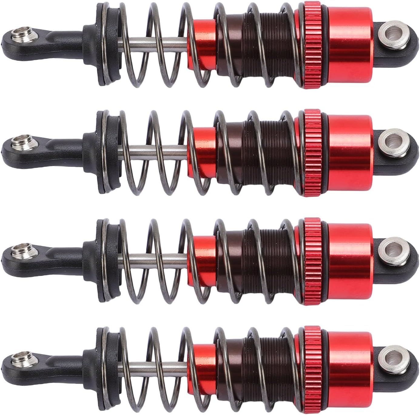 Sistema di smorzamento professionale: il nostro avanzato ammortizzatore a pressione dell'olio migliora significativamente le prestazioni di manovrabilità assorbendo efficacemente le vibrazioni da terreni complessi e garantendo stabilità e controllo durante la guida ad alta velocità e le salite fuoristrada. Robusta lega di alluminio: i nostri ammortizzatori sono realizzati in lega di alluminio di alta qualità e forniscono un'eccellente resistenza alla compressione e all'erosione pur mantenendo un design leggero e migliorando la reattività e l'agilità dell'evento generale del veicolo. Kit completo di controllo delle sospensioni: questo kit completo in quattro pezzi ti consente di sostituire gli ammortizzatori di fabbrica in una volta sola e fornire un aggiornamento completo ai sistemi delle ruote anteriori e posteriori per una migliore stabilità e qualità di guida. Compatibilità versatile: progettati appositamente per veicoli RC in scala 1/10, i nostri ammortizzatori presentano una struttura universale che si adatta al modello più popolare e rende l'installazione semplice e veloce, adatta per aggiornamenti e personalizzazioni delle prestazioni. Geometria delle sospensioni ottimizzata: progettati con precisione per adattarsi alla dinamica delle sospensioni del modello in scala 1/10, i nostri ammortizzatori ottimizzano la distribuzione del peso e la corsa per garantire un equilibrio superiore e una manovrabilità reattiva in tutte le condizioni stradali.