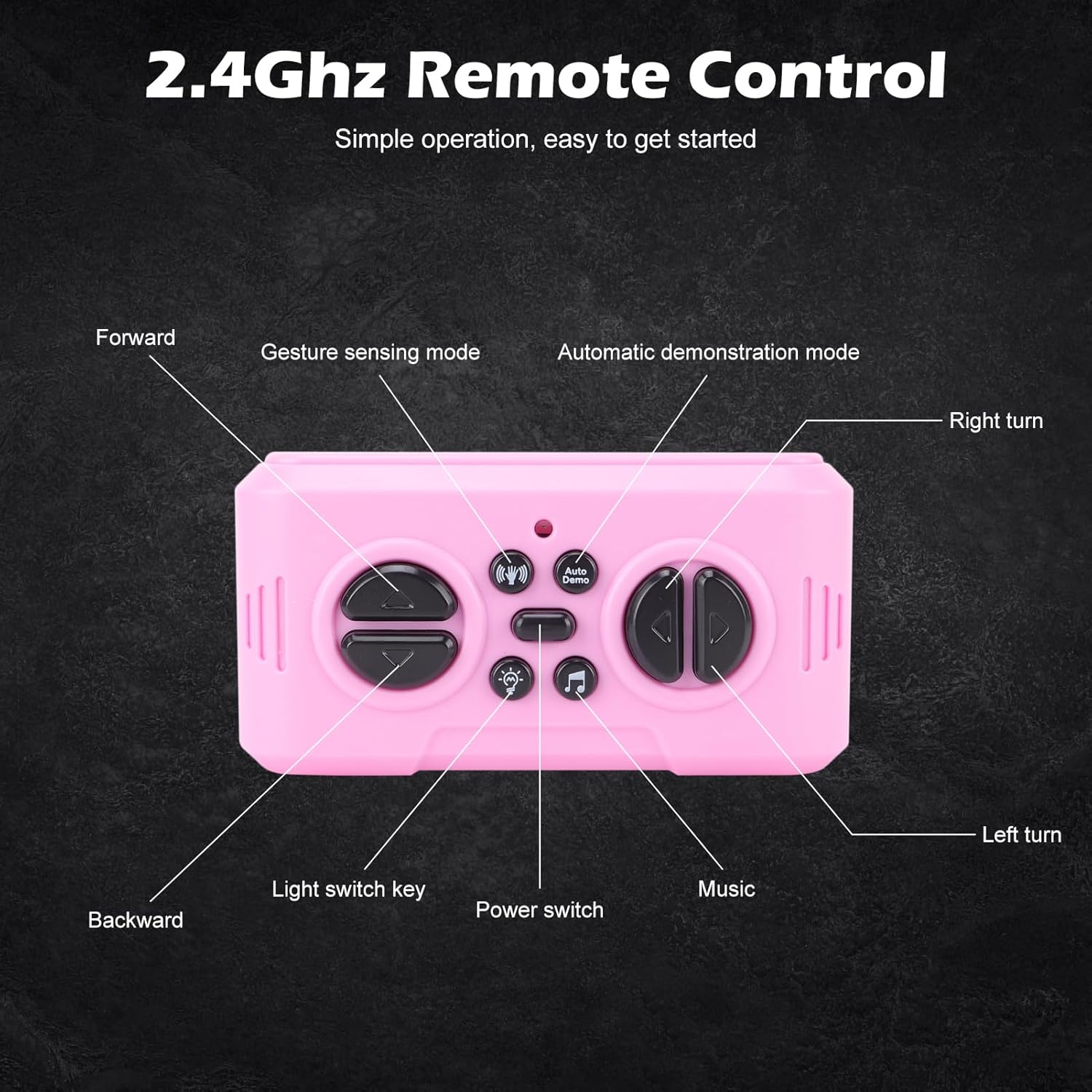 Fantastici occhi LED, i colori cambiano liberamente: il robot è dotato di fantastici occhi LED e puoi cambiare facilmente diversi colori con il telecomando, attirando immediatamente l'attenzione dei bambini. I vivaci cambiamenti di colore rendono il gioco più fresco, mantenendo i bambini coinvolti e interessati Molteplici scelte musicali, doppio divertimento: con i brani integrati, i bambini possono utilizzare il telecomando per scegliere la loro musica preferita. Suonare con melodie allegre non porta molto divertimento ma aiuta anche a sviluppare l'amore per la musica. Due modalità di controllo, gioco più flessibile: il robot RC supporta il rilevamento dei gesti e le modalità di controllo remoto a 2,4 GHz: semplici gesti delle mani possono comandare i movimenti del robot o utilizzare il telecomando per un controllo preciso. Passa liberamente per soddisfare le diverse esigenze di gioco, mantenendo i bambini più intrattenuti Batteria a lunga durata da 500 mAh, gioca senza sosta: il giocattolo robot è dotato di una batteria ricaricabile da 500 mAh, dura 30-40 minuti dopo la ricarica completa. I bambini possono esplorare e giocare a loro piacimento senza ricariche frequenti, mantenendo il divertimento ideale per bambini, divertente e significativo: con un aspetto carino e varie funzionalità di intrattenimento, i bambini possono sviluppare immaginazione, creatività e abilità pratiche attraverso l'interazione. Ideale per compleanni, vacanze: un premuroso e significativo che i bambini adoreranno.