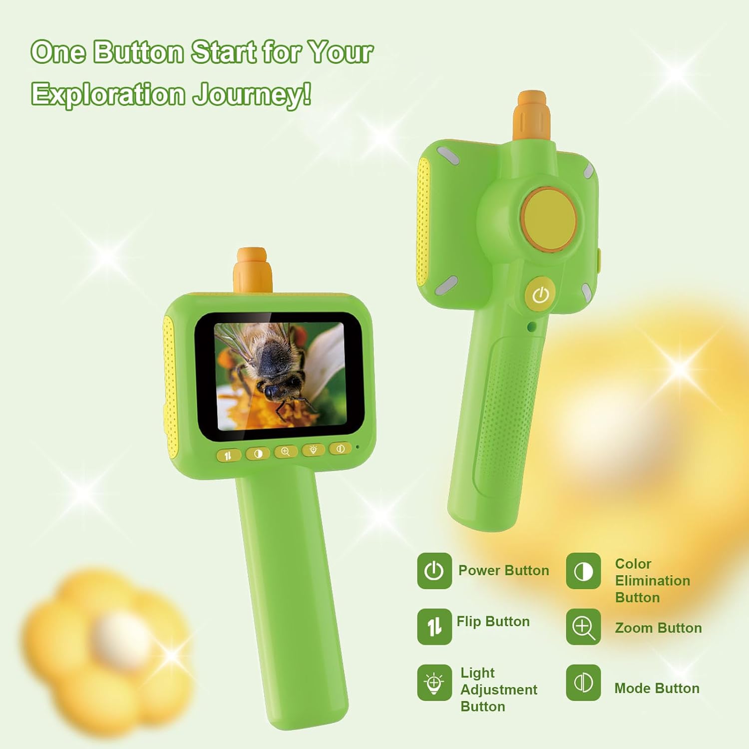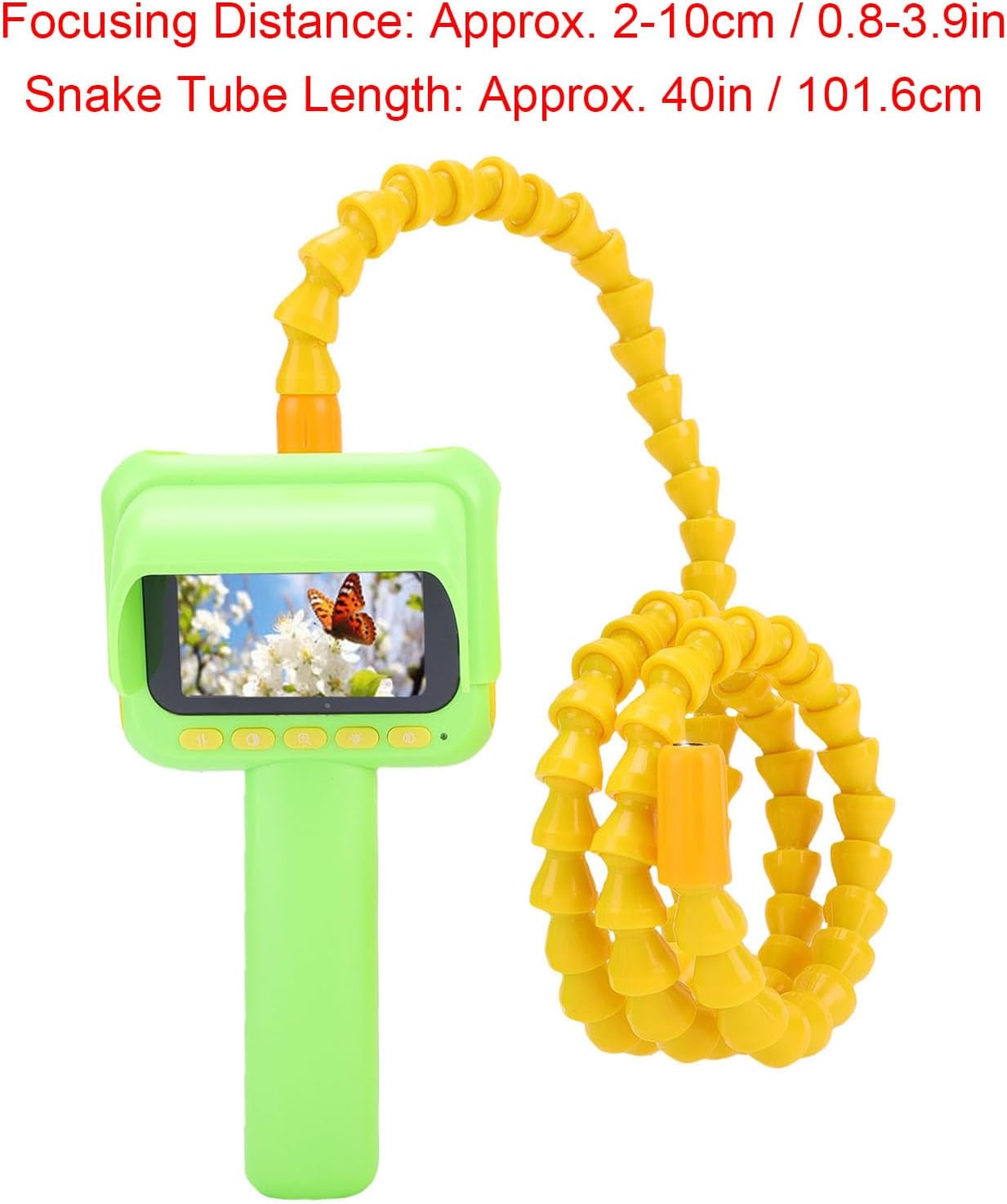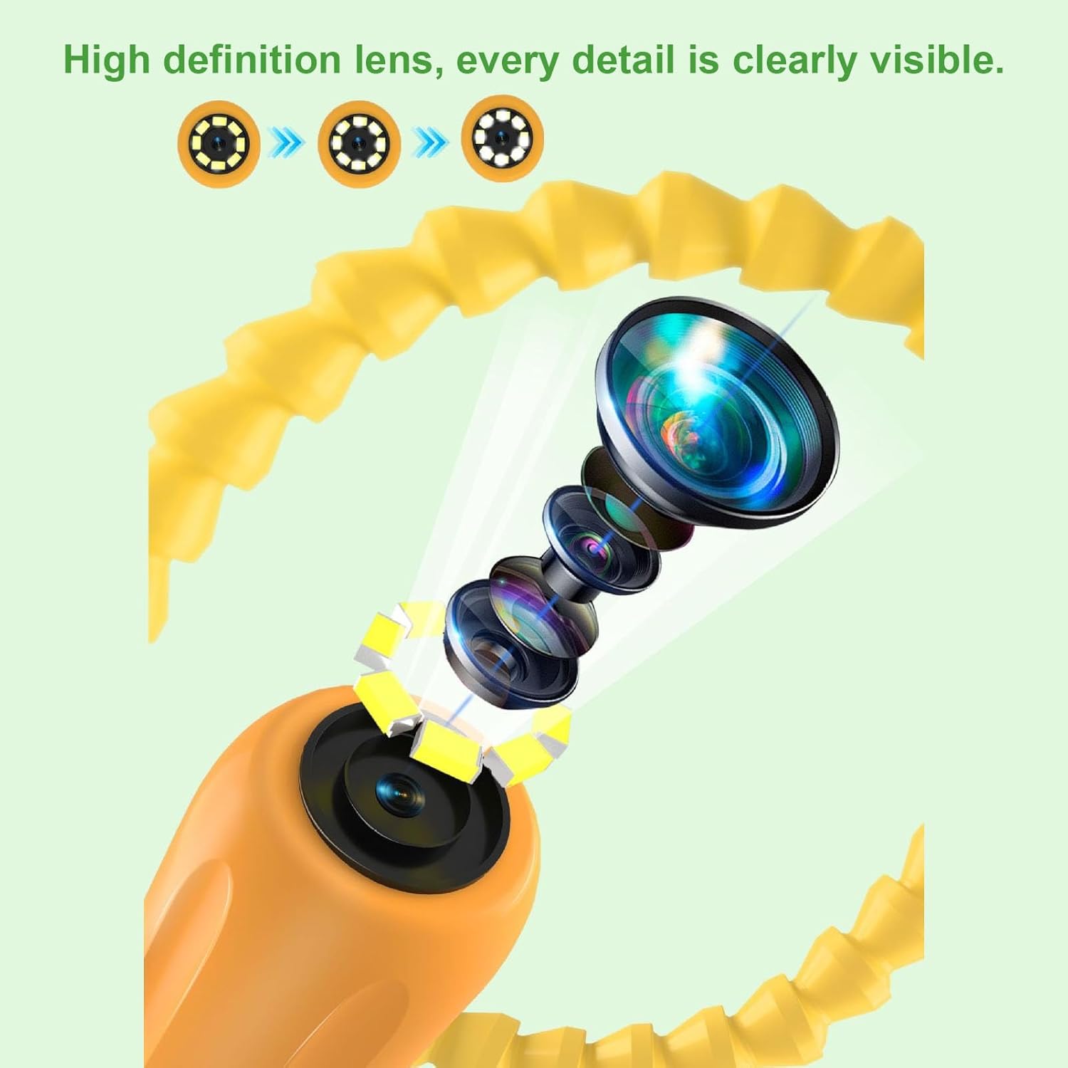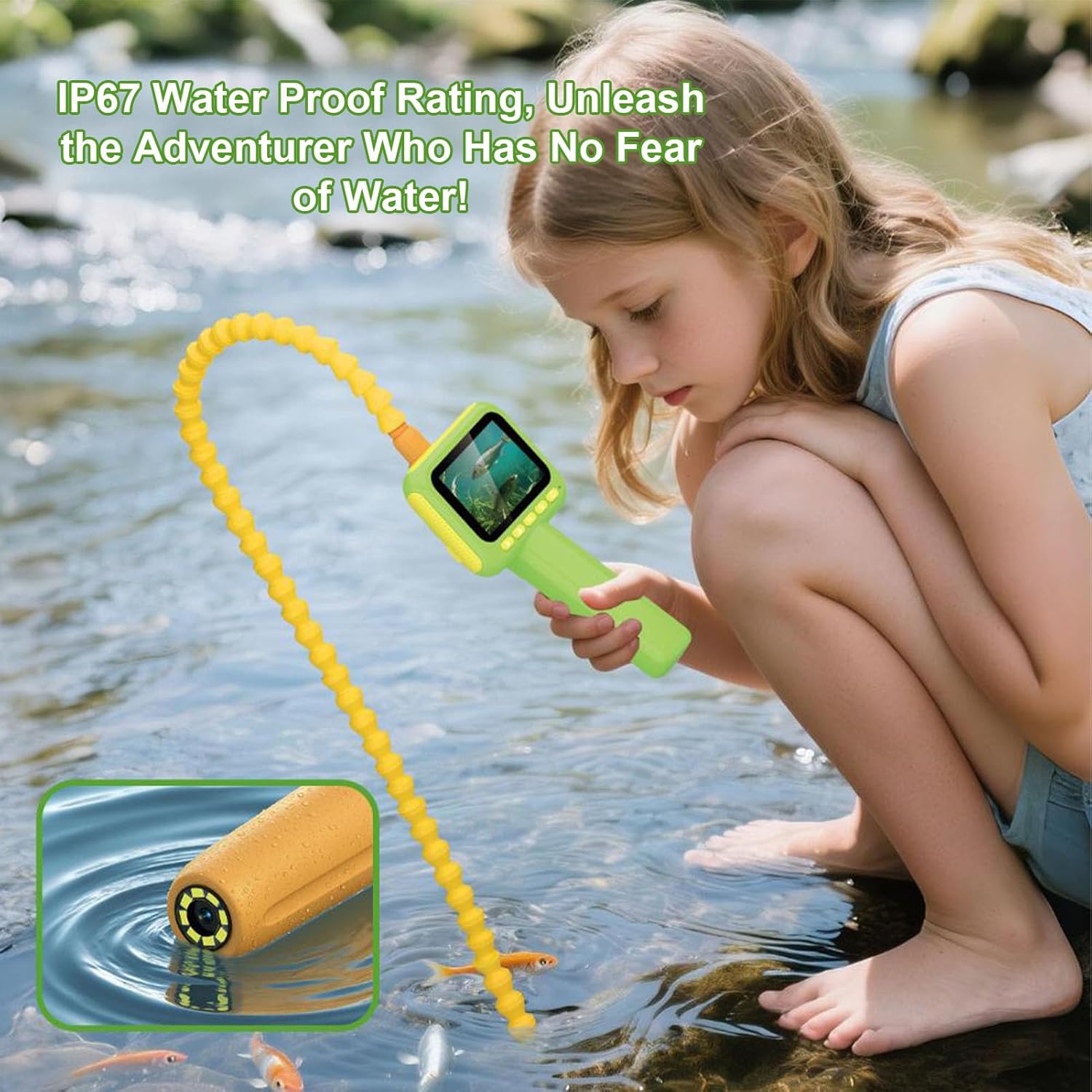 Display cristallino: il display vibrante da 2,8 pollici offre un'esperienza visiva HD, riducendo al minimo l'affaticamento degli occhi e consentendo ai bambini di esplorare i dettagli intricati delle piante da laghetto, anche in pieno sole. Design impermeabile IP67: dotata di lente impermeabilizzante IP67 e tubo flessibile, questa fotocamera resiste agli schizzi durante le avventure nello stagno e l'esplorazione sotto la pioggia. Immagini ad alta risoluzione: la fotocamera HD da 2 MP pixel è dotata di 8 luci LED regolabili, che illuminano scoperte affascinanti come ragnatele, lucciole e fessure oscure. Comodità di ricarica di tipo C: progettato con una batteria integrata da 800 mAh, questo endoscopio per bambini si ricarica tramite una porta USB di tipo C, semplice e conveniente per l'alimentazione. Incoraggiare l'esplorazione all'aperto: adatta ai giovani avventurieri, questa fotocamera promuove l'esplorazione degli ecosistemi dei letti dei fiumi, i misteri delle cavità degli alberi e i tesori nascosti dei giardini.