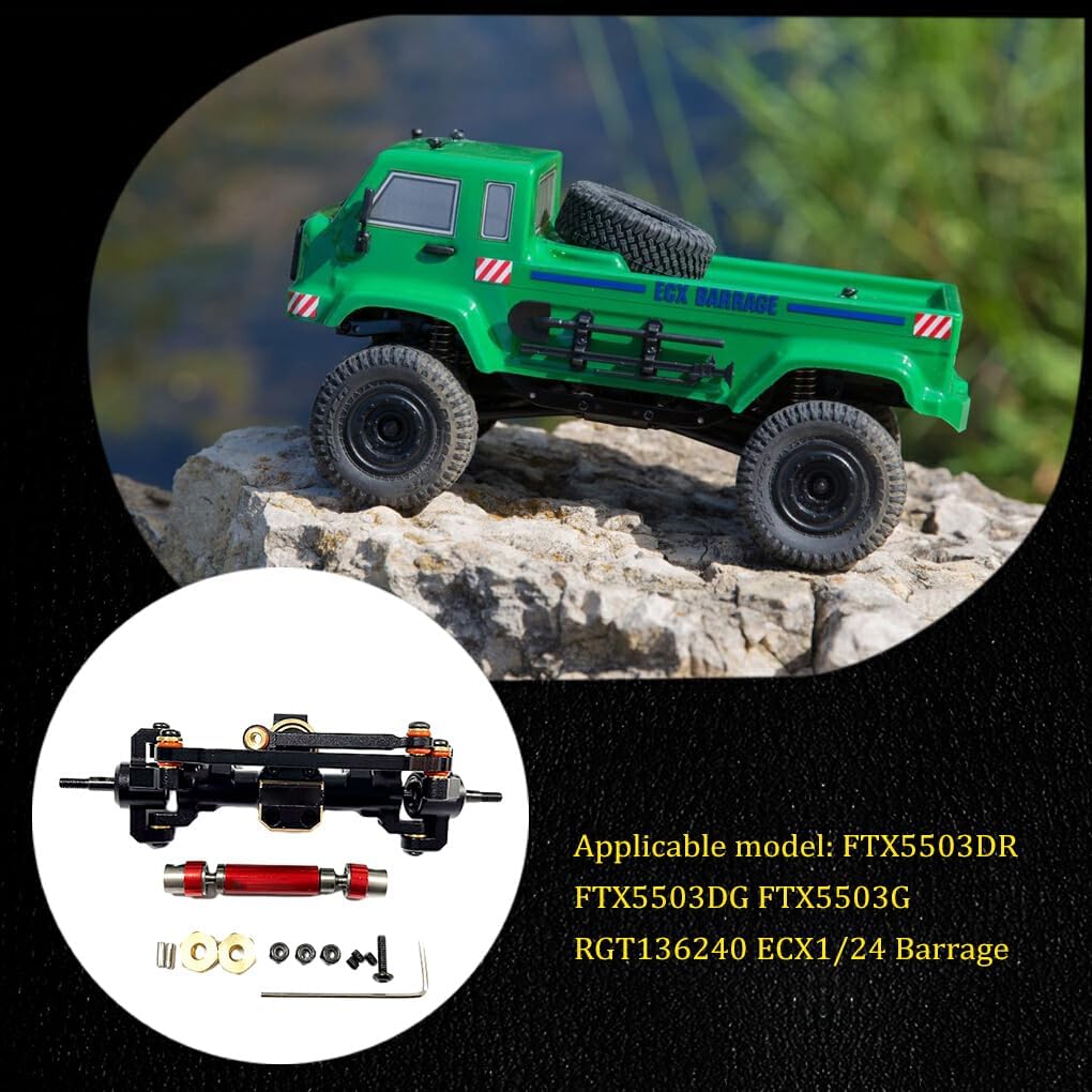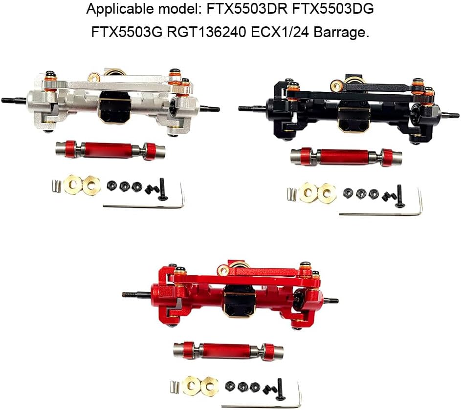Asse anteriore interamente in metallo con vite senza fine: aggiorna il tuo cingolato RC con questo asse anteriore in alluminio dotato di un ingranaggio a vite senza fine durevole per prestazioni migliorate Facile da installare: questo set completo di assali è progettato per una facile installazione sui modelli di auto RC FTX5503DR, FTX5503DG, FTX5503G, RGT136240 e ECX1/24 Barrage Costruzione in alluminio: realizzati in alluminio resistente, questi assali sono costruiti per durare e resistere a terreni fuoristrada accidentati per prestazioni di lunga durata Lavorazione durevole e di precisione: la lavorazione di precisione di questi assi garantisce una perfetta aderenza e durata, fornendo un'esperienza di scansione RC fluida e affidabile Adatto per FTX5503DR FTX5503DG FTX5503G RGT136240 ECX1/24 Barrage: questi assali in alluminio sono progettati per adattarsi perfettamente e migliorare le prestazioni dei modelli di auto RC menzionati, offrendo una migliore maneggevolezza e stabilità