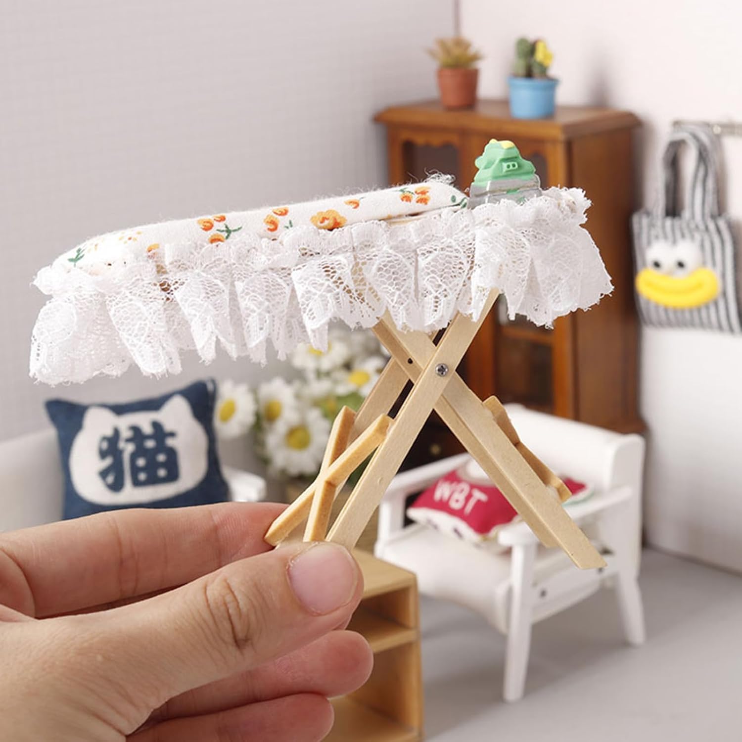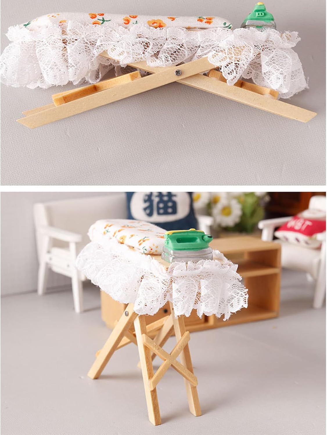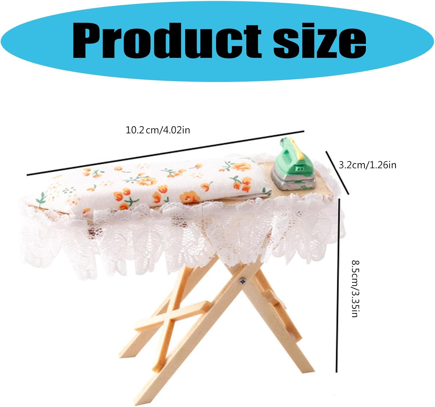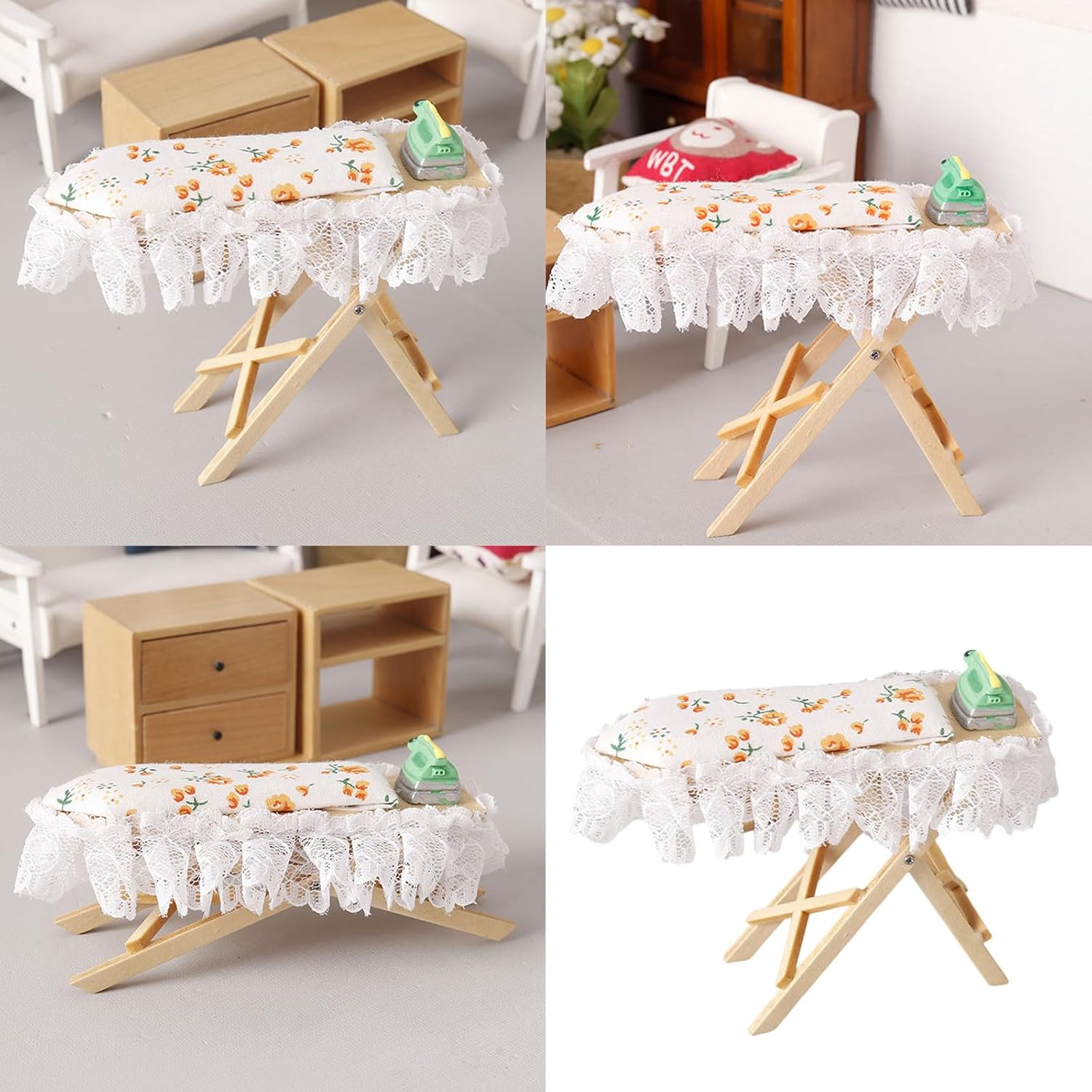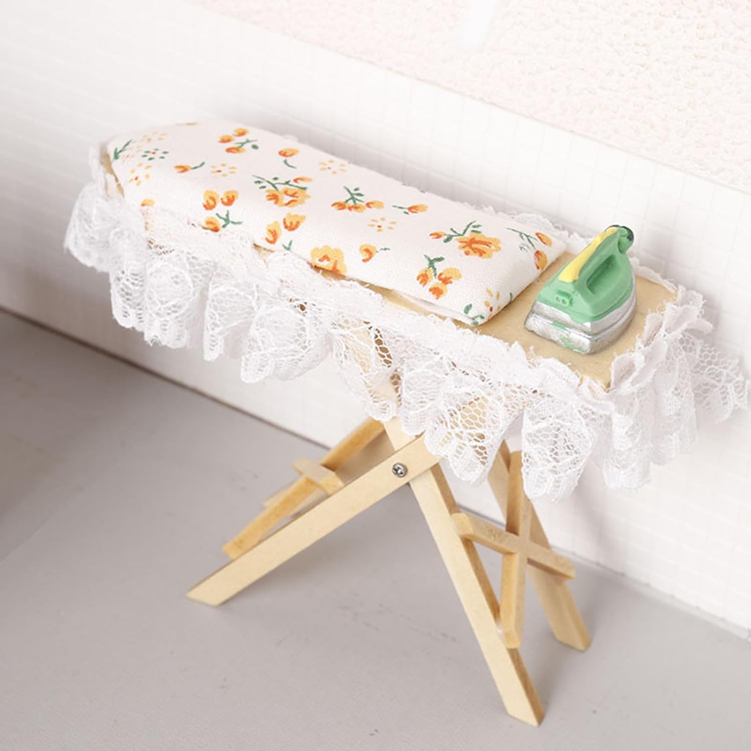 Migliora la tua collezione di miniature con questo kit da stiro, un fantastico regalo che racchiude la creatività su piccola scala e il divertimento di accessoriare le case delle bambole. Sia come supporto per la fotografia, come componente in progetti o come incantevole decorazione in una casa delle bambole, questo kit da stiro aggiunge un tocco divertente ma autentico a qualsiasi scena in miniatura. Ottimo per collezionisti, hobbisti e menti creative, questo set in miniature è un'ottima aggiunta per coloro che amano migliorare la scena della loro casa delle bambole o impegnati in giochi fantasiosi. Immergiti nel mondo delle miniature con le nostre case delle bambole. Kit da stiro in miniatura, una replica perfetta in scala 1/12 che dona un tocco di realismo alla tua collezione di case delle bambole. Con precisione e attenzione ai dettagli, questo asse da stiro è dotato di un asse da stiro in legno con rivestimento in tessuto floreale e un ferro da stiro in miniatura, che mostra una finitura squisita che delizierà gli appassionati