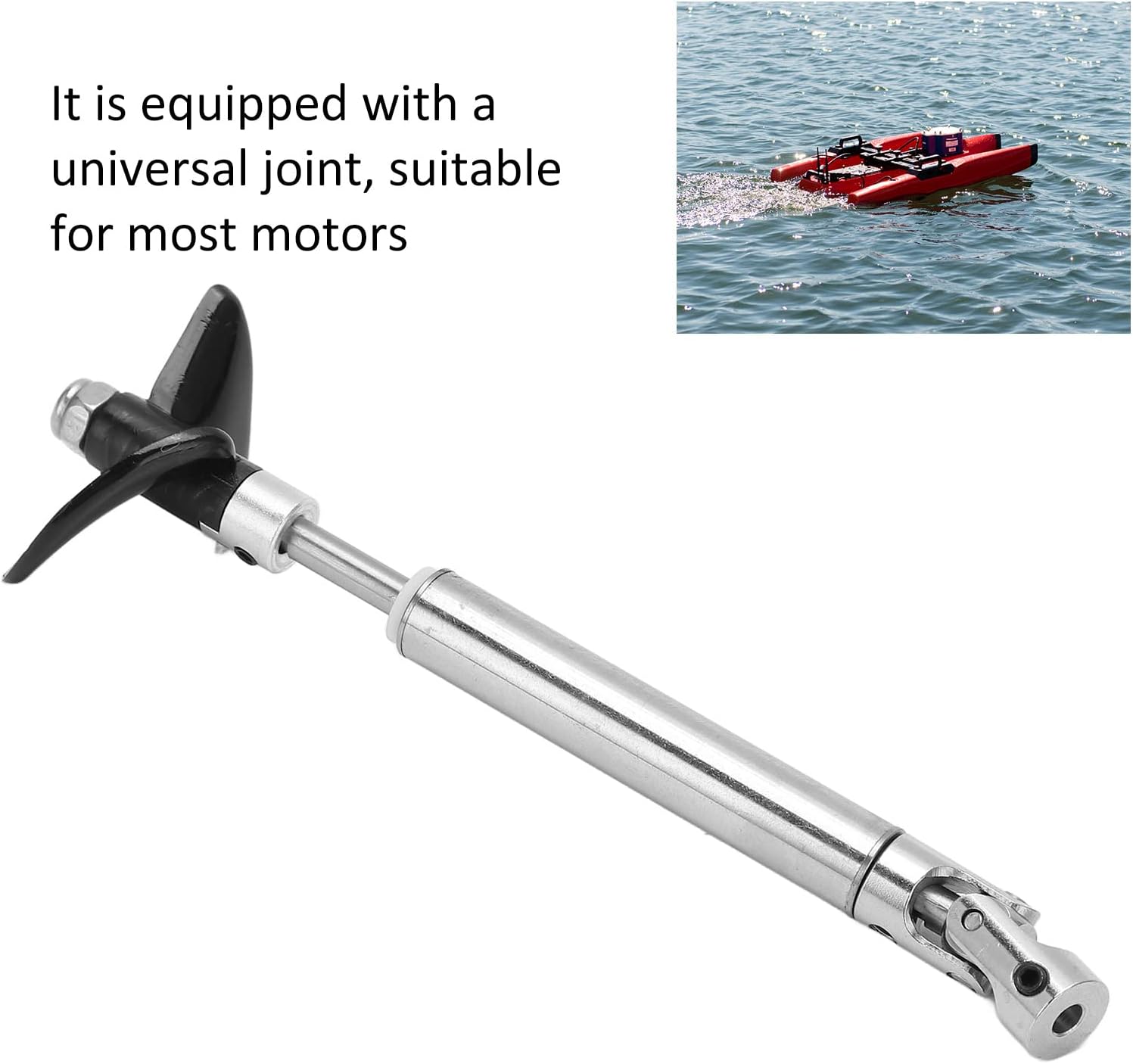 dei pacchetti: incluso kit di assemblaggio dell'albero di trasmissione dell'imbarcazione con telecomando. È dotato di giunto cardanico, adatto alla maggior parte dei motori。 Cuscinetti ad alta velocità: ci sono due cuscinetti ad alta velocità tra l'albero e il manicotto per far funzionare l'albero di trasmissione senza intoppi. Applicazione: il kit di montaggio dell'albero di trasmissione è adatto per barche telecomandate, motoscafi, navi, barche, parti di aggiornamento di barche giocattolo, ecc. Materiale: l'albero e il manicotto sono realizzati in acciaio inossidabile, con elevata durezza e alta tenacità, resistente alle alte temperature. Parametri: lunghezza dell'albero 10 cm / 3,9 pollici, lunghezza del manicotto dell'albero 5 cm / 1,95 pollici, dimensioni dell' 36 mm / 1,4 pollici, vestito per diametro dell'albero motore 4 mm / 0,15 pollici.