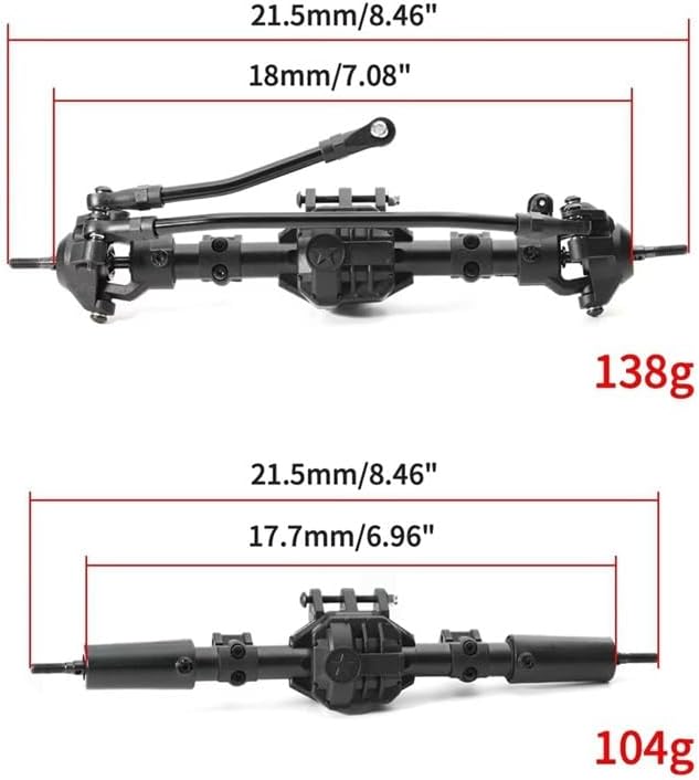 Assale differenziale anteriore e posteriore per Axial SCX10 II 90046 90047 1/10 RC Crawler Car Parts Upgrade 2 pezzi La scocca in lega di alluminio, gli ingranaggi interni in acciaio e l'albero di trasmissione sono robusti per migliorare la durata e rendere la tua auto RC più bella e attraente. L'asse anteriore-posteriore dell'auto elimina meglio l'onda e migliora la stabilità, inoltre la consistenza dell'asse della portiera è ulteriormente migliorata. l'asse del portale anteriore posteriore dell'auto RC può aumentare il peso corporeo e abbassare il baricentro per una guida più fluida, fornendo prestazioni stabili per la tua auto RC. il kit dell'asse del portale posteriore anteriore è progettato per migliorare l'altezza da terra del veicolo e migliorare efficacemente le prestazioni del traffico.