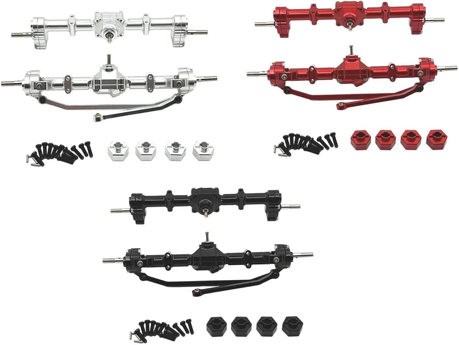 Set di assali anteriori e posteriori, pezzi di ricambio, parti di aggiornamento, alloggiamenti per assali a portale in metallo, assale anteriore e posteriore per MN168 1/12 Leggero, ottima vestibilità e aspetto migliorato, rendono la tua auto RC più attraente. Gli assali a portale garantiscono una maggiore altezza da terra e riducono il carico sugli altri componenti della trasmissione per prestazioni migliori l'asse del portale anteriore posteriore dell'auto RC può aumentare il peso corporeo e abbassare il baricentro per una guida più fluida, fornendo prestazioni stabili per la tua auto RC. il kit dell'asse del portale posteriore anteriore è progettato per migliorare l'altezza da terra del veicolo e migliorare efficacemente le prestazioni del traffico.
