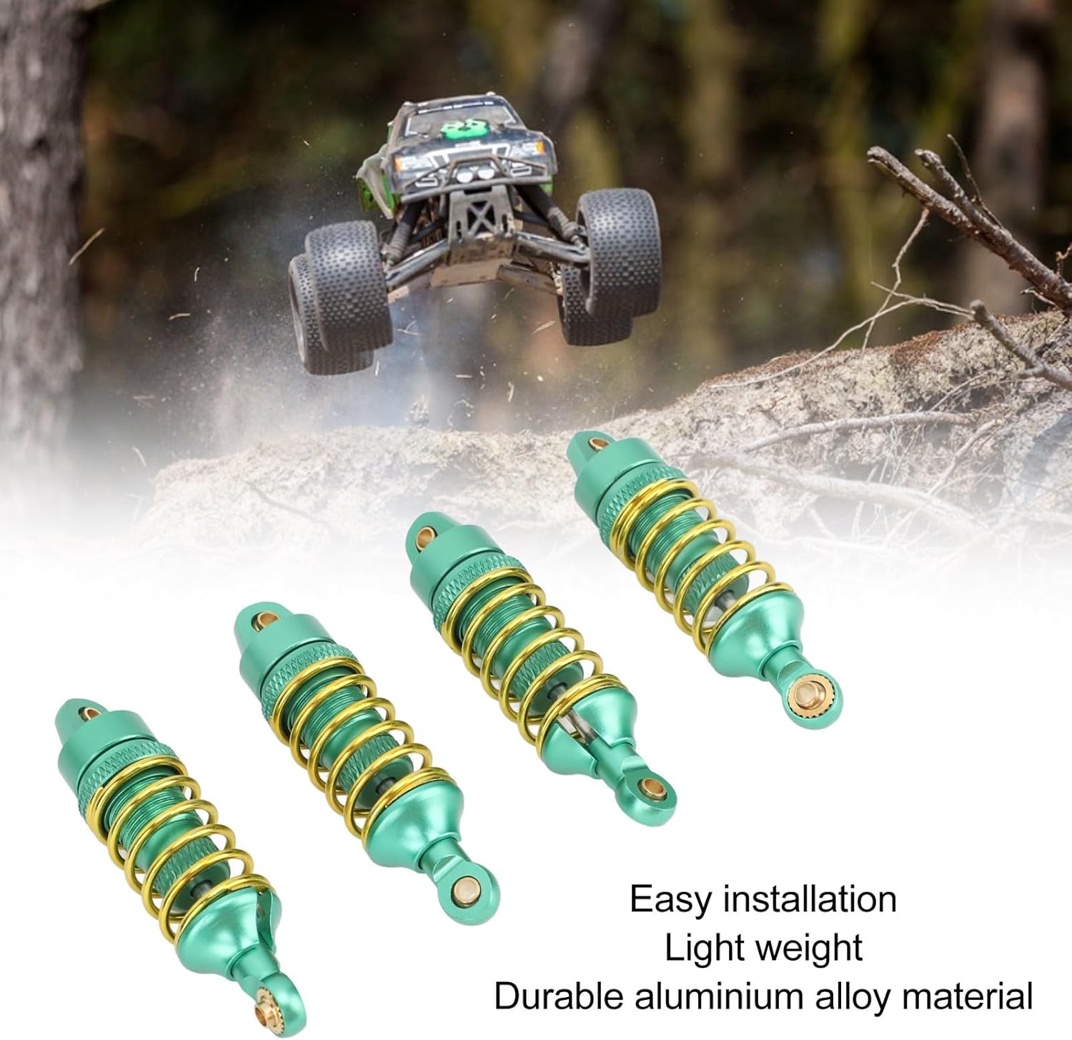Installazione semplice: questi ammortizzatori a molla per Summit possono essere facilmente installati e impongono poco carico alla tua auto RC, la stabilità è effettivamente migliorata. Guida bilanciata: questi ammortizzatori anteriori posteriori RC forniscono un'esperienza di guida bilanciata e riducono le vibrazioni causate da cattive condizioni stradali. Progettato per auto RC 1/16: questi ammortizzatori per auto RC sono progettati appositamente per E , per Slash, per Summit e altre auto RC 1/16. Elevata elasticità: questi ammortizzatori per sono dotati di molle altamente elastiche che garantiscono elevata stabilità ed eccellente effetto smorzante. Materiale durevole: questi ammortizzatori per auto RC sono realizzati in materiale in lega di alluminio, resistente all'usura e alla ruggine, che garantisce la massima durata.