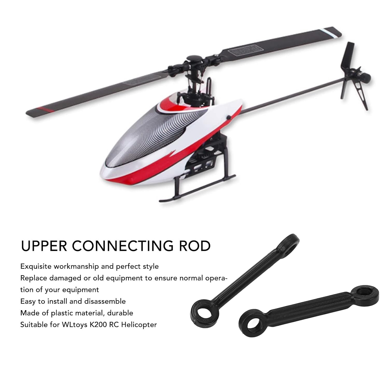 Modello applicabile: l'asta di collegamento superiore in elicottero RC in plastica è adatta per l'elicottero di controllo telecomandata K200. Materiale plastico: l'asta di collegamento della tomaia in elicottero RC è realizzata in materiale plastico, è resistente e non facile da danneggiare. Facile da installare e smontare: è possibile sostituire apparecchiature danneggiate o vecchie per garantire il normale funzionamento dell'apparecchiatura. Fit : l'asta di collegamento superiore per K200 RC Helicopter si adatta perfettamente alla posizione del foro originale con un design accurato di dimensioni. Buona fattura: fatica squisita, aspetto bello, piccole dimensioni portatili, offrendo un'ottima esperienza nell'uso.