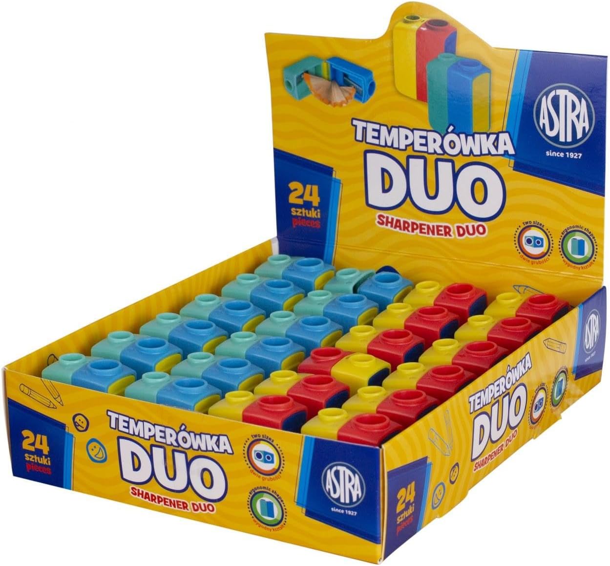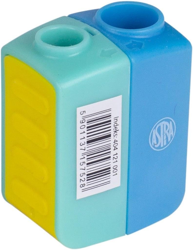 Temperamatite doppio con contenitore Astra Temperamatite per due spessori. Materiale: plastica Lama in metallo. Contenitore per rifiuti. Dimensioni: 4,1 x 3,1 x 2,2 cm