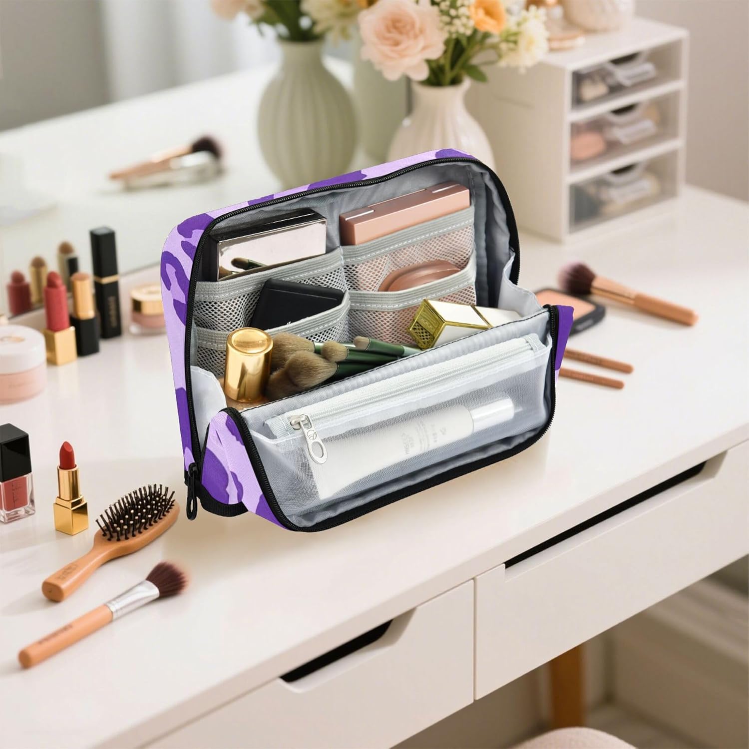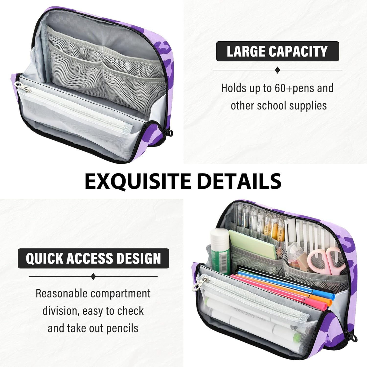 Design intelligente della struttura: la custodia con cerniera per trucco si trasforma in un supporto con chiusura magnetica quando piegata, offrendo una visione chiara e un facile accesso alle tue forniture Qualità che puoi sentire: il nylon resistente offre all'organizzazione degli insegnanti per l'aula una struttura leggera ma resistente, mantenendo il contenuto al sicuro rendendo la pulizia semplice e senza problemi Interno pulito e spazioso: progettato per comodità, la custodia per matite separa i tuoi oggetti utilizzando una sezione principale, una tasca a rete con cerniera e una tasca aperta per un rapido recupero degli oggetti Strumento versatile per tutti i giorni: dalle penne ai cosmetici, l'astuccio può essere utilizzato come astuccio, borsa da toilette o mini custodia per scuola, viaggi, ufficio o routine quotidiane Soluzione regalo personalizzata: aggiungi un nome o una foto alle borse organizer da viaggio e fai un regalo unico nel suo genere che unisce praticità e personalità per scuola, viaggi o uso domestico