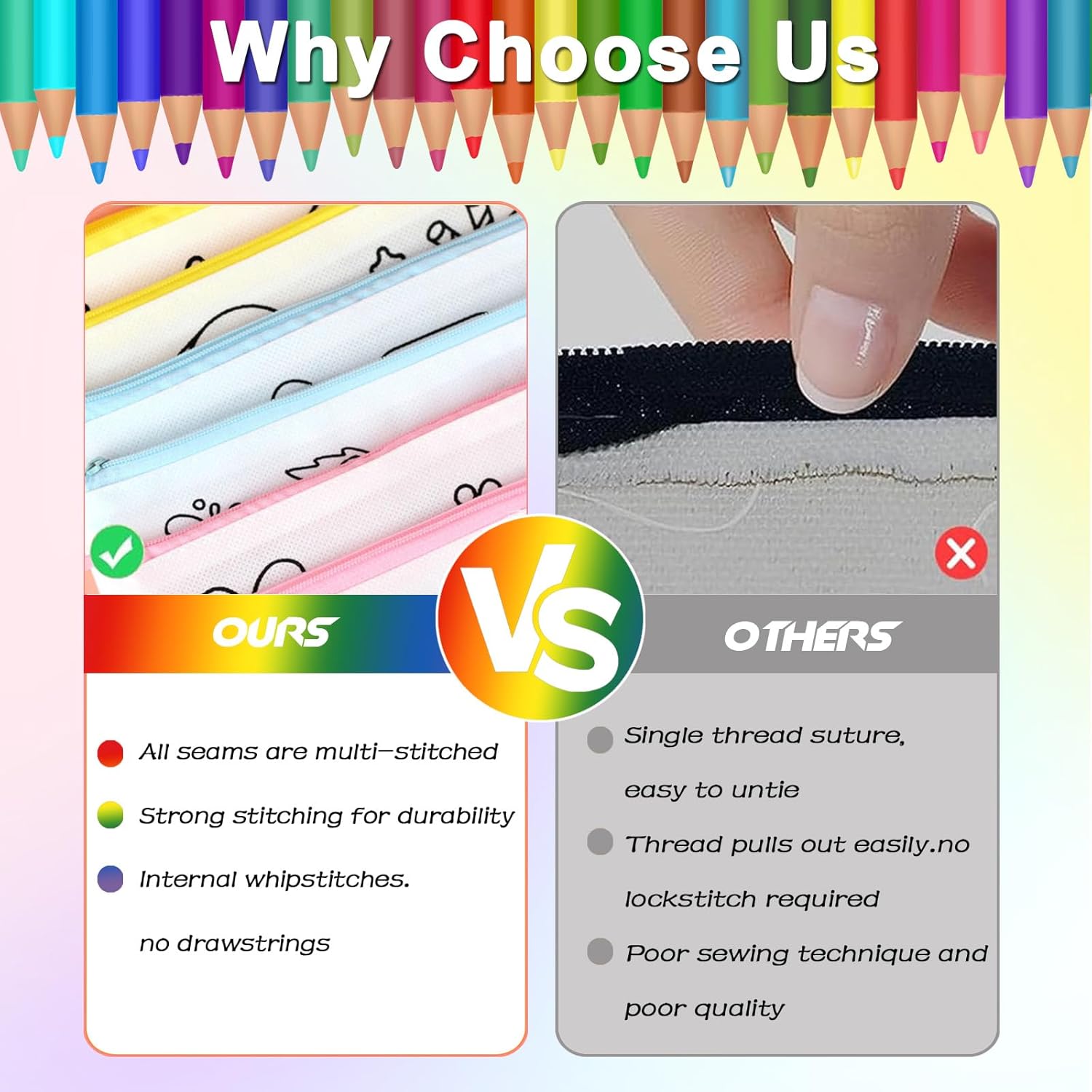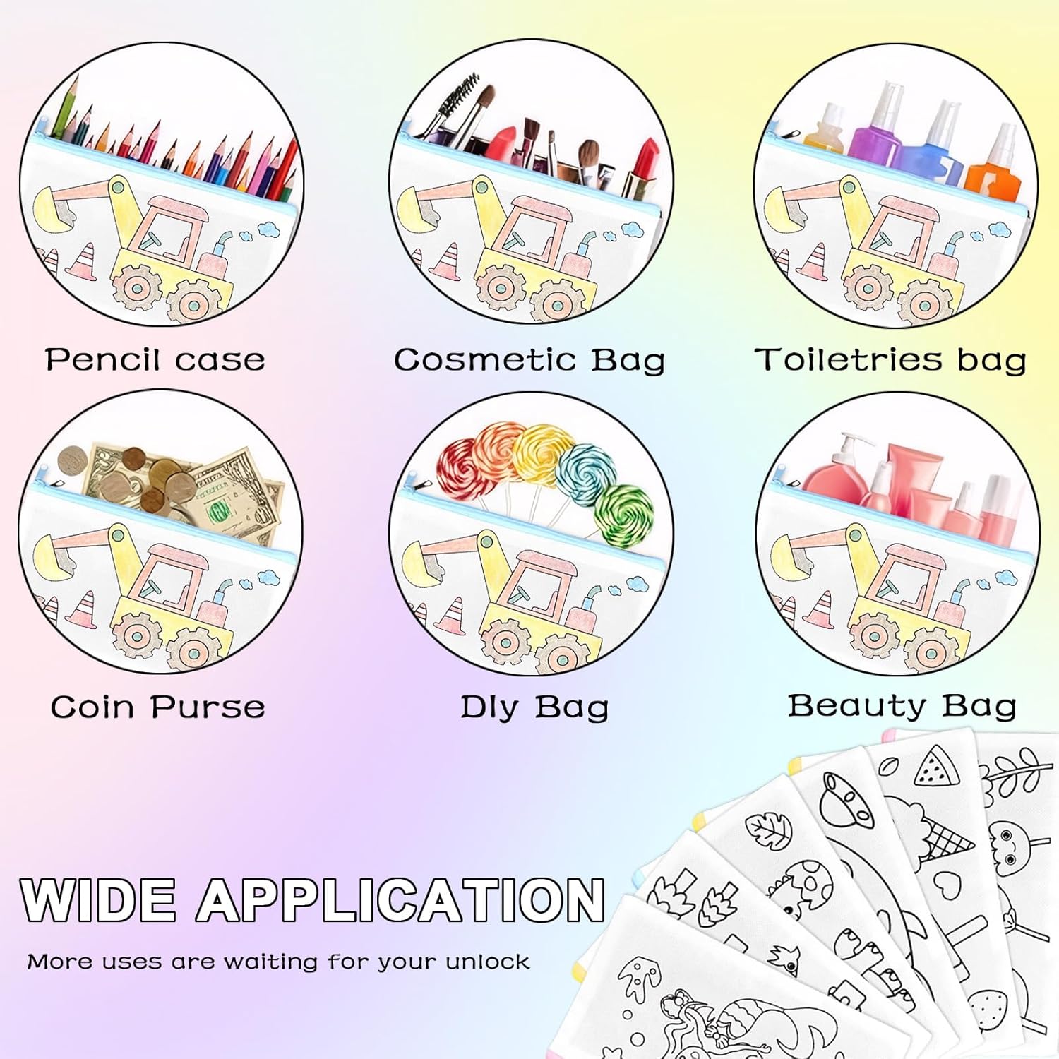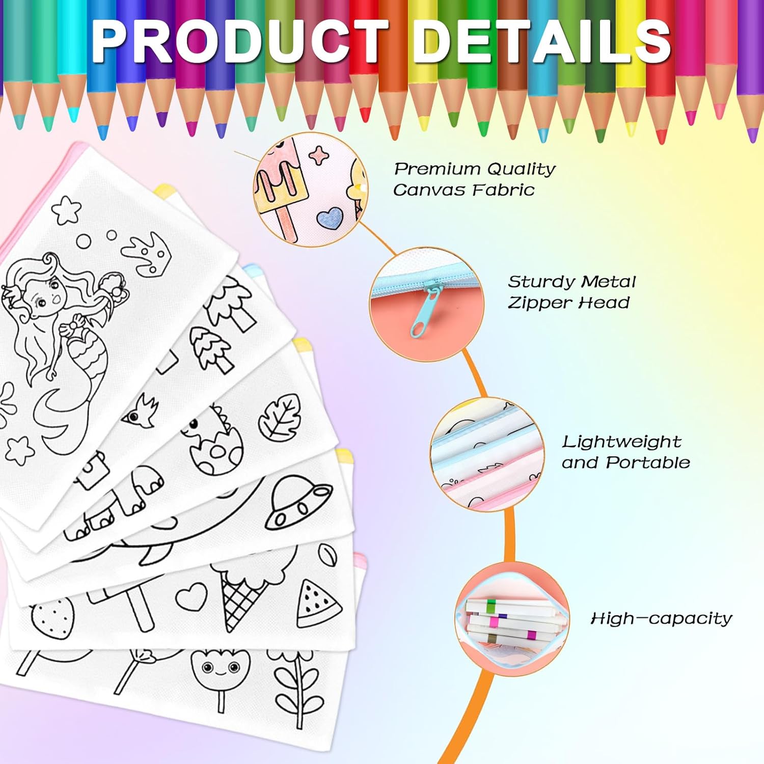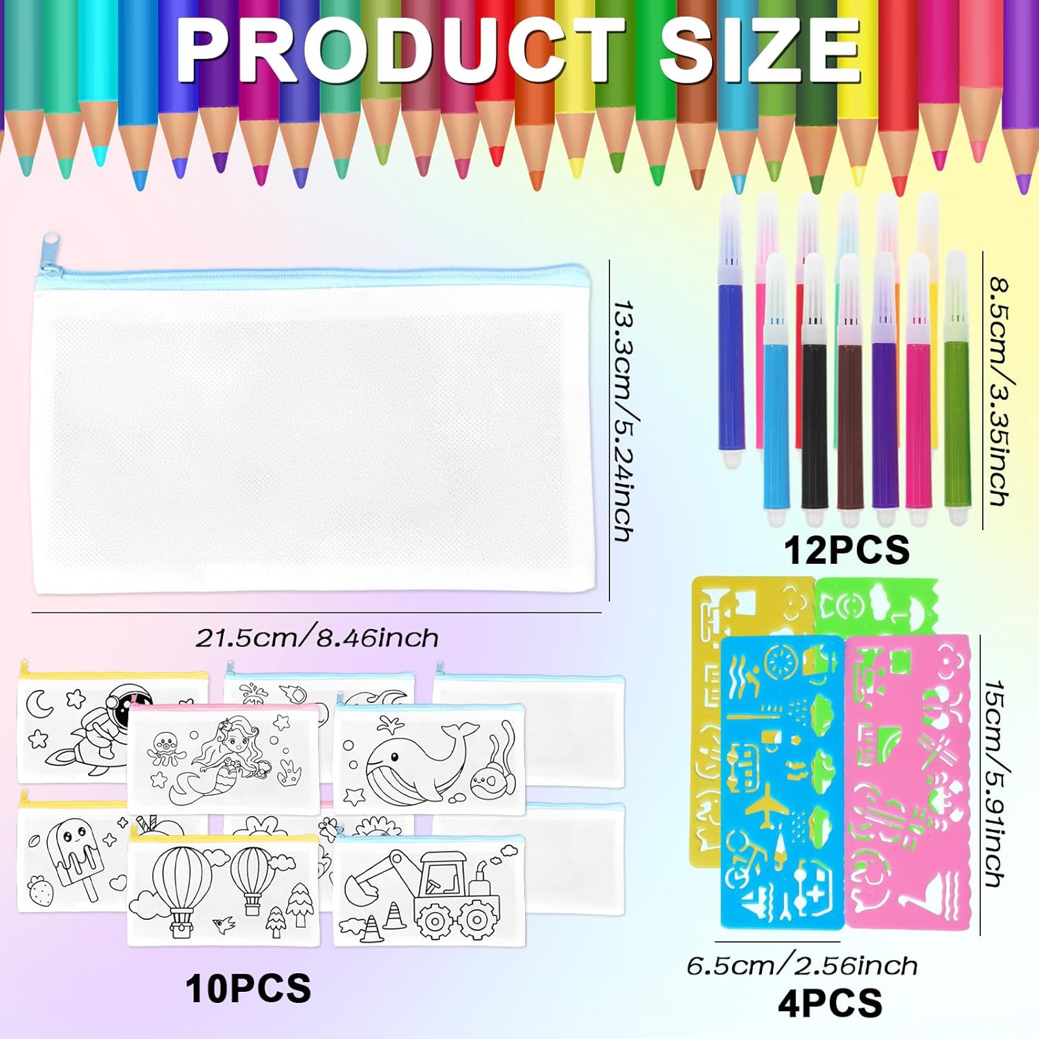 Questo set di astucci include 12 pezzi di astucci in tessuto non tessuto, ciascuno con temi diversi come gelati, dinosauri, escavatori, sirene, fiori, astronauti, mongolfiere, balene e due astucci bianchi per creare design personalizzati. Perfetto per stimolare la creatività dei bambini. Ogni set include una confezione di 12 pennarelli acquerello di colori brillanti. I pennarelli sono facili da usare, consentendo ai bambini di colorare senza fatica. La qualità dei colori è ideale per un'applicazione liscia e precisa, perfetta per esprimere ogni sfumatura dell'immaginazione. Il set contiene anche 4 modelli da disegno che permettono ai bambini di seguire facilmente le linee guida per creare opere d'arte. Questi modelli sono ideali per i principianti e aiutano a perfezionare le tecniche artistiche in modo divertente e senza stress. Gli astucci sono realizzati in tessuto non tessuto, materiale ecologico, resistente e sicuro per i bambini. Non emette odori e può essere personalizzato con i pennarelli inclusi, offrendo infinite possibilità creative. Un prodotto che rispetta l'ambiente e la salute dei più piccoli. Questo set è ideale per attività creative a casa, a scuola o durante i viaggi. Perfetto per i bambini che amano l'arte e i lavori manuali, questo set può anche diventare un regalo speciale per amici o familiari, ideale per rafforzare legami familiari o come attività educativa nelle scuole.
