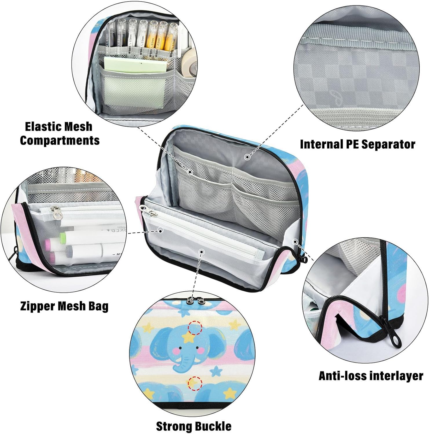 Design unico in piedi: l'astuccio si apre completamente e sta in piedi tramite bottoni magnetici. Visualizza facilmente i contenuti a colpo d'occhio sulla tua scrivania, risparmiando ricerche frenetiche durante sessioni di studio o attività di lavoro. Organizzazione spaziosa e intelligente: il portapenne presenta un ampio scomparto principale, una tasca in rete con cerniera e una tasca aperta. Separa facilmente matite, gomme, temperamatite, note o piccoli gadget per un controllo totale del disordine. Costruito resistente con tassello in nylon: astuccio realizzato in nylon 100% poliestere di alta qualità e cerniere resistenti. Resiste alla vita quotidiana di studenti/pendolari, resiste all'abrasione ed è semplice da lavare a mano. Multifunzione: non si tratta di un astuccio, ma può anche essere utilizzato per altri scopi. Come una penna, una matita o un astuccio per pennelli, una borsa per il trucco, un ufficio personale e una custodia per forniture Questo piccolo astuccio organizer è un bel regalo per adulti, scrittori e artisti per laurea, regalo di compleanno, ritorno a scuola o forniture di viaggio.