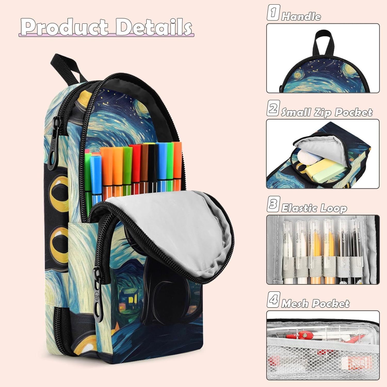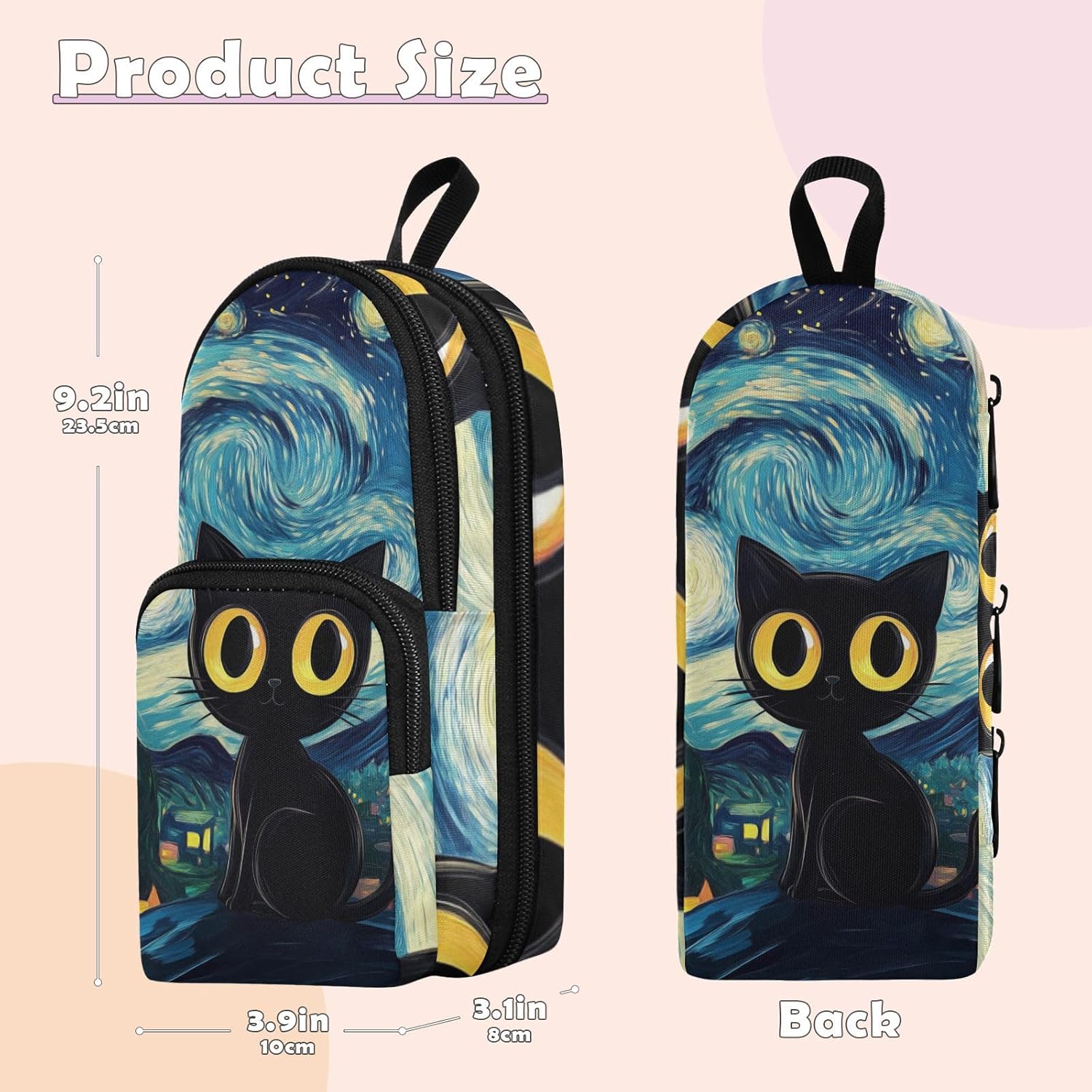 Volume: le dimensioni degli astucci per ragazze sono di 23,4 x 9,9 x 7,9 cm, e la grande capacità di 1600 ml assicura che non sia necessario riempire frequentemente le matite. È possibile memorizzare da 30 a 75 matite sottili contemporaneamente, il che è comodo e pratico. Multifunzionale: questo astuccio con cerniera a tre strati non può contenere matite, ma può anche essere utilizzato per riporre piccoli articoli di cancelleria come gomme, righelli e temperamatite, ottenendo un'integrazione multifunzionale e garantendo che i tuoi strumenti di apprendimento siano tutti disponibili. Materiale: plastica appositamente realizzata, la cerniera è liscia e facile da tirare. Il materiale è morbido ma resistente e non soggetto a deformazioni, fornendo una protezione affidabile e a lungo termine per le matite, che è una perfetta combinazione di qualità e durata. Design: il design unico con stampa senza cuciture ha motivi squisiti e colori vivaci e duraturi, rendendo il tuo astuccio distinguersi tra molti articoli di cancelleria e evidenziando la tua personalità e il tuo gusto. Età consigliata: dai 3 anni in su. Non adatto ai bambini di età inferiore ai 3 anni. Se avete qualche problema con questo astuccio estetico, vi preghiamo di contattarci via e-mail.