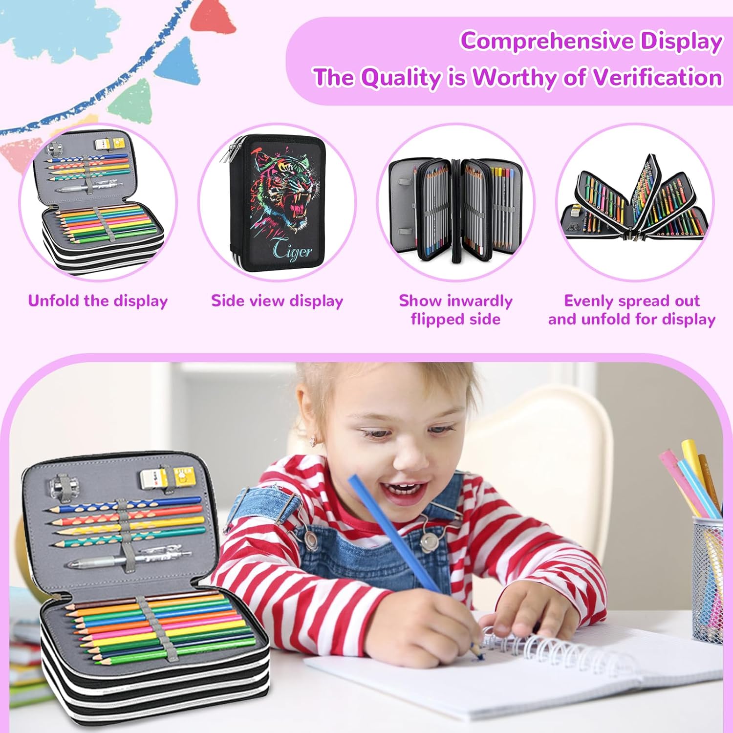 Materiale di Alta Qualità: Questo astuccio bambino è realizzato in tessuto Oxford di alta qualità, resistente, resistente all'usura, agli strappi, non facile da deformare e durevole. La consistenza è confortevole, l'aspetto è dritto e bello e, anche dopo un uso prolungato, astuccio può rimanere come nuovo. Rispetto ai materiali ordinari, è più resistente allo sporco e ai graffi ed è facile da pulire con una leggera passata. Grande Capacità: Questo astuccio 3 scomparti bambino adotta un design a partizione multistrato con ampio spazio interno, che può facilmente ospitare una varietà di articoli di cancelleria come matite, matite colorate, penne, gomme, righelli, ecc。 astuccio 3 scomparti quadrato è chiaramente classificato e gli articoli sono disposti ordinatamente per evitare accatastamenti caotici, rendendo l'accesso più efficiente e migliorando notevolmente l'efficienza dell'organizzazione della cancelleria. Design con Cerniera multipla: Astuccio tre scomparti adotta un design a strati indipendenti con più cerniere. Ogni scomparto astuccio tre scomparti può contenere la cancelleria separatamente per evitare di mescolare o perdere gli articoli. La cerniera è stata ripetutamente testata e si apre e si chiude senza intoppi. Le cerniere multiple non solo migliorano la praticità d'uso, ma consentono anche di trovare rapidamente gli oggetti necessari. Leggero e Portatile: Questo astucci scuola ha un'ampia capacità e può essere facilmente inserito in uno zaino, una valigetta o una borsa. Che tu sia a scuola, al lavoro o in viaggio, puoi portare con te la tua cancelleria astuccio bambina 3 scomparti. Non solo risparmia spazio, ma riduce anche la perdita di oggetti, rendendo l'apprendimento e il lavoro più efficienti e confortevoli. Ampio Utilizzo: Questo astuccio 3 scomparti bambina seven non è adatto solo agli studenti per riporre la cancelleria, ma anche a insegnanti, impiegati e appassionati di pittura. astuccio scuola può anche essere utilizzato per riporre piccoli oggetti come matite colorate, pennelli per il trucco, cavi dati, ecc, un'unica borsa per molteplici. Che tu sia a scuola, in ufficio o a casa, può mantenere tutto pulito e in ordine, rendendolo la scelta ideale per lo studio e il lavoro.