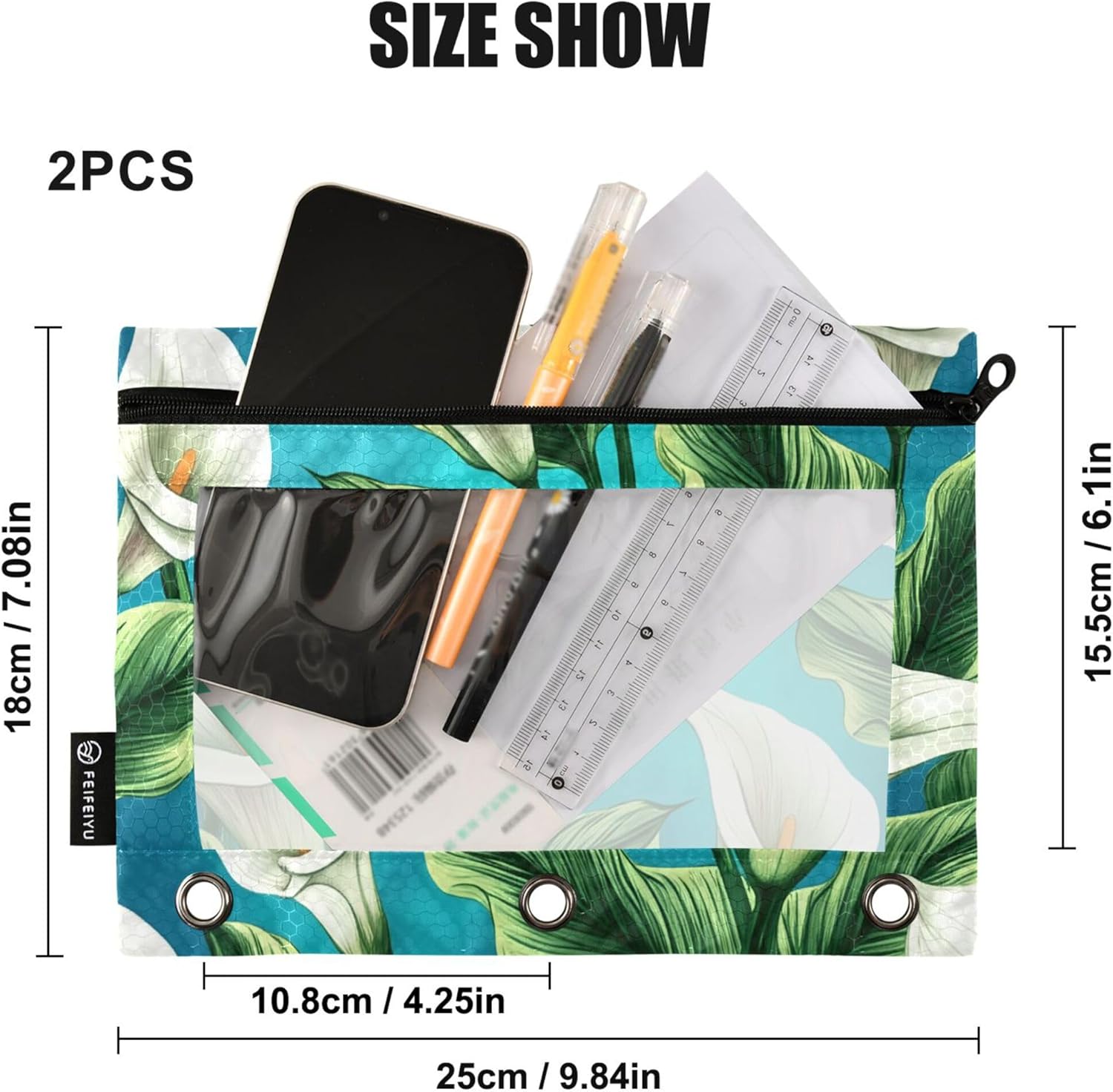 Materiale di alta qualità: realizzato con un tessuto lucido 100% poliestere, questo raccoglitore a 3 anelli resistente e impermeabile per la scuola protegge la tua cancelleria con stile. Dimensioni generose: offre una dimensione di 25 x 18 x 0,5 cm con un'area utile effettiva di 15,5 x 25 cm, l'astuccio per raccoglitori è abbastanza spazioso per riporre tutti i tuoi articoli di cancelleria essenziali. Design pronto per raccoglitore: con una distanza tra i fori di 10,8 cm, l'astuccio per raccoglitore a 3 anelli si integra perfettamente con i raccoglitori standard a 3 anelli, rendendolo una scelta versatile per l'organizzazione. Comodo e trasparente: il pannello frontale in PVC trasparente consente di vedere e accedere facilmente ai tuoi oggetti, raccoglitori con tasche che lo rendono una scelta pratica per l'uso quotidiano. GIOCO & ELEGANTE: eleva la tua organizzazione con cartelline portadocumenti tascabili con astuccio, mostrando una vivace gamma di stampe con adorabili animali e fiori, adatto a qualsiasi ambiente.