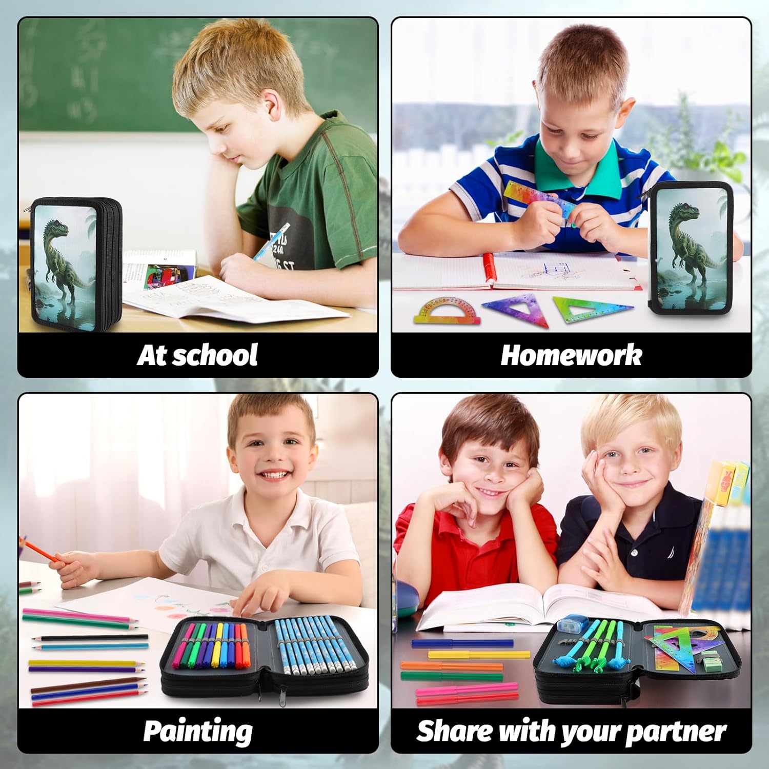 【Set completo da 44 pezzi】Questo astuccio 3 scomparti bambino contiene tutto il necessario: matite, colori, righelli, gomma, temperamatite e un quaderno. è un astuccio completo per scuola elementare, perfetto per bambini dai 6 anni in su. 【Design con dinosauri che stimola l'apprendimento】Con il suo stile vivace e tematica dinosauro, questo astuccio elementari bambino dinosauri conquista subito i bambini. ideale per la scuola primaria e perfetto come astuccio scuola bambino divertente e motivante. 【Organizzazione pratica e ordinata】Grazie alla struttura a 3 scomparti con fasce elastiche, ogni oggetto ha il suo posto. questo astuccio scuola elementare maschio aiuta i bambini a tenere tutto in ordine e a sviluppare buone abitudini scolastiche. 【Materiali resistenti e lavabili】Realizzato in tessuto resistente e facile da pulire, questo astuccio scuola elementare bambino è pensato per un uso quotidiano, adatto anche come astuccio scuola media o per i più piccoli. 【Regalo ideale per ogni occasione】Perfetto per il ritorno a scuola, compleanni o natale, questo astuccio completo unisce utilità e divertimento. un'idea regalo educativa e apprezzata per ogni piccolo studente.