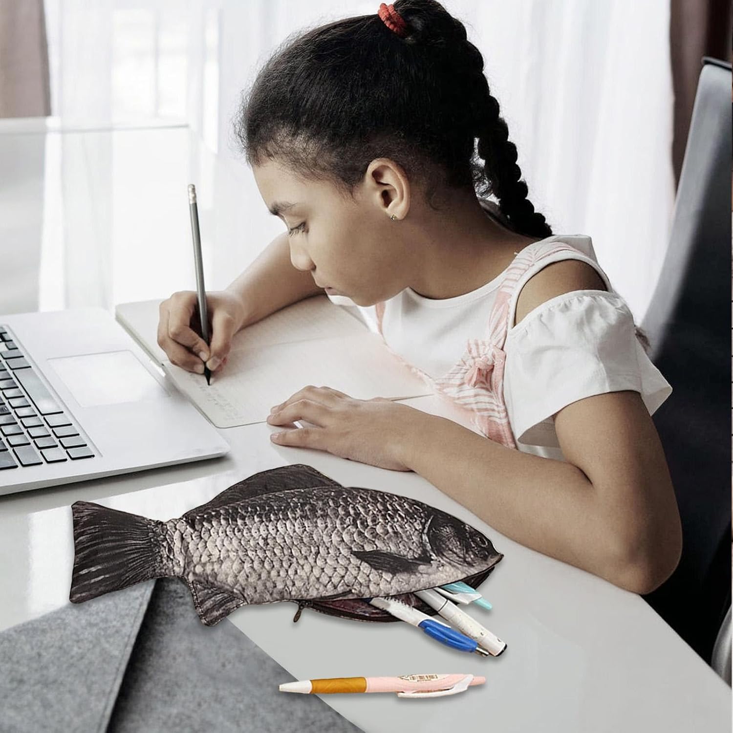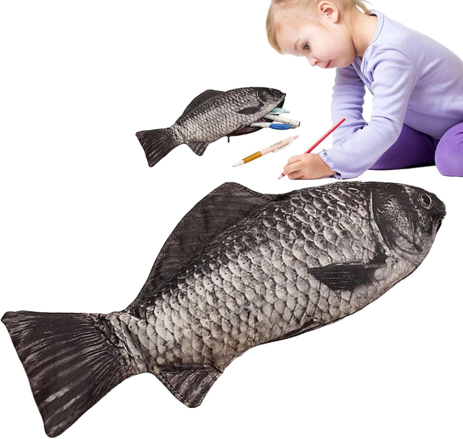 Design e stile unici: il nostro astuccio a forma di pesce vanta una forma di pesce super realistica, che lo rende un astuccio molto bello ed elegante che si distingue dagli altri, per chi ama i design unici. Multifunzionale e versatile: questo astuccio a forma di pesce può essere utilizzato per molteplici funzioni, tra cui portamonete, portamonete e persino borse per telefono, offrendo opzioni di archiviazione efficienti per tutti gli utenti. Grande capacità di archiviazione: progettato con una capacità ultra-grande e una produzione di rapporto 1 a 1, il nostro astuccio per matite pesce soddisfa qualsiasi esigenza di archiviazione, tenendo con facilità matite, monete e telefoni cellulari. Qualità e comfort: la custodia per penna a forma di pesce è realizzata con materiali di ottima qualità, garantendo un prodotto sicuro, innocuo e durevole. Il suo design ispessito offre una maneggevolezza morbida e confortevole. Regalo per tutte le età: questo astuccio per penna a forma di pesce è un regalo per ragazzi e persone care in varie occasioni come Halloween, Natale o compleanni, lasciando un'impressione duratura.