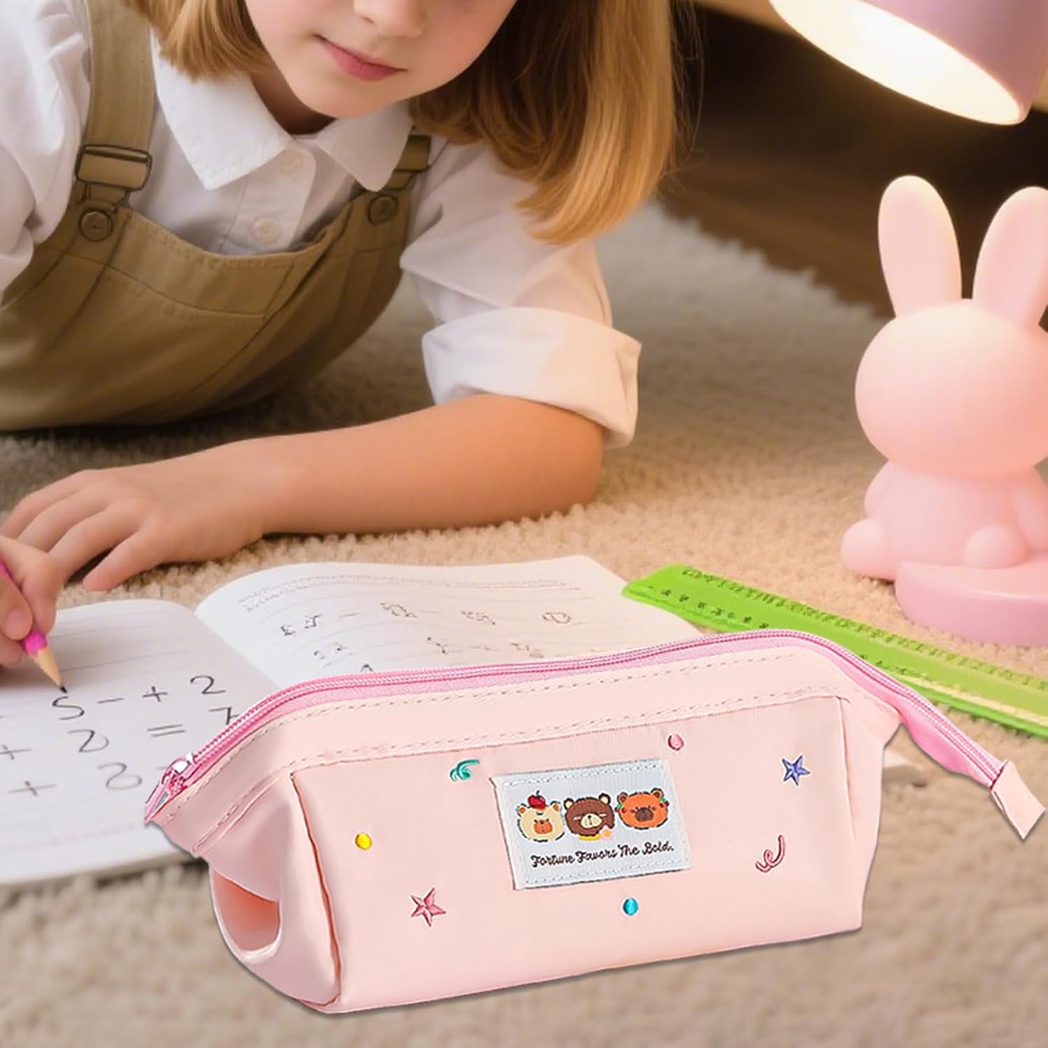 Layout Funzionale: Include tasche divisorie a rete, portapenne elastici e protezioni imbottite per compartimenti organizzati che semplificano la gestione degli oggetti Oggetto Quotidiano Delizioso: Funge da regalo scolastico funzionale, o estetico e perfetta per la scuola. Design affascinante adatto a lei con uso versatile per esigenze organizzative quotidiane e facile trasporto o Fotogenico: Questo portamatite con tavolozza di colori tenui è un o da scrivania elegante. Realizzato in resistente tela poliestere, include una cerniera scorrevole per un accesso facile e pratico. Soluzione Multifunzione: Contiene fino a 40 penne e , funzionando come astuccio da viaggio o organizer per pennelli trucco grazie al design capiente che ottimizza lo spazio per necessità diverse Troussa Stile Harajuku: L'adorabile astuccio con ricamo fonde l'appeal di o giocoso ed elegante con il design stile Harajuku per un look speciale e accattivante, per uso quotidiano o come idea regalo