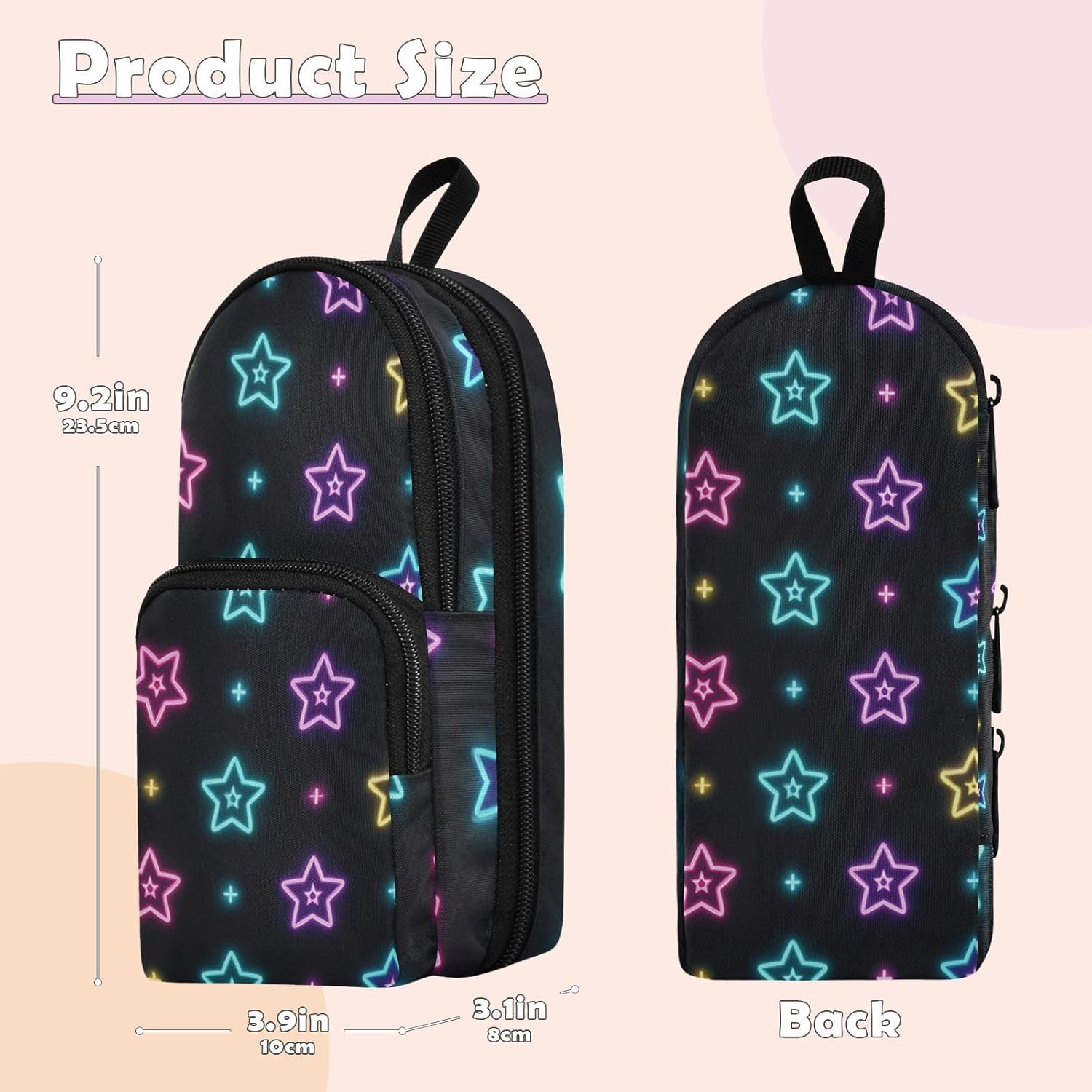 Volume: le dimensioni degli astucci per ragazze adolescenti sono di 23,4 x 9,9 x 7,9 cm, e la grande capacità di 1600 ml assicura che non sia necessario riempire frequentemente le matite. È possibile memorizzare da 30 a 75 matite sottili contemporaneamente, il che è comodo e pratico. Multifunzionale: questo astuccio a tre strati per studenti universitari non può contenere matite ma anche essere utilizzato per riporre piccoli articoli di cancelleria come gomme, righelli e temperamatite, ottenendo un'integrazione multifunzionale e garantendo che i tuoi strumenti di apprendimento siano tutti disponibili. Materiale: realizzati in nylon di buona qualità, i grandi astucci sono robusti e robusti, con buone proprietà impermeabili e resistenti all'usura, proteggono efficacemente le matite e altri articoli di cancelleria da eventuali danni. Design: il design della cerniera è liscio e facile da aprire e chiudere, comodo da usare. Accoppiato con il ragionevole layout a tre strati, offre una comoda esperienza di utilizzo, rendendo più facile prendere e mettere le matite. Età consigliata: dai 3 anni in su. Non adatto ai bambini di età inferiore ai 3 anni. Se avete qualche problema con questo astuccio estetico, vi preghiamo di contattarci via e-mail.