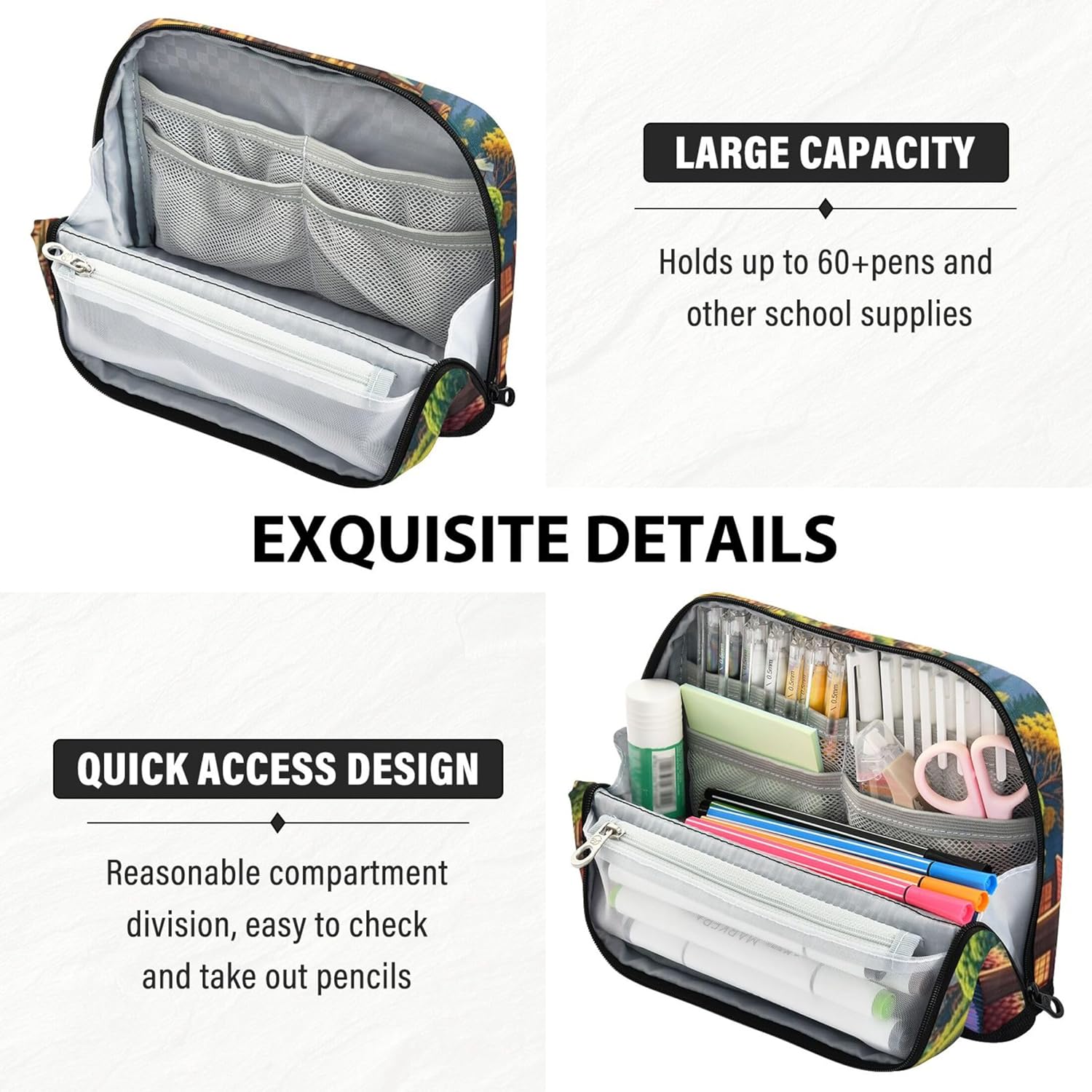 Struttura pieghevole e salvaspazio: l'organizer per matite utilizza chiusure magnetiche per trasformarsi in un supporto verticale, consentendo una rapida panoramica e una disposizione ordinata di strumenti o articoli di cancelleria Costruito per un uso di lunga durata: con cuciture rinforzate e robusto tessuto di nylon, astuccio portapenne gestisce facilmente l'uso quotidiano, rimanendo in ottima forma anche con un uso intenso Contiene più di quanto ti aspetti: nonostante la sua forma compatta, l'astuccio per penne e matite si adatta a cancelleria come penne, matite, gomme e piccoli utensili, grazie al suo design intelligente e multi-tasca Non solo per cancelleria: gli astucci riutilizzabili sono pronti per contenere materiale scolastico, oggetti essenziali da viaggio o prodotti di bellezza, adattandosi perfettamente a ogni stile di vita Regalo premuroso e utile: con motivi accattivanti e supporto personalizzato, l'astuccio per matite diventa un regalo pratico ma sincero per qualsiasi età o stile di vita