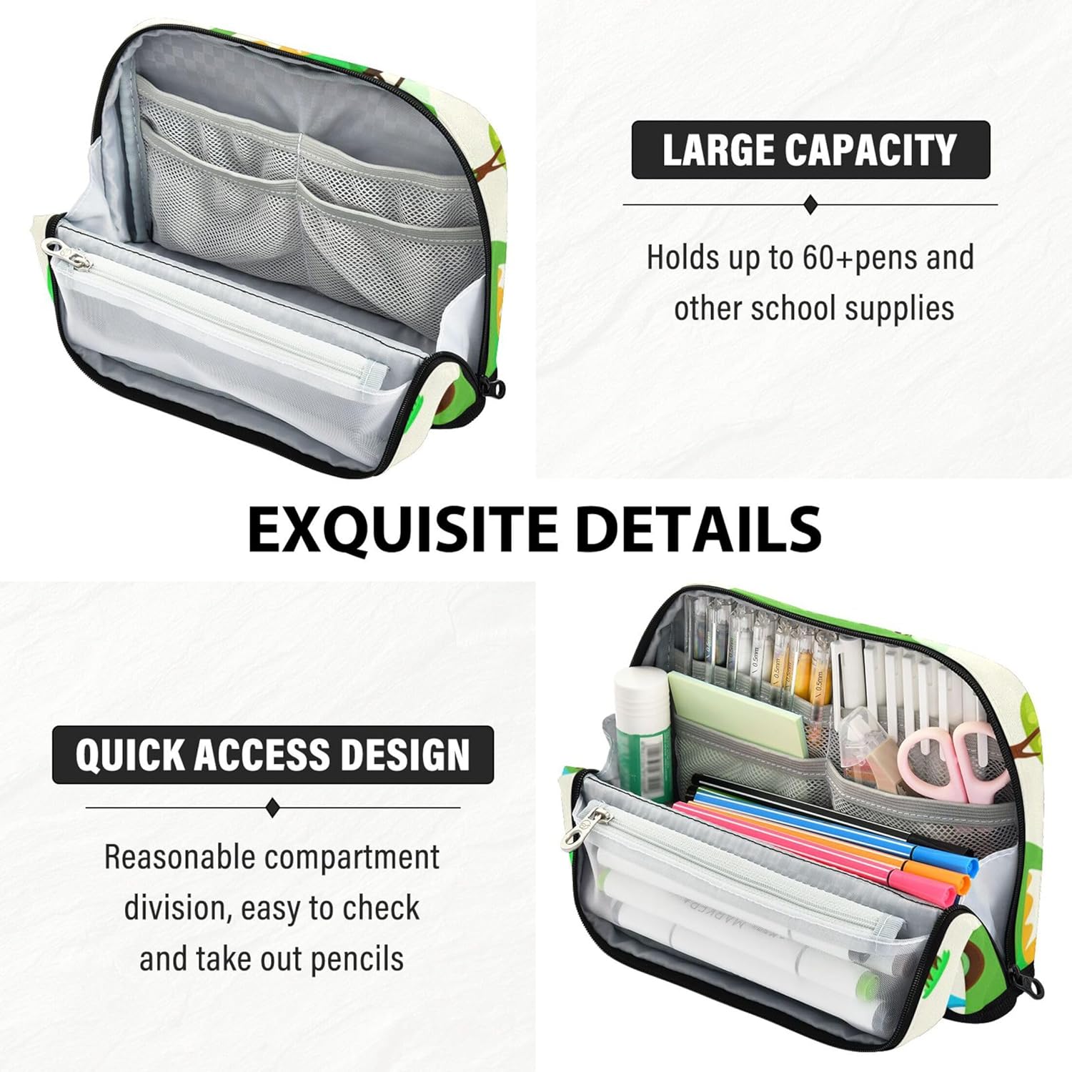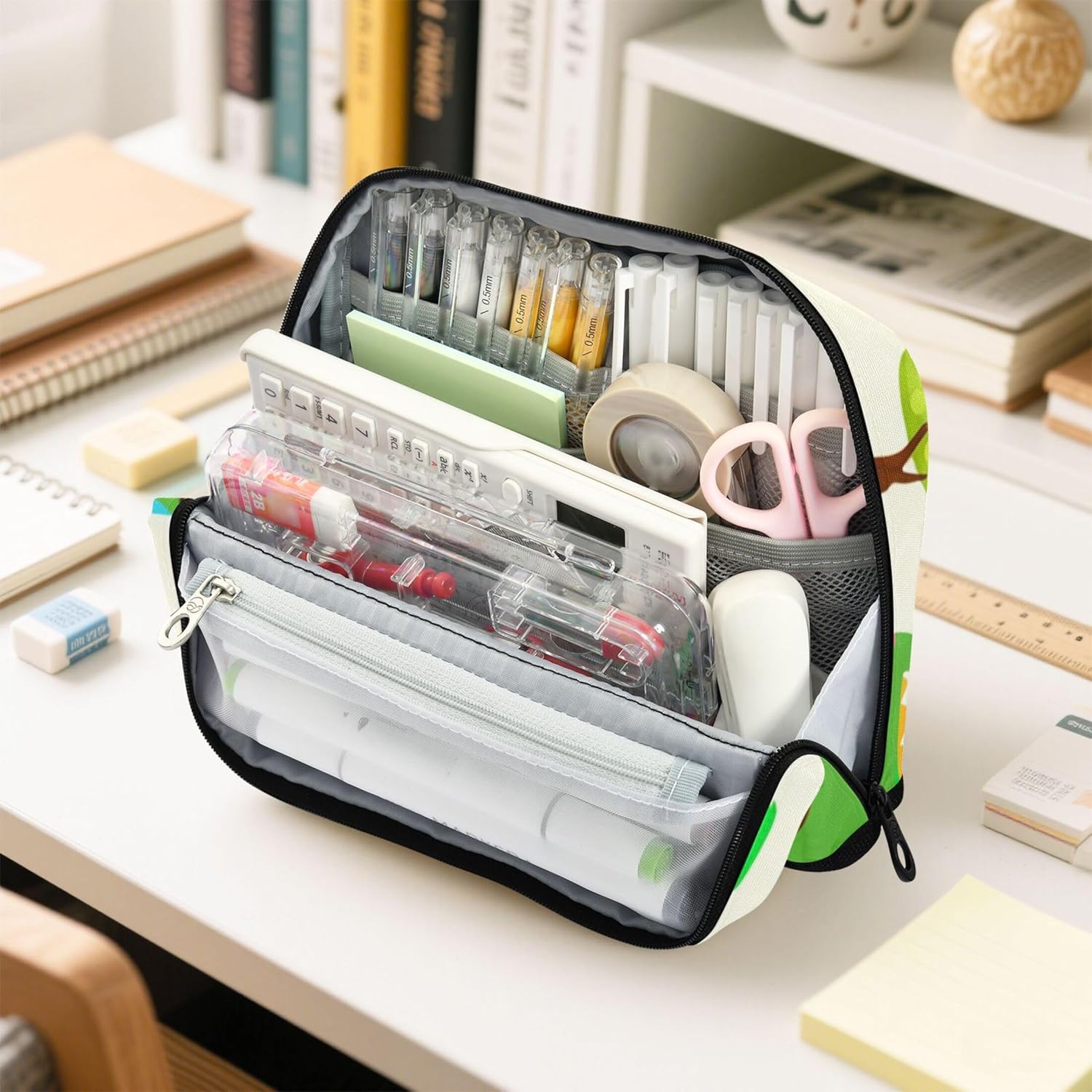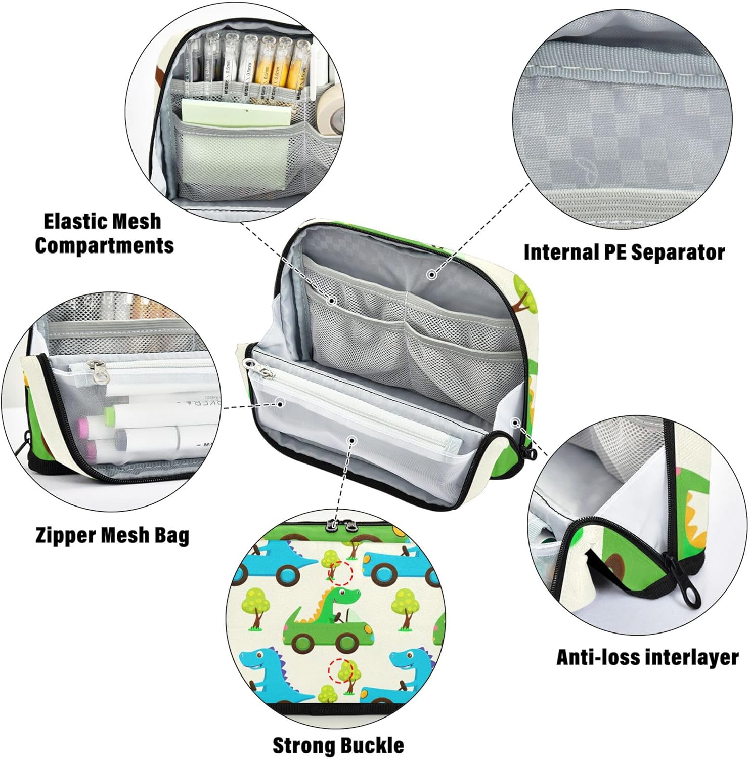Design intelligente della struttura: gli astucci riutilizzabili si trasformano in un supporto con chiusura magnetica quando piegati, offrendo una visione chiara e un facile accesso alle tue forniture Tessuto protettivo e pratico: realizzato in nylon resistente, le tasche con cerniera sono progettate per resistere ai danni, rendendole ideali per viaggi, scuola o spostamenti quotidiani Grande capienza: dispone di uno scomparto principale, una tasca in rete con cerniera e una tasca aperta per organizzare penne, matite, gomme, temperamatite e foglietti adesivi Ideale per casa, scuola o viaggio: organizza cosmetici, cavi, penne e altri piccoli oggetti con astuccio con cerniera, una soluzione compatta e utile per la vita in movimento Ideale per occasioni speciali: l'organizer da viaggio offre un tocco personale con stampe vivaci e personalizzazione opzionale, adatto per laurea, compleanni o rientro a scuola