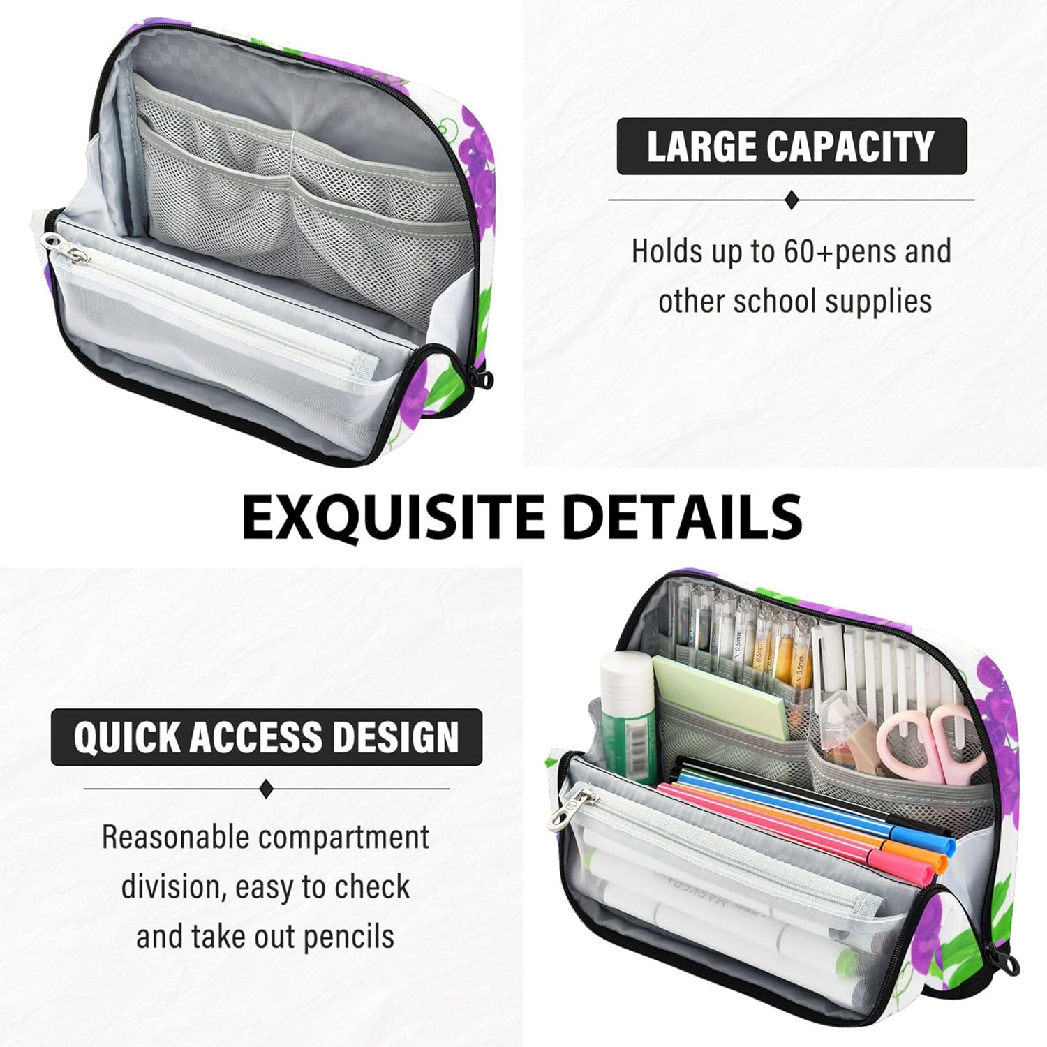 Design magnetico funzionale a scatto: piega la borsa indietro e lascia che il magnete integrato la tenga salda: il simpatico astuccio per bambini si trasforma in un elegante ed efficiente organizer da scrivania in pochi secondi Resistente all'usura e lavabile: l'astuccio scolastico è realizzato in nylon di poliestere di alta qualità che resiste a graffi e macchie, offrendo allo stesso tempo un facile lavaggio a mano per una freschezza a lungo termine Layout intelligente per riporre: tieni le tue forniture in ordine: l'astuccio con cerniera include uno scomparto principale, una tasca in rete con cerniera e uno slot aperto per separare e accedere agli oggetti con facilità Il tuo compagno multifunzionale: che si tratti di uno zaino, valigia o cassetto della scrivania, l'astuccio con forniture fornisce spazio intelligente per attrezzi, spazzole, caricabatterie e molto altro ancora Fallo tuo: le borse da viaggio per articoli da toeletta supportano tocchi personalizzati come nomi, messaggi o immagini, offrendo una scelta regalo creativa per compleanni, rientro a scuola o vacanze