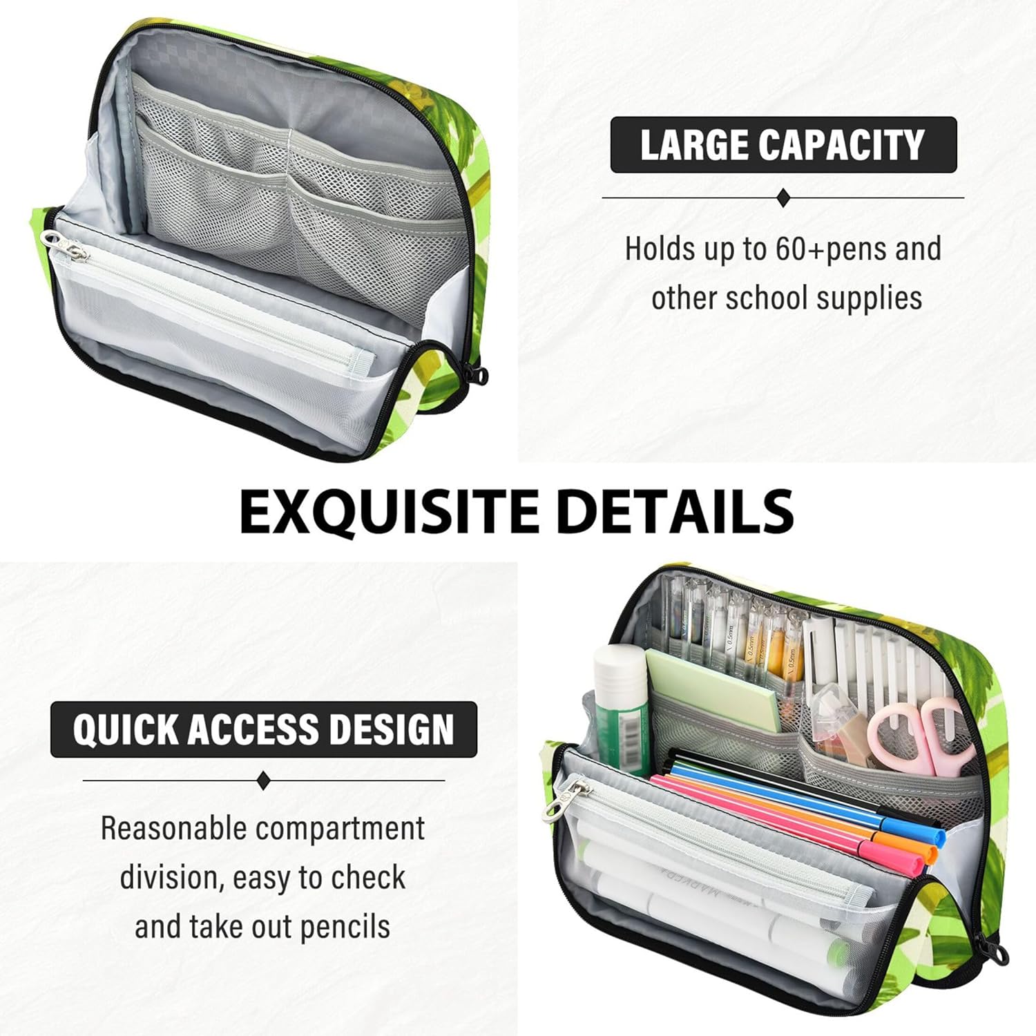Pratico design autoportante: l'astuccio si trasforma facilmente da una custodia con cerniera a un contenitore verticale da scrivania, aiutandoti a individuare rapidamente penne, strumenti o accessori a colpo d'occhio Resistente all'usura e lavabile: il materiale scolastico per ragazze è realizzato in nylon di poliestere di alta qualità che resiste a graffi e macchie, offrendo un facile lavaggio a mano per una freschezza a lungo termine Design versatile con scomparti: l'organizer per matite colorate ti aiuta a rimanere organizzato con un interno spazioso con aree distinte per tutti i tuoi articoli di cancelleria, strumenti o cosmetici Non solo per articoli di cancelleria: il simpatico astuccio è pronto per contenere materiale scolastico, oggetti essenziali da viaggio o prodotti di bellezza, adattandosi perfettamente a ogni stile di vita Elegante e personalizzato: il grande astuccio carino si distingue con stampe divertenti e caratteristiche personalizzabili, che lo rendono adatto per regali premurosi in ogni occasione