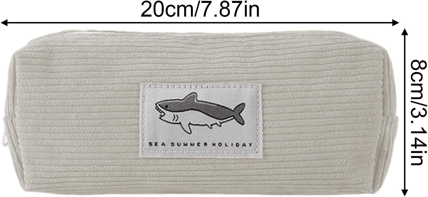 Attraente astuccio : l'astuccio per squalo adotta un design unico e adorabile con un simpatico motivo di squalo che sicuramente attira l'attenzione. Questa custodia sapientemente realizzata con pregevole fattura è perfetta per ragazze e Design affidabile: questo astuccio per squali, realizzato in velluto a coste e tela, può essere lavato e asciugato rapidamente, quindi non si danneggia o si deforma facilmente Grande capacità: tieni tutti gli articoli di cancelleria essenziali in un luogo organizzato con questo astuccio per squali. Con la sua grande capacità, può contenere facilmente penne, matite, pennarelli, gomme e matite colorate, risparmiando tempo durante la ricerca di cassetti affollati Comodo da trasportare: porta con te il divertente astuccio Shark ovunque tu vada. Il suo design leggero e le sue dimensioni compatte si adattano facilmente a piccoli spazi e sono quindi ideali per le attività all'aria aperta Ampiamente usato: tieni le tue penne, matite e altri articoli di cancelleria ben organizzati con questo versatile astuccio per squali, adatto per studenti, lavoratori scolastici e chiunque ami viaggiare. Inoltre, è perfetto per organizzare il tuo lavoro