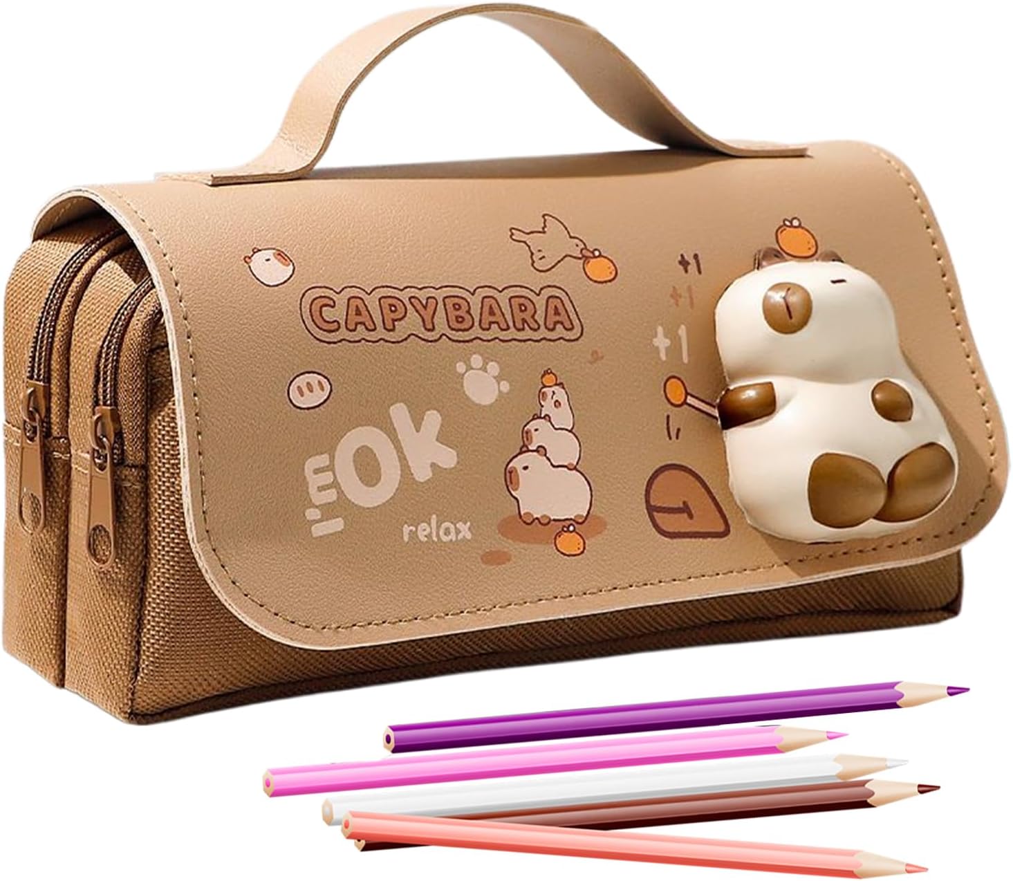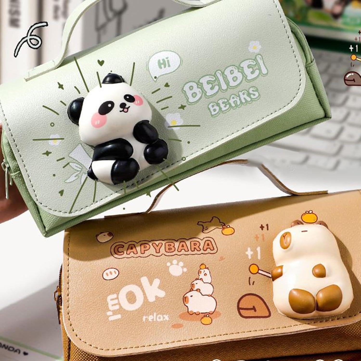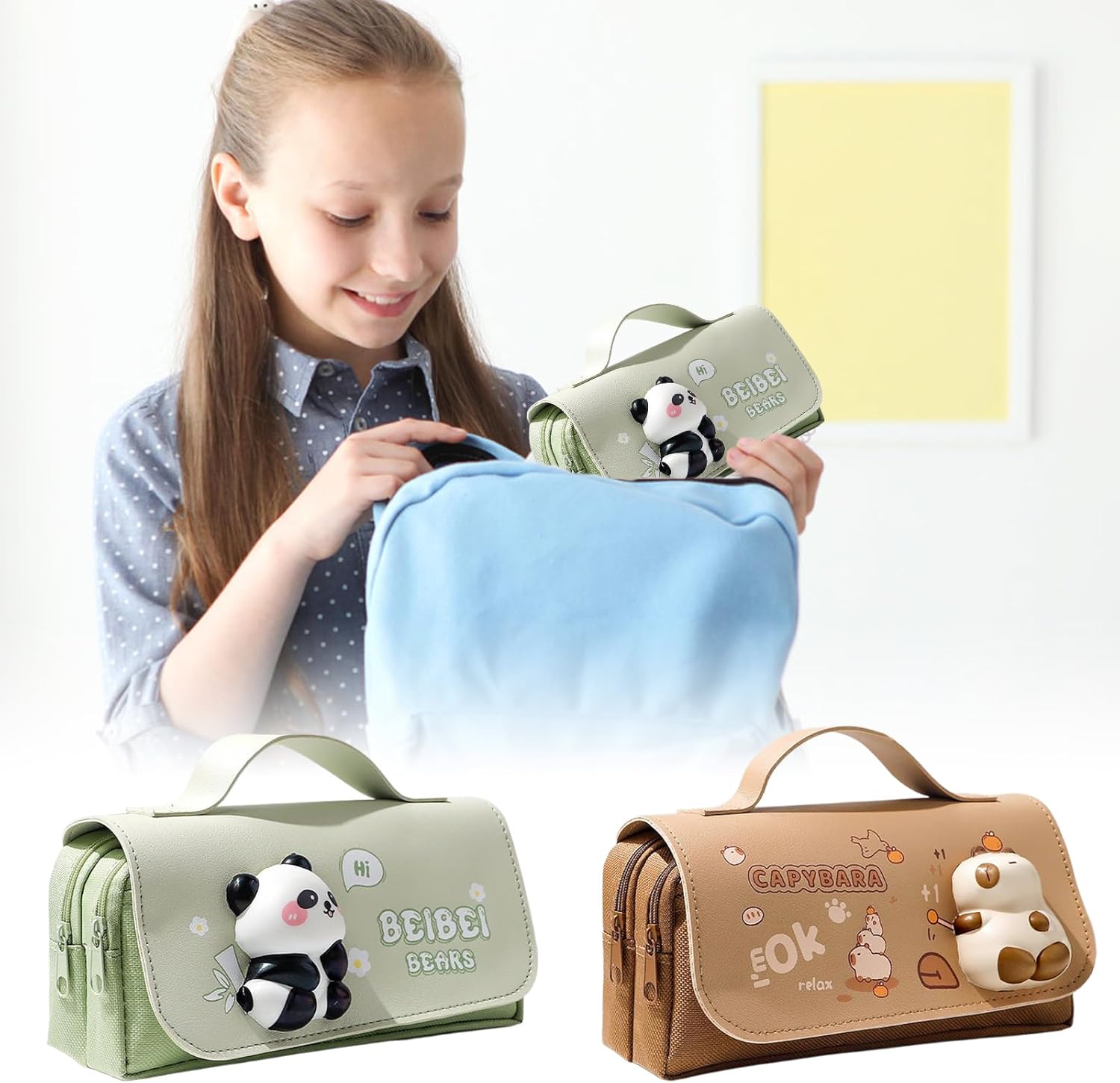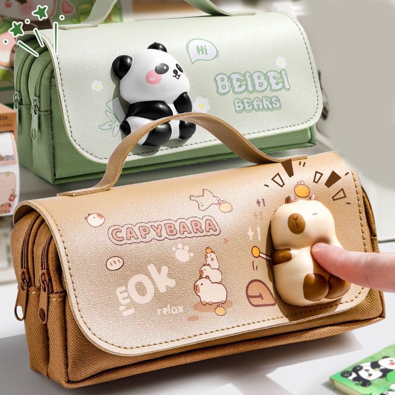 Strumento di sollievo dallo stress: aiuta nella gestione emotiva quotidiana offrendo un modo pratico per alleviare lo stress attraverso la spremitura, rendendolo un compagno efficace per intense attività mentali come lo studio o il lavoro Struttura portatile e robusta: progettato con una cerniera affidabile e un materiale Oxford flessibile, questo astuccio portatile offre un accesso senza soluzione di continuità ai tuoi oggetti indispensabili garantendo al contempo una lunga durata per prestazioni quotidiane costanti Sistema di accesso semplificato: dotata di tre ampi scomparti, questa custodia garantisce una conservazione classificata per evitare ingombri, migliorare l'organizzazione e consentire un rapido accesso ai tuoi strumenti di scrittura Diverse capacità di archiviazione: si adatta a varie esigenze di archiviazione come un astuccio o un organizer, adatto per classe, posto di lavoro, viaggi e trasportare cosmetici o oggetti personali Design carino: dotato di un adorabile design capibara panda, questo astuccio accende l'interesse per l'uso e aggiunge un tocco di fascino per lo studio o le sessioni di lavoro. È un'idea regalo ideale per le vacanze che delizierà familiari e amici.