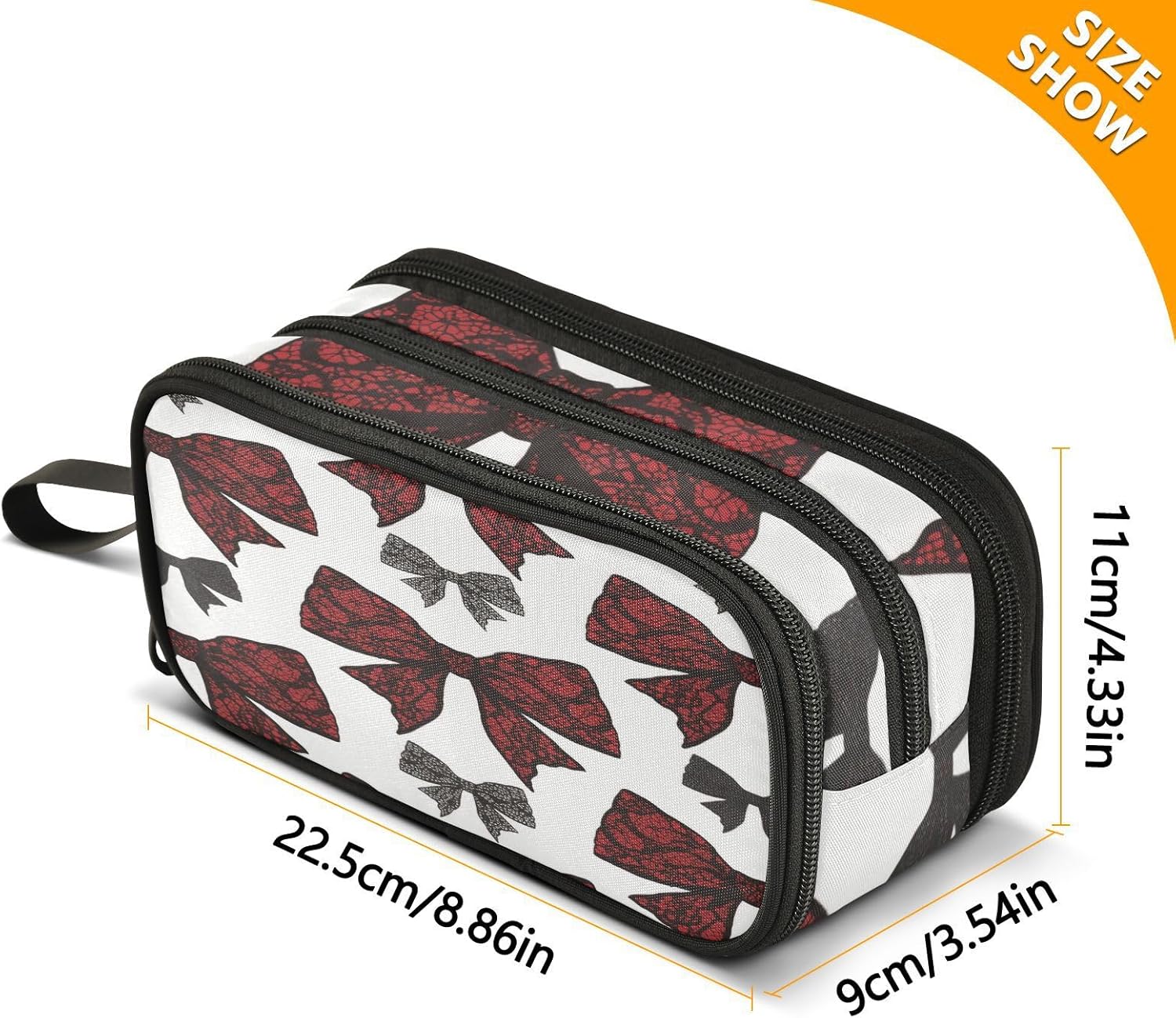 Dimensioni: 22,5 x 9 x 11 cm. L'astuccio con cerniera è completamente stampato. Ha tre strati e la borsa a catena offre ampio spazio di archiviazione, che può separare e organizzare i tuoi vari oggetti e può contenere quasi tutto ciò di cui gli studenti richiedono. Materiale in nylon: questo astuccio College è realizzato con nylon di qualità, robusto e di lunga durata. Possiede una buona resistenza all'usura. Sia per l'uso quotidiano che per essere trasportato, può sopportare varie sfide e accompagnarti per un lungo periodo. Multiuso: oltre ad essere un astuccio per ragazze, può anche essere utilizzato per riporre piccoli strumenti, ecc. È un aiuto multiuso nella tua vita. Che tu sia uno studente, un impiegato o un artista, puoi trarne profitto. Design: il processo di produzione è meticoloso, con punti saldi e una cerniera liscia che è facile da tirare. Nel frattempo, il design semplice e alla moda dell'astuccio con manico, insieme a una varietà di scelte di colore, soddisfa le tue esigenze individuali e ti consente di mostrare un gusto unico nello studio o nel lavoro. Istruzioni di lavaggio: nella normale pulizia dell'astuccio con cerniera, è sufficiente pulirlo con un panno umido per rimuovere le macchie sulla superficie. Lavabile a mano. Non è lavabile in lavatrice e non ha candeggina.