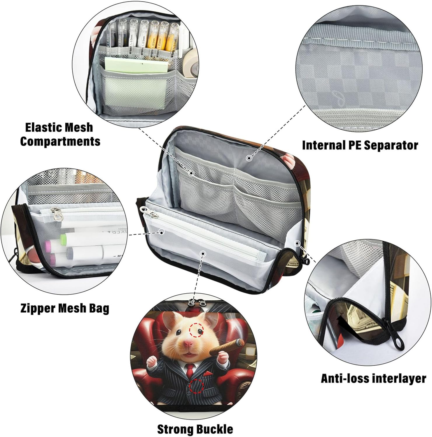 Modalità di supporto da scrivania: trasforma l'astuccio in un supporto compatto con una sola piega, risparmiando spazio e offrendo un facile accesso a tutti gli oggetti conservati durante l'uso Struttura in tessuto resistente: realizzato in nylon resistente, le borse riutilizzabili per matite resistono ai graffi, respingono lo sporco e mantengono il suo aspetto elegante attraverso l'uso quotidiano e la manipolazione frequente Interno pulito e spazioso: progettato per comodità, l'astuccio con cerniera separa i tuoi oggetti utilizzando una sezione principale, una tasca a rete con cerniera e una tasca aperta per un rapido recupero degli oggetti Non solo per cancelleria: l'astuccio è pronto per contenere materiale scolastico, oggetti essenziali da viaggio o prodotti di bellezza, adattandosi perfettamente a ogni stile di vita Opzione regalo personalizzata: disponibile in stampe vivaci con testo personalizzabile o design fotografico, tasche con cerniera per organizzare un regalo unico per bambini, artisti o viaggiatori