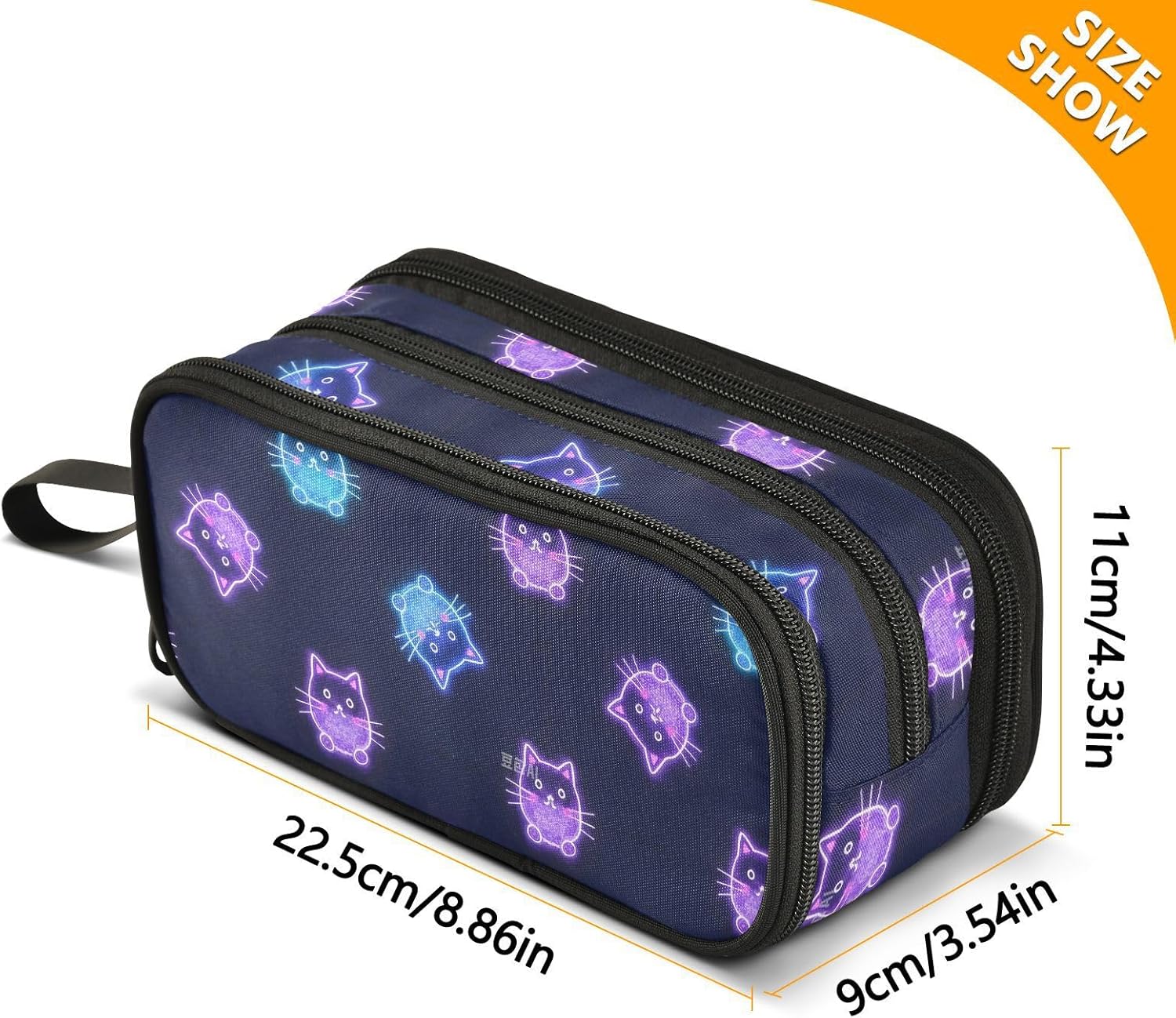 Dimensioni: 22,5 x 9 x 11 cm. Astuccio portapenne completamente stampato. Ha tre strati e la borsa a catena offre ampio spazio di archiviazione, che può separare e organizzare i tuoi vari oggetti e può contenere quasi tutto ciò di cui gli studenti richiedono. Materiale: questo astuccio con cerniera è realizzato in nylon di qualità, resistente e duraturo. Dimostra una buona resistenza all'usura. Sia per l'uso quotidiano che per essere portato in giro, può far fronte a varie sfide e tenerti compagnia a lungo. Multiuso: oltre ad essere un astuccio organizer, può anche essere utilizzato per riporre piccoli strumenti, ecc. È un aiuto multiuso nella tua vita. Che tu sia uno studente, un impiegato o un artista, puoi trarne profitto. Design alla moda: la procedura di produzione è elaborata, con punti solidi e una cerniera liscia che è facile da disegnare. Allo stesso tempo, il design semplice e alla moda degli astucci scolastici, insieme a una varietà di opzioni di colore, soddisfa le tue esigenze personali e ti consente di mostrare un gusto distinto nello studio o nel lavoro. Suggerimento per la pulizia: quando si pulisce l'astuccio grande per ragazze in modo normale, basta pulirlo con un panno umido per eliminare le macchie sulla superficie. Lavabile a mano. Non può essere lavato in lavatrice e non include candeggina.