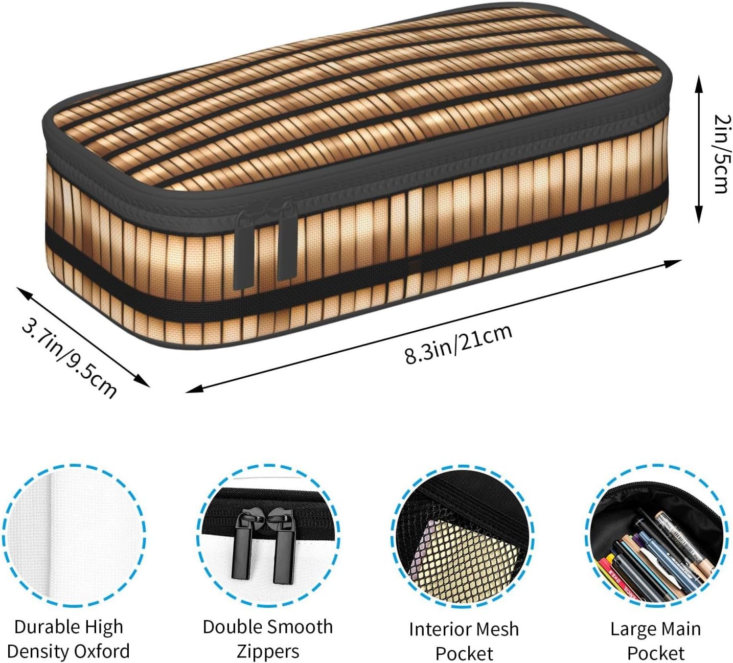 Grande capacità: questo astuccio in vimini intrecciato misura 21 cm x 9,5 cm x 5 cm, questo astuccio può contenere praticamente tutto ciò di cui uno studente ha bisogno. Grande capacità di archiviazione matite e altri piccoli oggetti. Materiale: il nostro astuccio di grande capacità è realizzato in poliestere. Ottima fattura e fornisce un astuccio a prova di polvere, non facile da danneggiare. Ben realizzato. Non solo ha un bell'aspetto. Garantisce che la cancelleria rimanga protetta e duri più a lungo. Multifunzione: l'astuccio in vimini intrecciato con stampa non è solo un astuccio, ma può anche essere utilizzato come borsa per cosmetici, astuccio per articoli scolastici, borsa da viaggio, astuccio per cancelleria, borsa per riporre oggetti, borsa per il trucco, portapenne e borsa da toeletta. Un multiuso, ottimo rapporto qualità-prezzo, è un must per viaggi, scuola, ufficio, università, casa, lavoro, studio, stoccaggio, soddisfa le reali esigenze di diversi gruppi di persone. Compatto e leggero: il suo design elegante si adatta facilmente a qualsiasi zaino o borsa, ideale per l'ufficio o i viaggi. La cerniera ad anello aggiunge un tocco di comodità. Che tu stia andando a lezione, al lavoro o semplicemente vuoi tenere la scrivania in ordine, questo astuccio è la soluzione perfetta. Miglior servizio: la vostra soddisfazione è la nostra priorità numero uno qui! Se avete domande su questo astuccio o incontrate problemi, Pls non esitate a contattarci e saremo felici di aiutarvi.