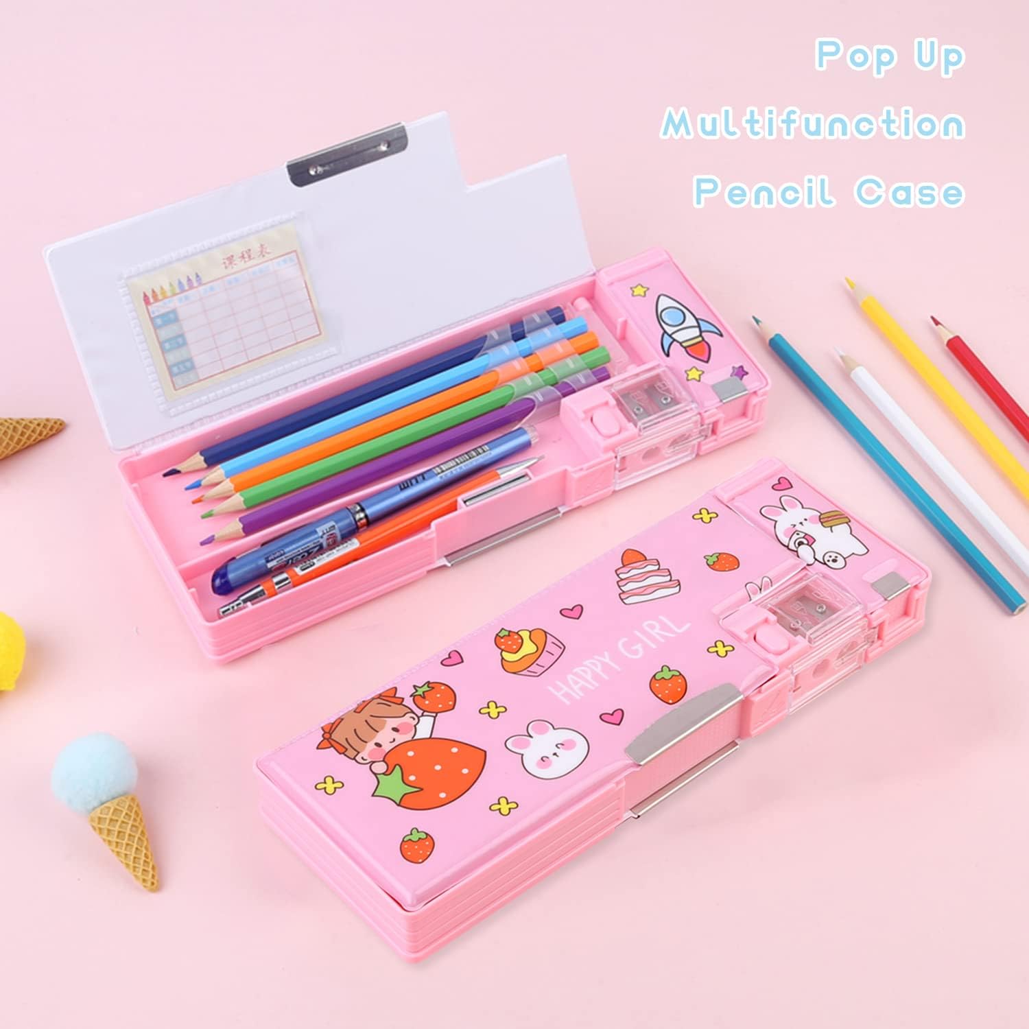 ♥【Dotato di funzionalità】Il nostro astuccio interattivo è dotato di portamatite, doppio temperino, piccoli scomparti, programma. ♥【Costruzione solida】Il nostro astuccio è realizzato in plastica di alta qualità, portatile, duro, resistente alle cadute, non tossico e innocuo. Questa grande cancelleria organizer è estremamente resistente e fatta per i bambini per aprire e chiudere e fare clic sui pulsanti a loro piacimento. ♥【Design unico】 Il nostro speciale astuccio è disponibile in 4 fantastici design unici. Colori freschi e materiali scintillanti possono entusiasmare i tuoi bambini per la cancelleria. ♥【Dimensioni】 La forma rettangolare misura 24,4 x 8,9 x 3,6 cm per adattarsi facilmente agli zaini. ♥【Regalo perfetto】Il miglior regalo per i bambini, non opaco in ogni occasione.