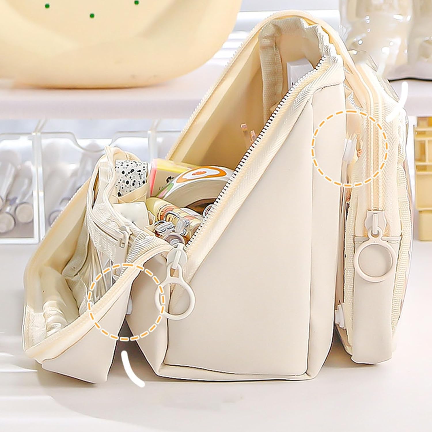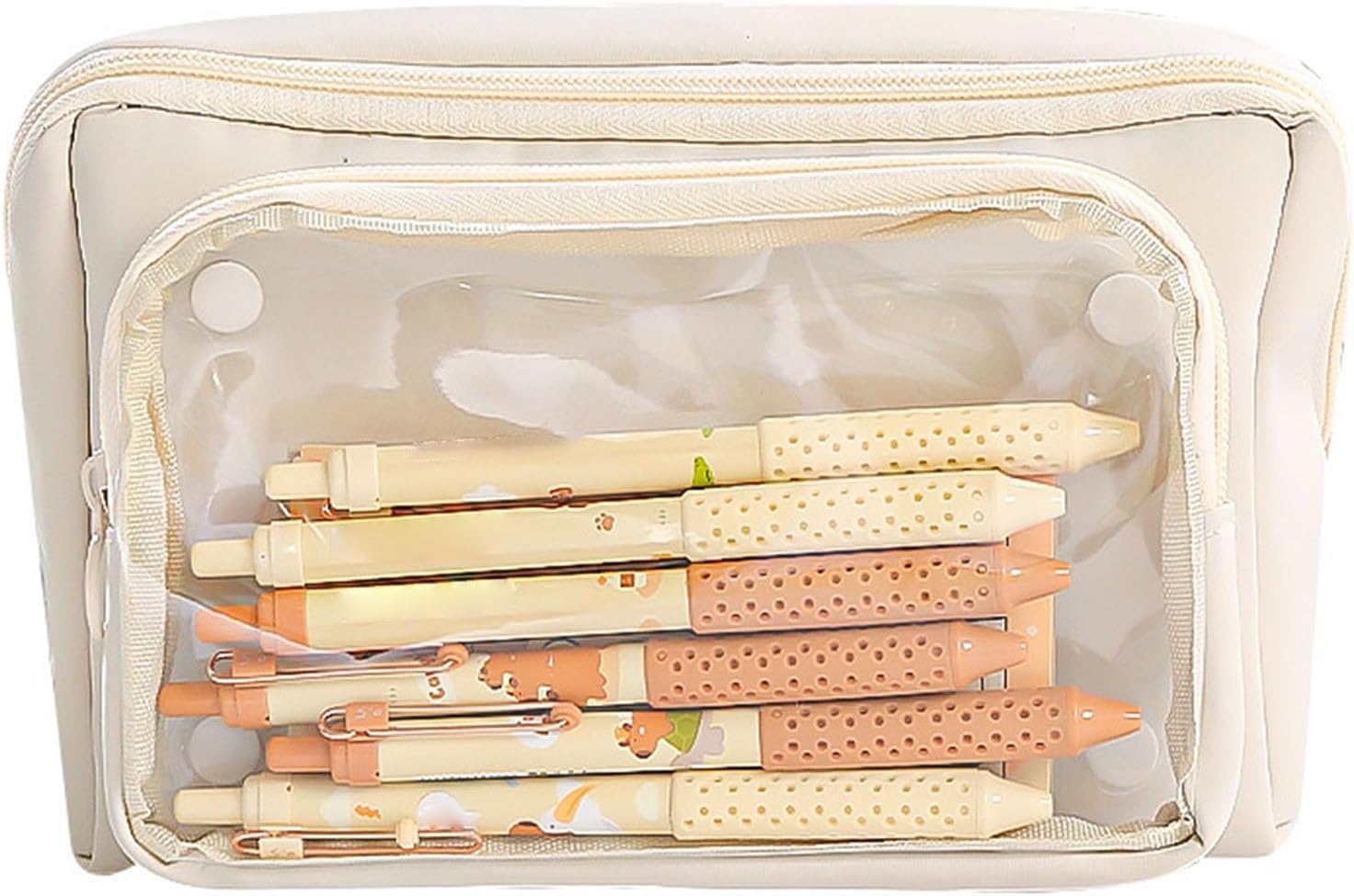 Adatto per studenti, insegnanti, impiegati, adulti e amanti dello scrapbooking, questo astuccio di grande capacità può contenere facilmente fino a 100 penne, matite, pennarelli, evidenziatori e altri piccoli oggetti, che soddisfa le esigenze organizzative Scopri la miscela di estetica e funzionalità con l'astuccio ad alta capacità, con design multistrato e staccabile in PVC trasparente per una facile organizzazione e un rapido accesso al tuo oggetto di scrittura Ampiamente usato per ufficio, scuola, schizzi all'aperto, pittura in viaggio o studio a casa, questo astuccio mantiene il tuo strumento di scrittura e materiale di disegno artistico ordinatamente conservati e facilmente accessibili Grazie ai suoi 9 scomparti e al design multifunzione, questo astuccio ad alta capacità è perfetto anche come trousse da viaggio, custodia portatile per trucchi Realizzato in poliestere e PVC, leggero e resistente all'usura e portatile, questo astuccio vanta una capacità spaziosa senza occupare molto spazio, grazie alla sua struttura multistrato e al manico portatile