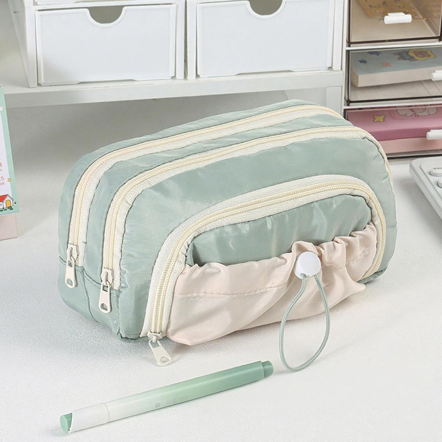 Facile accesso: il sistema di chiusura a filo creativo garantisce un facile utilizzo, una conservazione sicura e una protezione efficace contro la perdita e lo scivolamento Effetto colore fresco: le sfumature di colore vivaci conferiscono all'astuccio un aspetto curato per l'uso quotidiano a scuola o in ufficio. Protezione affidabile: i materiali di alta qualità e l'efficace protezione dall'acqua assicurano una qualità duratura di questo astuccio per un uso affidabile in diverse situazioni. Molteplici applicazioni: ideale per designer, studenti e insegnanti come pratico astuccio per organizzare penne, accessori e oggetti essenziali per il lavoro, le lezioni o lo studio con contenuti facilmente accessibili e una soluzione di archiviazione affidabile Spazio per gli utensili: ampia capacità grazie alla suddivisione a scomparti multistrato. Ideale per gestire ordinatamente gli articoli da ufficio quotidiani.