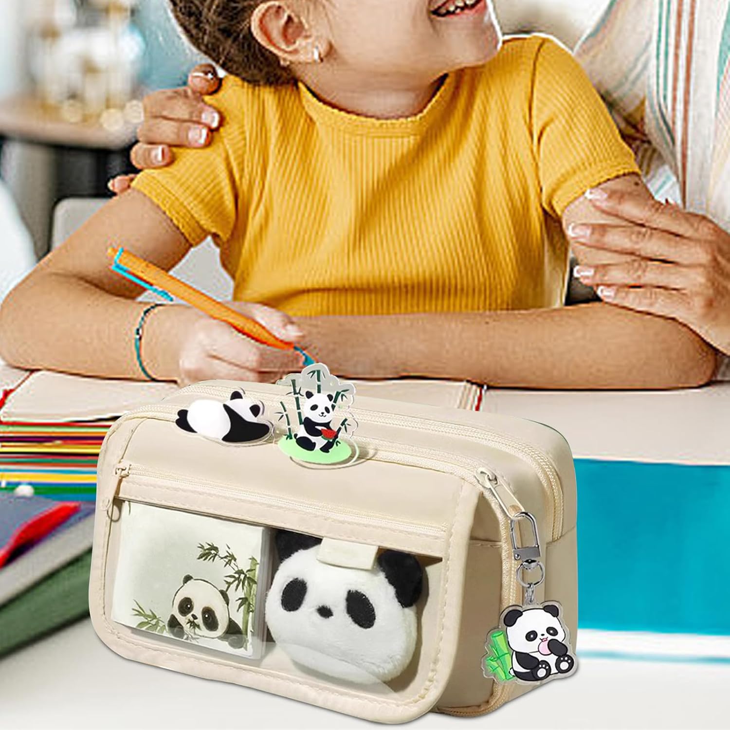 Borsa ispirata a Panda: fai sorridere il tuo viso con questo simpatico astuccio con design panda. Aggiungi un tocco di divertimento alla tua cancelleria con un motivo giocoso perfetto per studenti e amanti del panda. Esperienza di chiusura lampo fluida: dotato di una cerniera liscia di alta qualità, questo astuccio ti permette di aprirlo e chiuderlo facilmente ed evita che si impigliino o si rompa grazie al suo design solido e fantastico con cerniera. Mantieni in ordine: tieni tutti i tuoi strumenti di scrittura nel nostro simpatico astuccio che offre molto spazio per organizzare. Può contenere penne, matite, pennarelli, gomme e persino un piccolo taccuino. Garantisce un facile accesso ai tuoi strumenti di scrittura e mantiene il tuo lavoro ben organizzato. Sorpresa multiuso: questo simpatico astuccio non è solo adatto per articoli di cancelleria, ma ha anche un design versatile che lo rende un'ottima scelta come borsa per il trucco, borsa per il fai da te o borsa da viaggio. Poiché soddisfa tutte le tue esigenze di archiviazione, è perfetto per studenti e viaggiatori che necessitano di funzionalità multiuso. Ottimo materiale: realizzato con materiali di alta qualità e una struttura robusta, questo astuccio è perfetto per un uso a lungo termine ed è un ottimo compagno per qualsiasi progetto creativo.