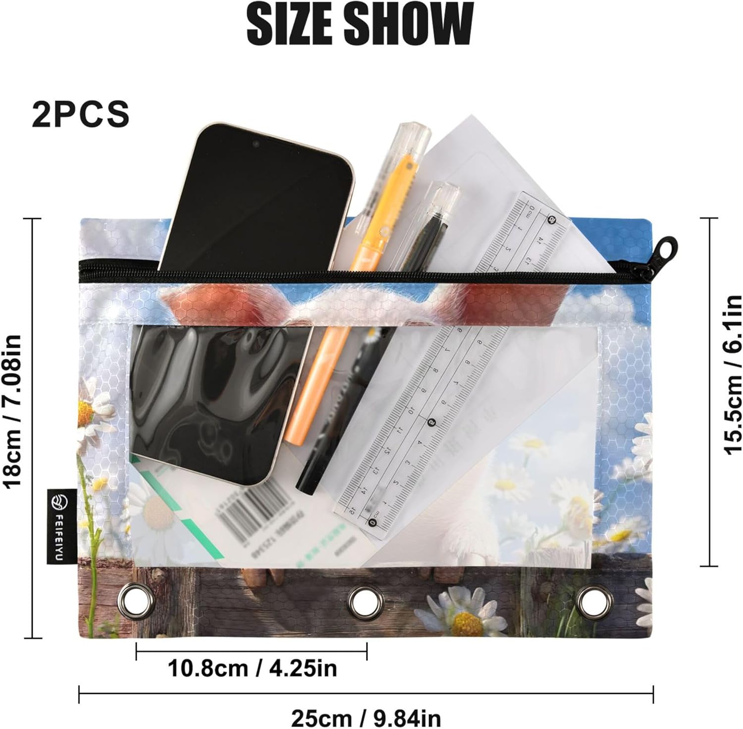 Materiale di lunga durata: realizzato in 100% poliestere luminoso con una struttura unica a griglia da calcio, l'estetica trasparente con cerniera offre resilienza e resistenza all'acqua per mantenere le tue forniture al sicuro. Design spazioso: 25 x 18 x 0,5 cm con un'area funzionale di 15,5 x 25 cm, i sacchetti con cerniera offrono ampio spazio per penne, matite e altri oggetti essenziali. Ideale per l'organizzazione: compatibile con raccoglitori a 3 anelli grazie alla sua distanza tra i fori di 10,8 cm, le maniche in plastica per matite floreali animali per raccoglitori sono un ottimo organizer per studenti e professionisti. Facile visualizzazione: la sezione frontale trasparente del raccoglitore per matite consente una facile visibilità e accesso ai tuoi oggetti, rendendolo un comodo strumento per organizzazione ed efficienza. Stampe accattivanti: Distinguiti con l'astuccio con maniche floreali per raccoglitore, caratterizzato da un vivace mix di simpatici animali, fiori vivaci e disegni festivi, ideali per personalizzare il tuo spazio.