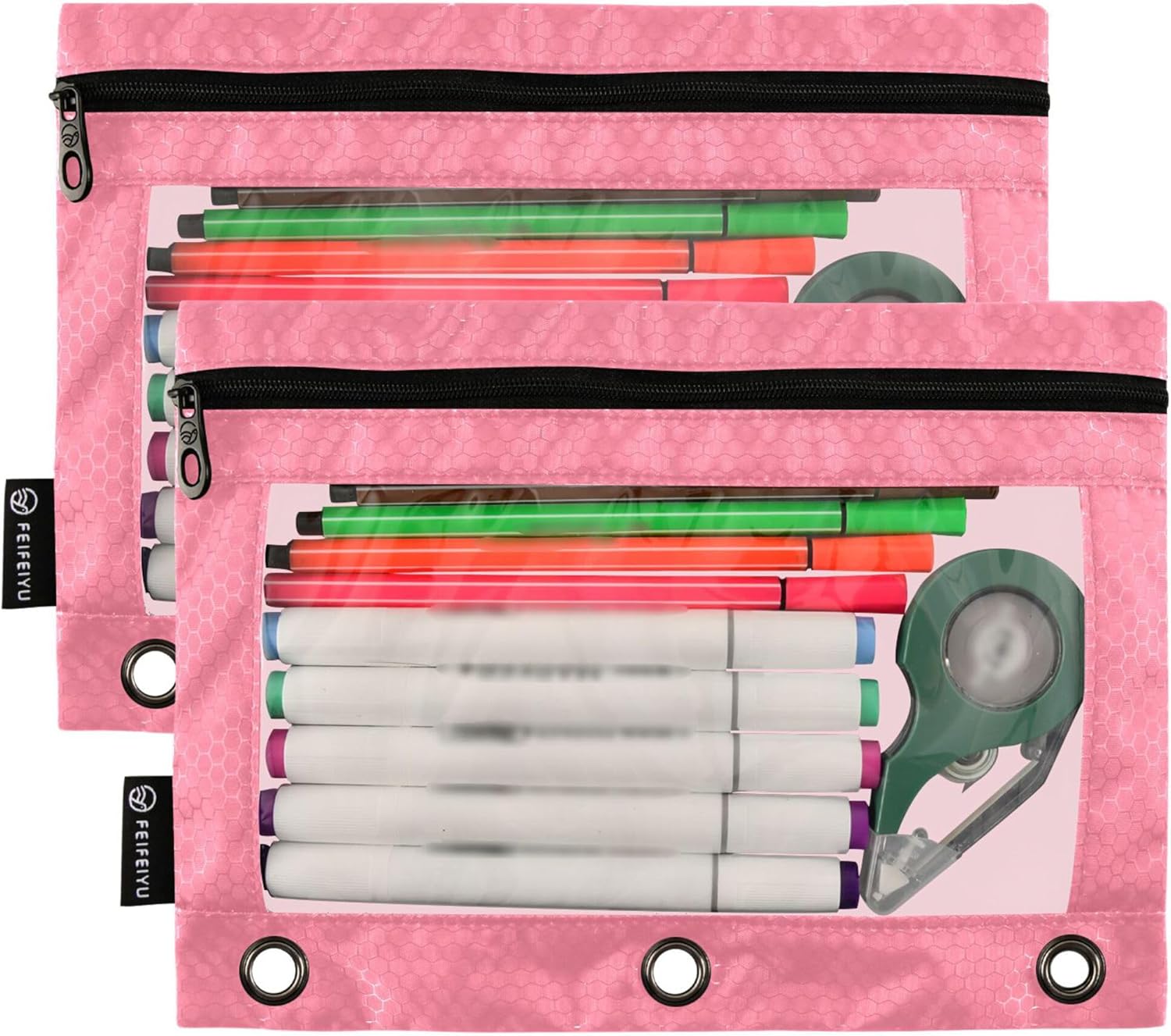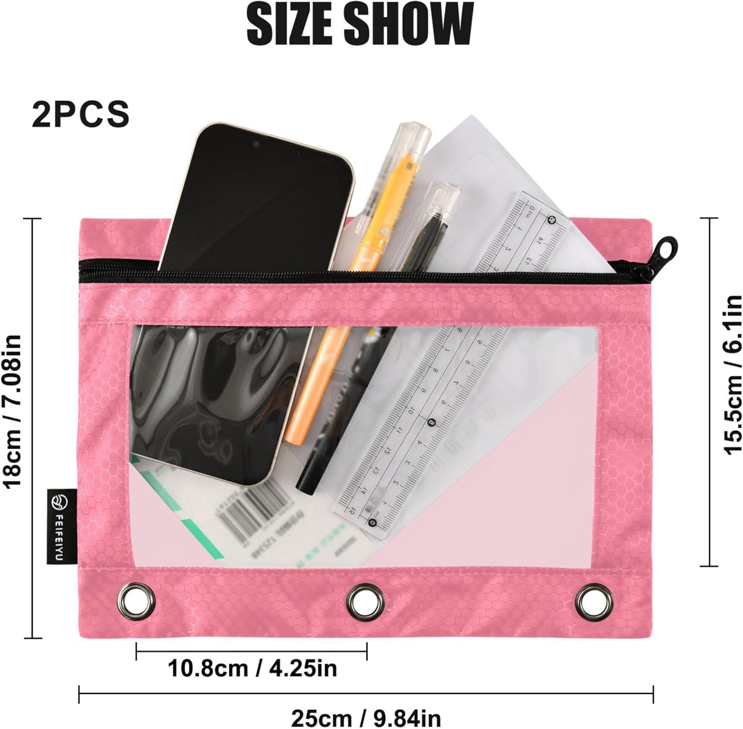 Robusto e impermeabile: realizzato in tessuto lucido 100% poliestere, le graziose tasche per raccoglitori artistici sono progettate per proteggere i tuoi strumenti da scrittura contro fuoriuscite e usura. Design spazioso: 25 x 18 x 0,5 cm con un'area funzionale di 15,5 x 25 cm, il raccoglitore artistico offre ampio spazio per penne, matite e altri oggetti essenziali. Ideale per raccoglitori: progettato per integrarsi perfettamente in raccoglitori standard a 3 anelli, astuccio per raccoglitori con distanza tra i fori di 10,8 cm è ideale per studenti e professionisti. Trasparente e accessibile: con parte anteriore in PVC trasparente, l'astuccio con raccoglitore arcobaleno consente di identificare e recuperare rapidamente i tuoi articoli di cancelleria, risparmiando tempo e problemi. Unico e colorato: illumina la tua giornata con un astuccio rosa per raccoglitore, decorato con deliziose stampe floreali e animali, adatto per migliorare l'estetica del tuo spazio di lavoro.