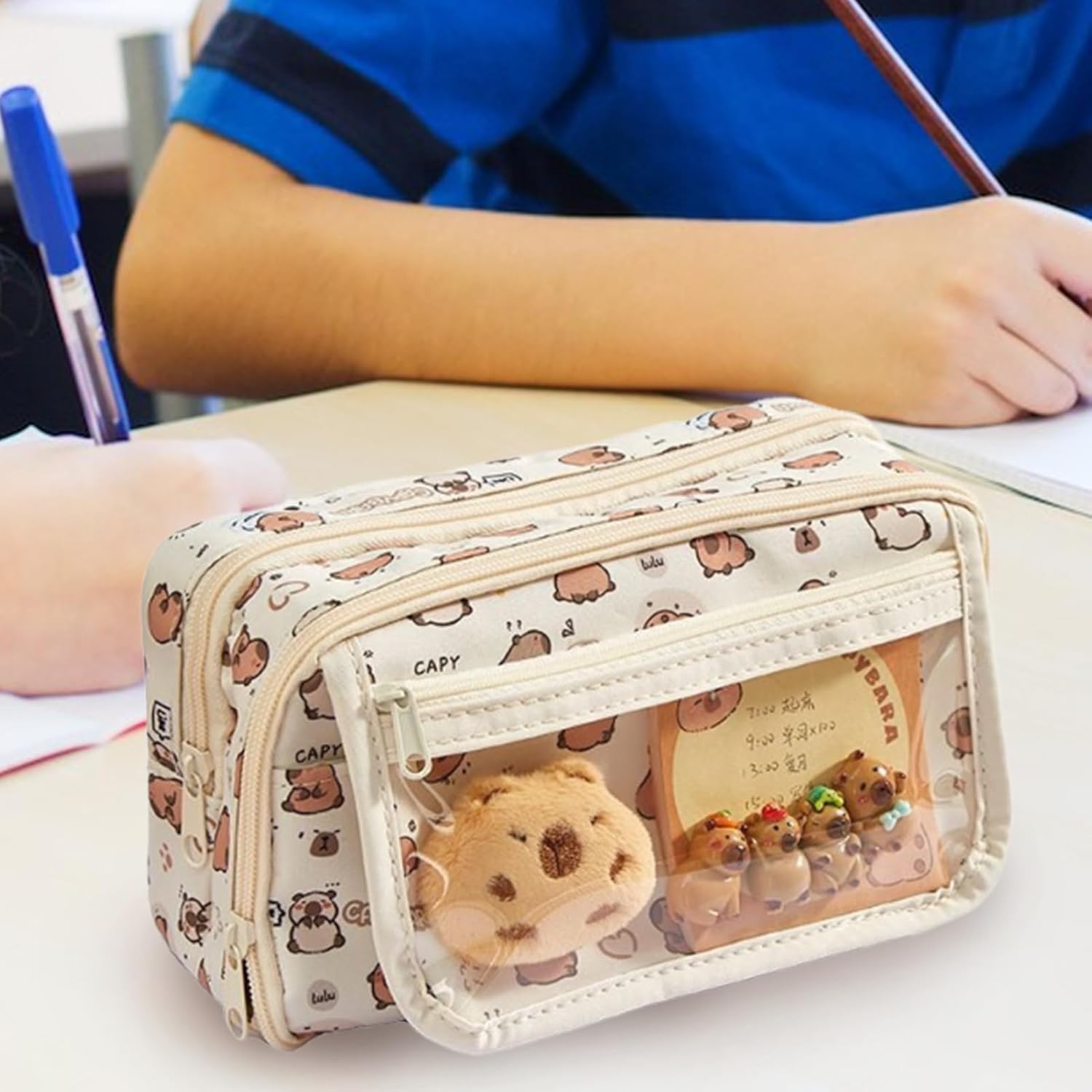 Capybara Charm, astuccio a tema Capybara estetico: caratterizzato da simpatici motivi a cartoni animati e design squisito, questo astuccio a tema capibara offre una corrispondenza dei colori ben curata, perfetto per organizzare con stile Esperienza efficienza senza pari: la borsa portamatite Capybara Dite addio ai cassetti della scrivania disordinati con il nostro astuccio Capybara. Il nostro sistema di archiviazione di grande capacità ospita oltre 100 penne o piccoli oggetti in un layout interno scientifico senza preoccupazioni con 9 strati di spazio di classificazione. Qualità senza compromessi: l'astuccio Capybara Animal mantieni le tue matite e penne al sicuro con questo astuccio Capybara in tessuto di alta qualità. Goditi una conservazione senza preoccupazioni con le sue cerniere lisce e robuste, resistente all'usura e facile da pulire e mantenere per una lunga durata Scopo generale: divertente astuccio Capybara Design astuccio di cancelleria Capybara Il nostro astuccio Capybara non è solo per cancelleria. Può essere utilizzato anche come borsa per il trucco, portafoglio da viaggio e molto altro ancora, rendendolo un pratico aiuto in vari scenari Ottima selezione regalo: l'astuccio Capybara è un regalo premuroso e premuroso, perfetto per viaggi di lavoro e attività all'aperto. La sua versatilità e facilità di trasporto trasmettono amore e benedizioni offrendo allo stesso tempo una cura speciale e una meravigliosa sorpresa per i destinatari