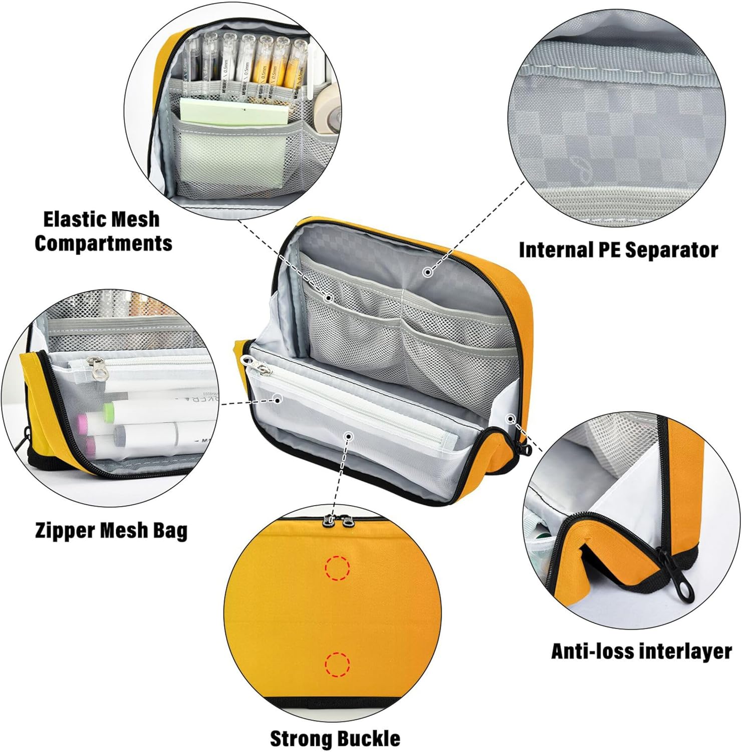 Design intelligente della struttura: l'astuccio colorato si trasforma in un supporto con chiusura magnetica quando piegato, offrendo una visione chiara e un facile accesso alle tue forniture Resistente all'usura e lavabile: l'astuccio per ragazze è dotato di nylon di poliestere di alta qualità che resiste a graffi e macchie, offrendo un facile lavaggio a mano per una freschezza a lungo termine Soluzione di archiviazione efficiente: l'astuccio preppy viene fornito con una grande sezione centrale e tasche extra, che lo rendono facile da riporre e individuare piccoli articoli per la scuola o l'ufficio Il tuo compagno multifunzionale: che si tratti di uno zaino, valigia o cassetto della scrivania, l'astuccio da ufficio offre spazio intelligente per attrezzi, spazzole, caricabatterie e molto altro ancora Soluzione regalo personalizzata: aggiungi un nome o una foto all'archiviazione delle matite e fai un regalo unico nel suo genere che unisce praticità e personalità per scuola, viaggi o uso domestico