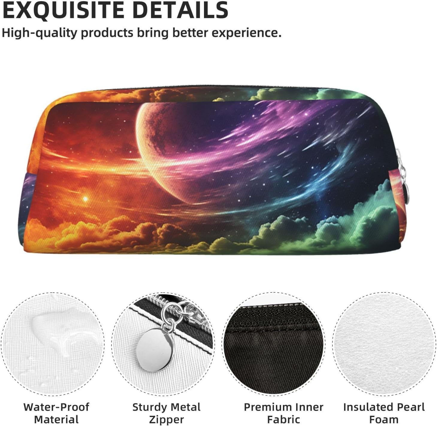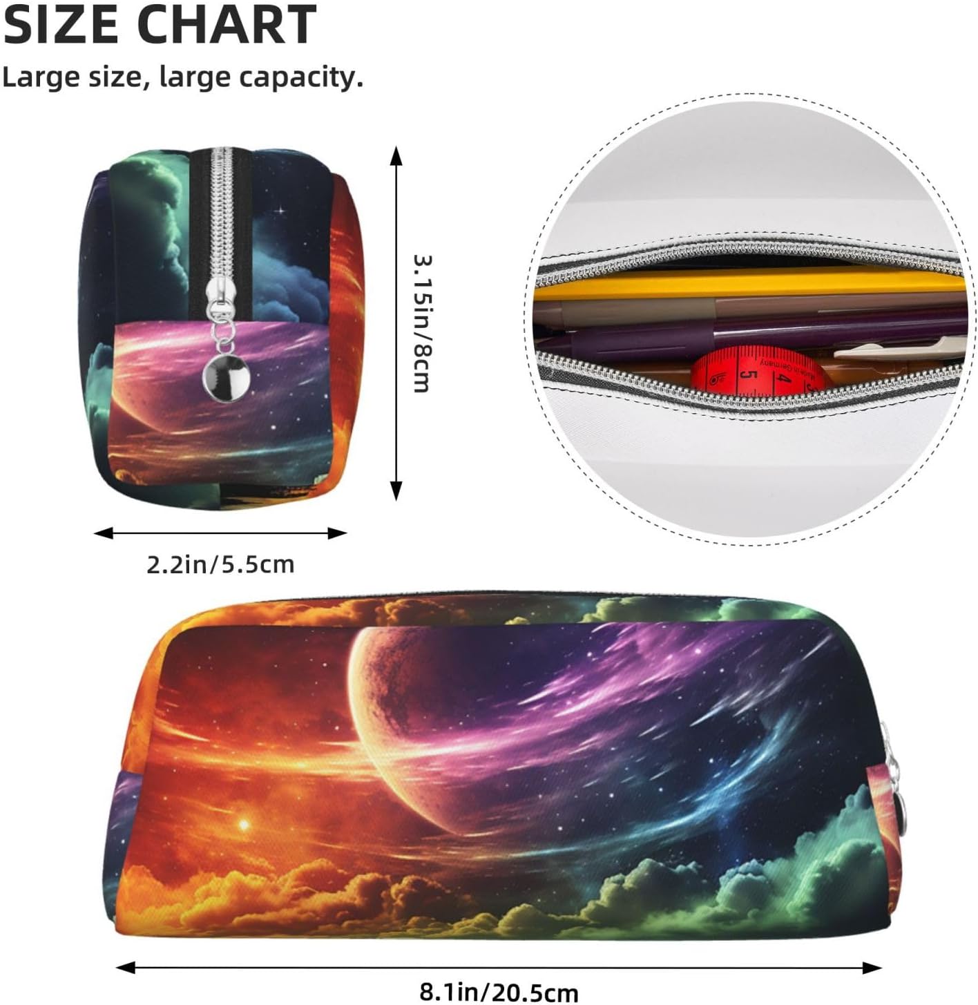 Alta qualità: astuccio in pelle con stampa arcobaleno cielo e luna con cerniera con cerniere in metallo resistenti, più facile da impugnare e controllare. Materiale in pelle resistente all'acqua (Pvc), fornisce una grande protezione contro polvere, strappi, graffi e abrasioni per la custodia delle matite. Conservazione organizzata: grande capacità: borsa per il trucco dimensioni 20,1 x 5,6 x 8 cm, lo spazio interno della tasca principale consente di classificare e conservare vari cosmetici, piccoli accessori, monete e altri oggetti. Che si tratti di lavoro quotidiano, o di viaggio e gioco, può facilmente gestire il compito. Grande 0pening: la parte superiore della piccola borsa da toilette è progettata con una grande apertura, che rende facile visualizzare e raggiungere i tuoi oggetti. Questo portamonete è molto equilibrato e può essere posizionato saldamente sul desktop, non è facile da ribaltare o causare fuoriuscite di oggetti quando li raggiungi, mantenendo la scrivania pulita e ordinata. Multiuso: la trousse è disponibile in una ricca varietà di motivi per soddisfare le esigenze estetiche di persone diverse. Può essere utilizzato come astuccio per penne, cosmetici, prodotti elettronici o piccoli attrezzi. È un ottimo regalo per gli amici, può essere regalato come regalo di compleanno tra gli amici. Brillante in molteplici scenari: il design generale è semplice ma alla moda, con una forma 3D unica e ben realizzata e linee lisce e naturali. Che sia posizionato su un tavolo da ufficio o portato in mano, può diventare un bellissimo punto focale. Non è solo un pratico astuccio, ma anche un accessorio alla moda.