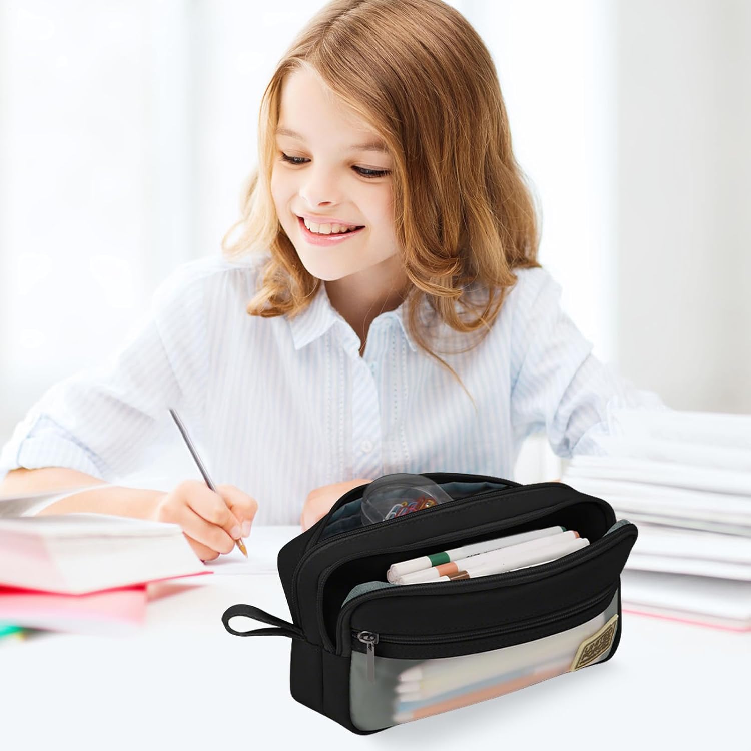 Struttura robusta e resistente agli spruzzi: realizzata in tela ad alta densità, l'esterno a trama fitta offre un'eccellente resistenza all'usura quotidiana, garantendo prestazioni durature con una manutenzione minima Design di accesso ottimizzato: include la funzione di localizzazione rapida degli oggetti, un innovativo design degli scomparti che supporta la corretta classificazione della cancelleria e una pianificazione accurata dello spazio di archiviazione per aumentare l'efficienza Trasparenza incentrata sulla privacy: il pannello frontale semi-opaco migliora la visibilità degli oggetti, bilancia le esigenze di privacy e consente un rapido accesso ai contenuti, promuovendo l'efficienza nelle attività quotidiane senza problemi Design di grande capacità: questo astuccio offre uno spazio interno ottimizzato per organizzare senza problemi penne colorate, righelli e altro ancora, assicurando che molti scenari vengano eseguiti con facilità e comodità Funzionalità salvaspazio: grazie al design del foro di sospensione integrato, l'astuccio può essere appeso comodamente, migliorando l'organizzazione della scrivania nelle scuole o negli studi e combinando una portabilità leggera con un regalo premuroso e attraente