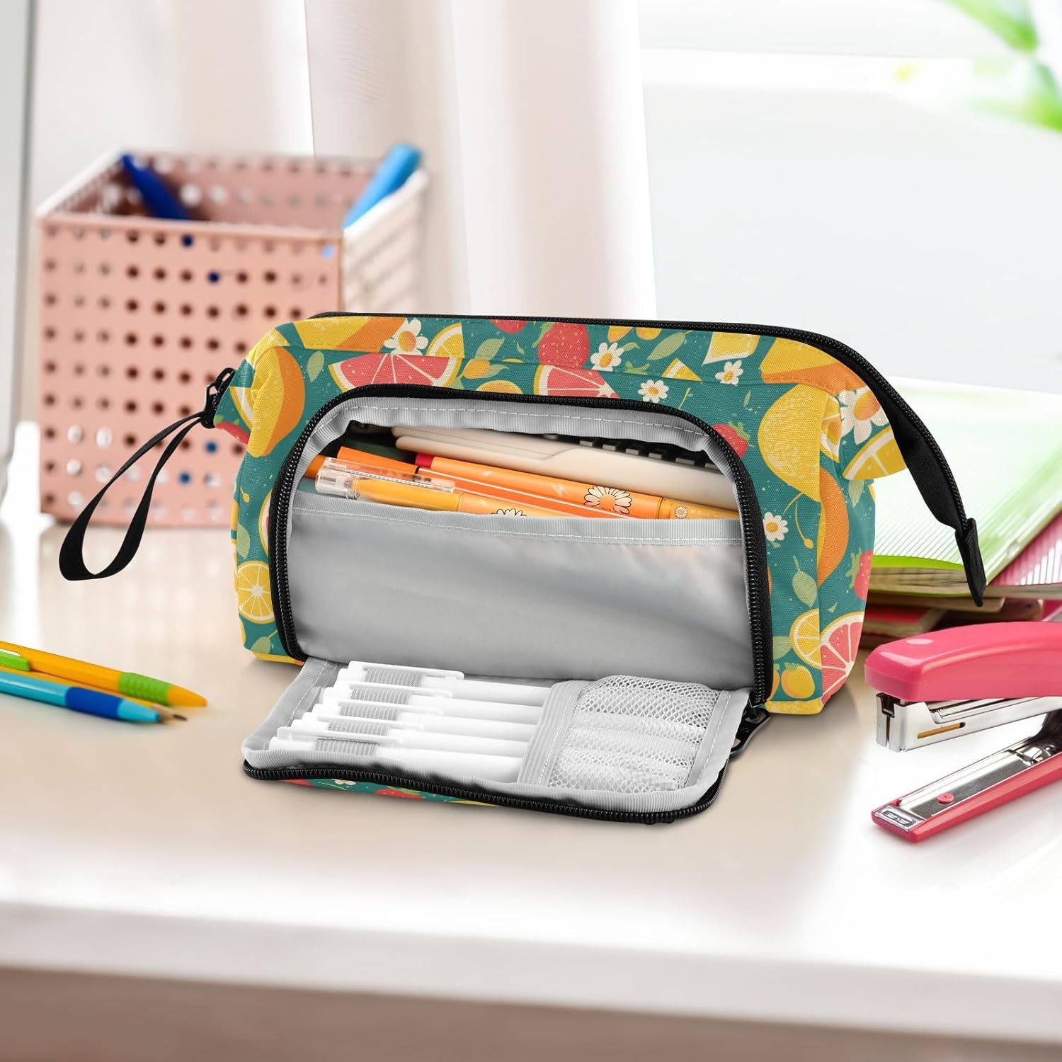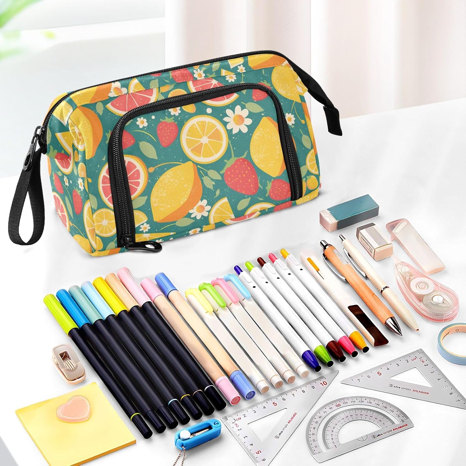 Materiale di alta qualità: realizzati in robusto tessuto di nylon e robusta cerniera in metallo, questi astucci sono di qualità, in grado di resistere all'uso quotidiano, resistenti all'usura, ai graffi e facili da pulire. (Non adatto a bambini di età inferiore ai 3 anni!) Grande capacità: 24 x 9,5 x 15 cm. Dotato di 1 grande scomparto, 1 comoda tasca laterale e 2 tasche interne, Pen Case è davvero un must have di dimensioni generose. La tasca principale può organizzare fino a 40-60 penne, matite o pennarelli, anche gomme, righelli, calcolatrici, nastri, foglietti adesivi, pennelli, cosmetici possono essere riposti facilmente. Con 5 matite schiaffeggiate sulla tasca laterale, le penne spesso utilizzate possono essere fissate. Due tasche interne possono contenere oggetti facilmente persi come carte, chiavi e contanti. Facile da usare e trasportare: l'astuccio per la scuola può aprirsi attraverso la cerniera superiore e la cerniera laterale. Dalla tasca superiore, è possibile accedere facilmente a calcolatrici, regole, pennelli, forbici, strumenti per il trucco e alcuni oggetti più grandi di cui hai bisogno direttamente. Dalla tasca laterale, puoi prendere o mettere penne, matite, pennelli che ti piacciono sugli scomparti per penne. Uso multifunzionale: questo astuccio organizer ha una grande capacità ma leggero da trasportare, adatto per studenti dell'asilo, delle elementari, delle scuole medie, delle scuole superiori e dell'università per organizzare le loro forniture scolastiche. Inoltre, può anche essere applicato a vari scenari, come cosmetici, ufficio, viaggi, palestra, picnic, escursioni, campeggio, pittura e altre attività all'aperto. Istruzioni per la cura: si consiglia di lavare a mano; il lavaggio in lavatrice non è un'opzione. Non includere candeggina durante il lavaggio.