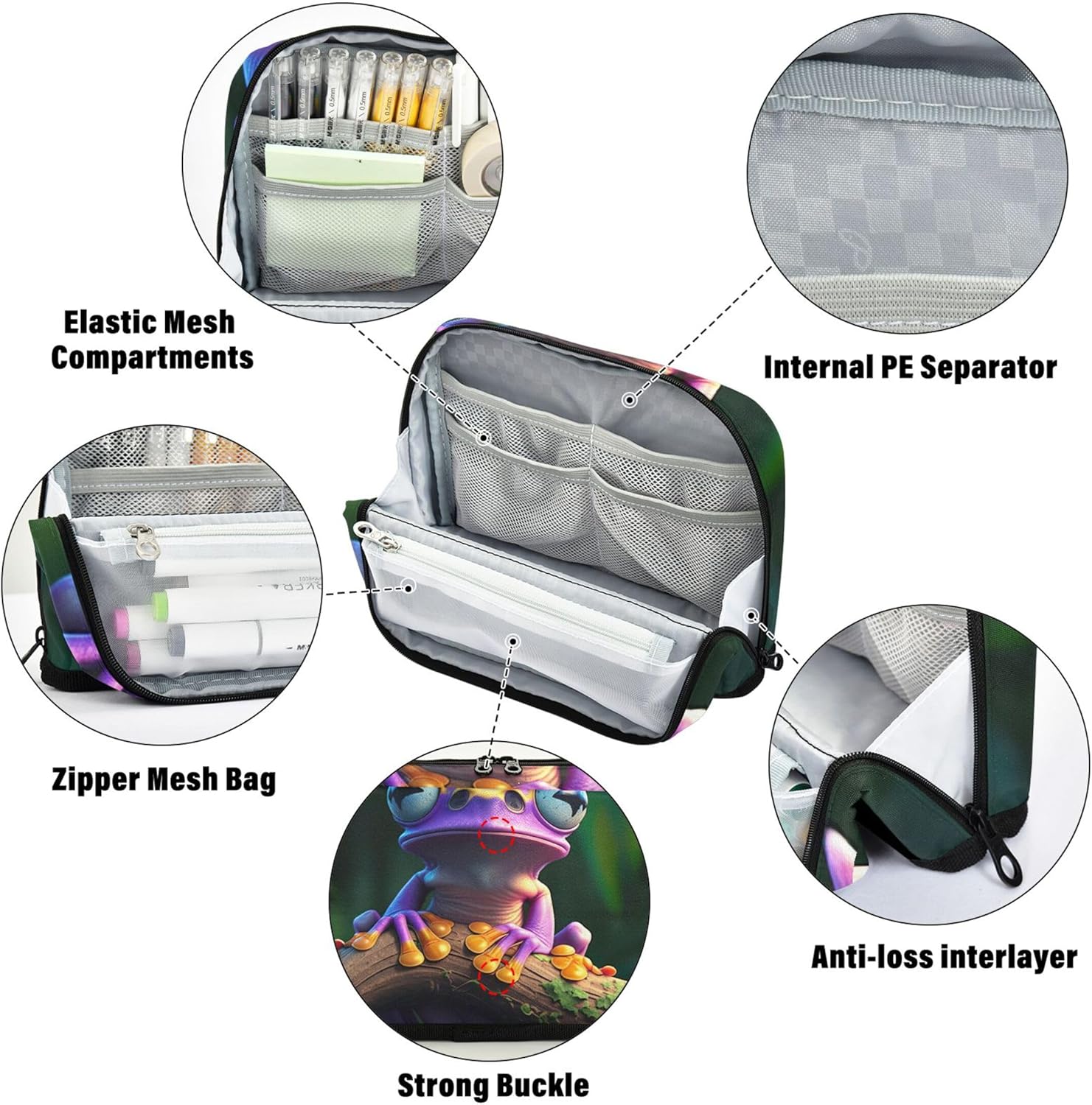 Funzione di supporto convertibile: con un intelligente sistema pieghevole e a scatto, l'astuccio preppy si trova in posizione verticale sulla scrivania, consentendo di organizzare e accedere ai tuoi oggetti senza problemi Costruito per un uso di lunga durata: con cuciture rinforzate e tessuto in nylon resistente, astuccio rosa carino maniglie per l'uso quotidiano con facilità, rimanendo in ottima forma anche con un uso intenso Design versatile con scomparti: l'astuccio estetico ti aiuta a rimanere organizzato con un interno spazioso con aree distinte per tutti i tuoi articoli di cancelleria, strumenti o cosmetici Compagno di archiviazione tutto in uno: l'astuccio per la scuola si adatta facilmente a borse da scuola o borse da viaggio, funge anche da custodia per articoli di scrittura, astuccio per cosmetici o porta gadget Regalo premuroso e utile: con motivi accattivanti e supporto personalizzato, l'astuccio per matite diventa un regalo pratico ma sincero per qualsiasi età o stile di vita