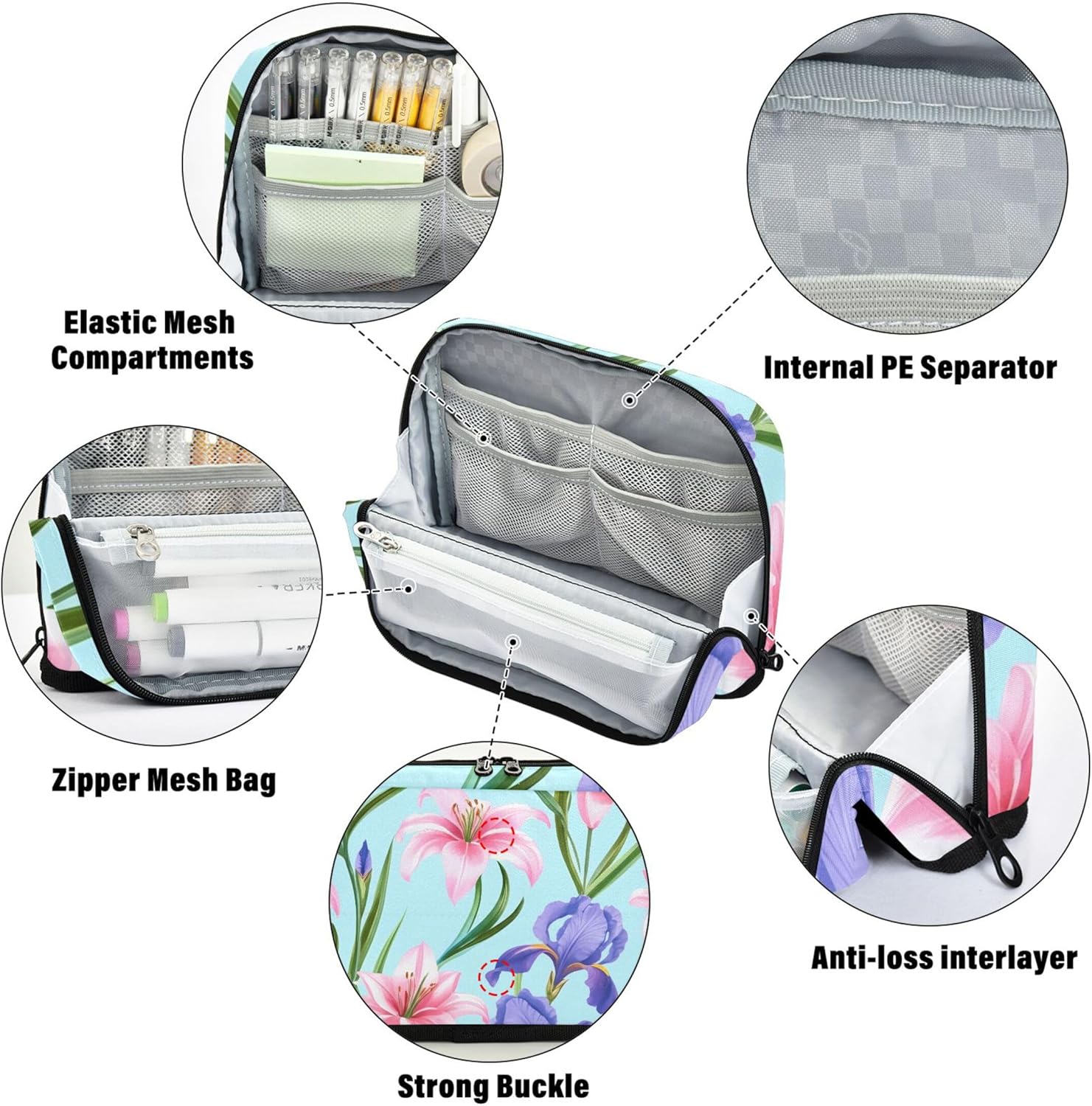 Innovativa base pieghevole: progettata per essere ripiegata e bloccata in posizione, le borse per matite diventano immediatamente un contenitore indipendente, adatte per organizzare oggetti durante il lavoro o lo studio Finitura in nylon di alta qualità: l'astuccio per cosmetici combina una consistenza morbida con un'elevata durata, resistendo all'usura preservando un aspetto lucido nel tempo Design versatile con scomparti: lo spazio per matite ti aiuta a rimanere organizzato con un interno spazioso con aree distinte per tutti i tuoi articoli di cancelleria, strumenti o cosmetici Il tuo compagno multifunzionale: che si tratti di uno zaino, valigia o cassetto della scrivania, l'astuccio rosa carino fornisce spazio intelligente per attrezzi, spazzole, caricabatterie e molto altro ancora Elegante e personalizzato: i sacchetti con cerniera per penne per organizzare si distinguono con stampe divertenti e caratteristiche personalizzabili, che lo rendono adatto per regali premurosi in ogni occasione