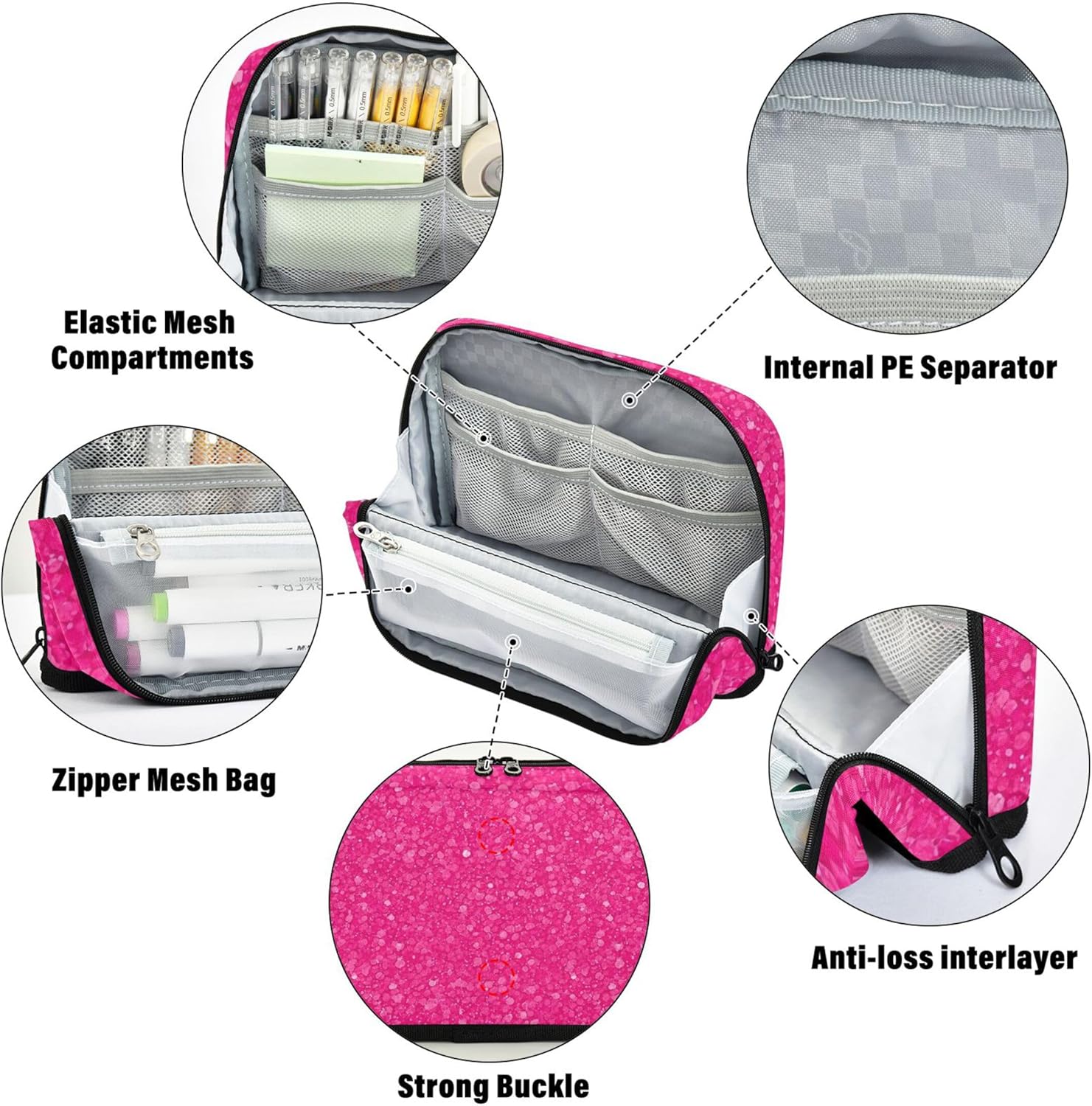Soluzione intelligente per organizzare la scrivania: non c'è bisogno di scavare in giro: l'astuccio da ufficio si alza saldamente quando piegato, mostra chiaramente il contenuto per un'organizzazione più rapida e più facile Qualità che puoi sentire: il nylon resistente offre all'astuccio per ragazze una struttura leggera ma resistente, mantenendo il contenuto al sicuro rendendo la pulizia semplice e senza problemi Layout intelligente per riporre: tieni le tue forniture in ordine: le borse da viaggio per articoli da toeletta includono uno scomparto principale, una tasca in rete con cerniera e uno slot aperto per separare e accedere agli oggetti con facilità Adatto per varie impostazioni: utilizza un astuccio con cerniera per riporre oggetti artistici, oggetti personali o strumenti da ufficio, ideale per studenti, pendolari, artisti o chiunque sia in viaggio Facile da personalizzare: l'astuccio per ragazze consente di aggiungere dettagli significativi come nomi o loghi, creando un sacchetto unico che funge anche da regalo elegante o dichiarazione personale